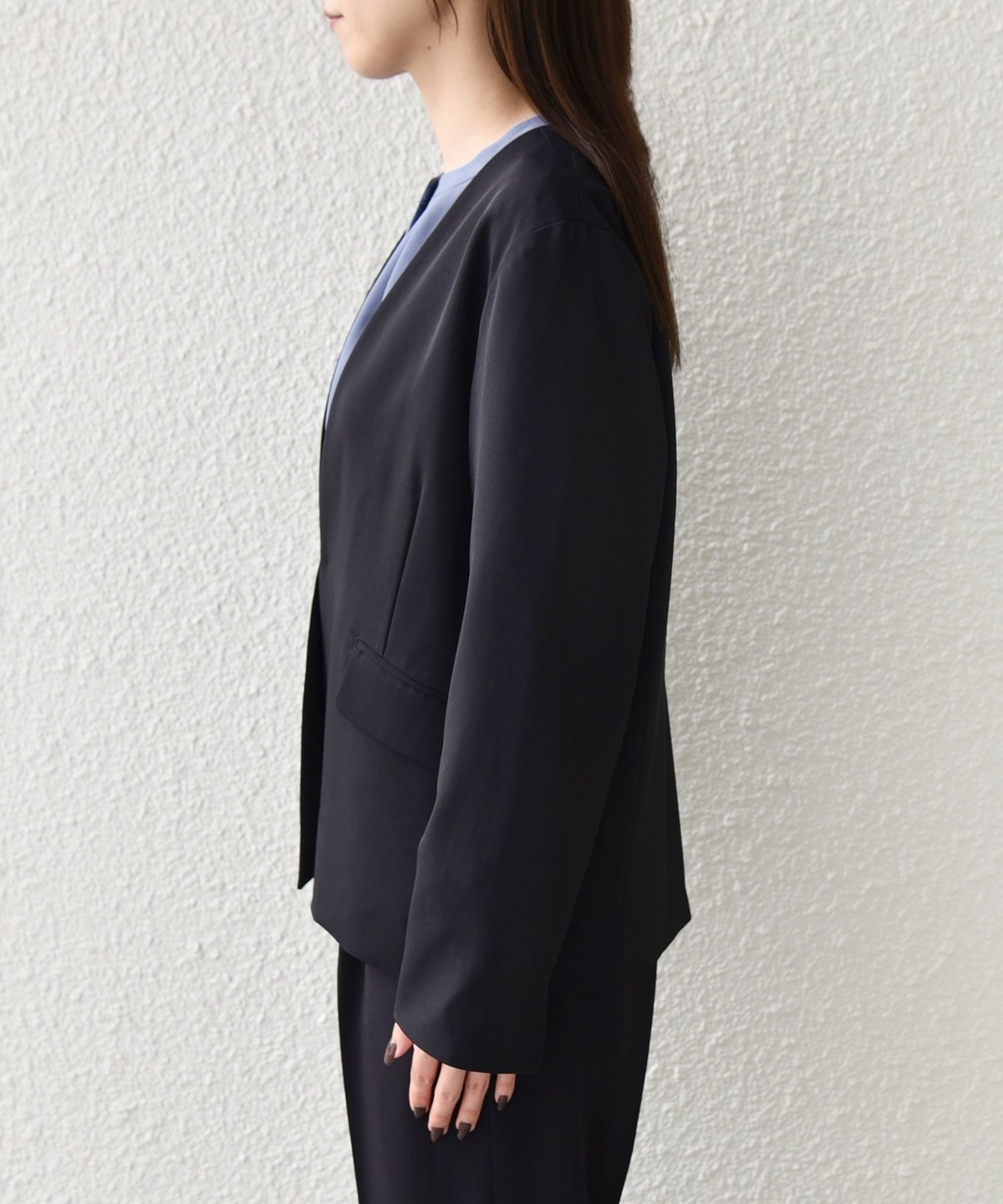 シンプルなデザインで、ビジネスからフォーマルシーンまで幅広く活躍するジャケット。