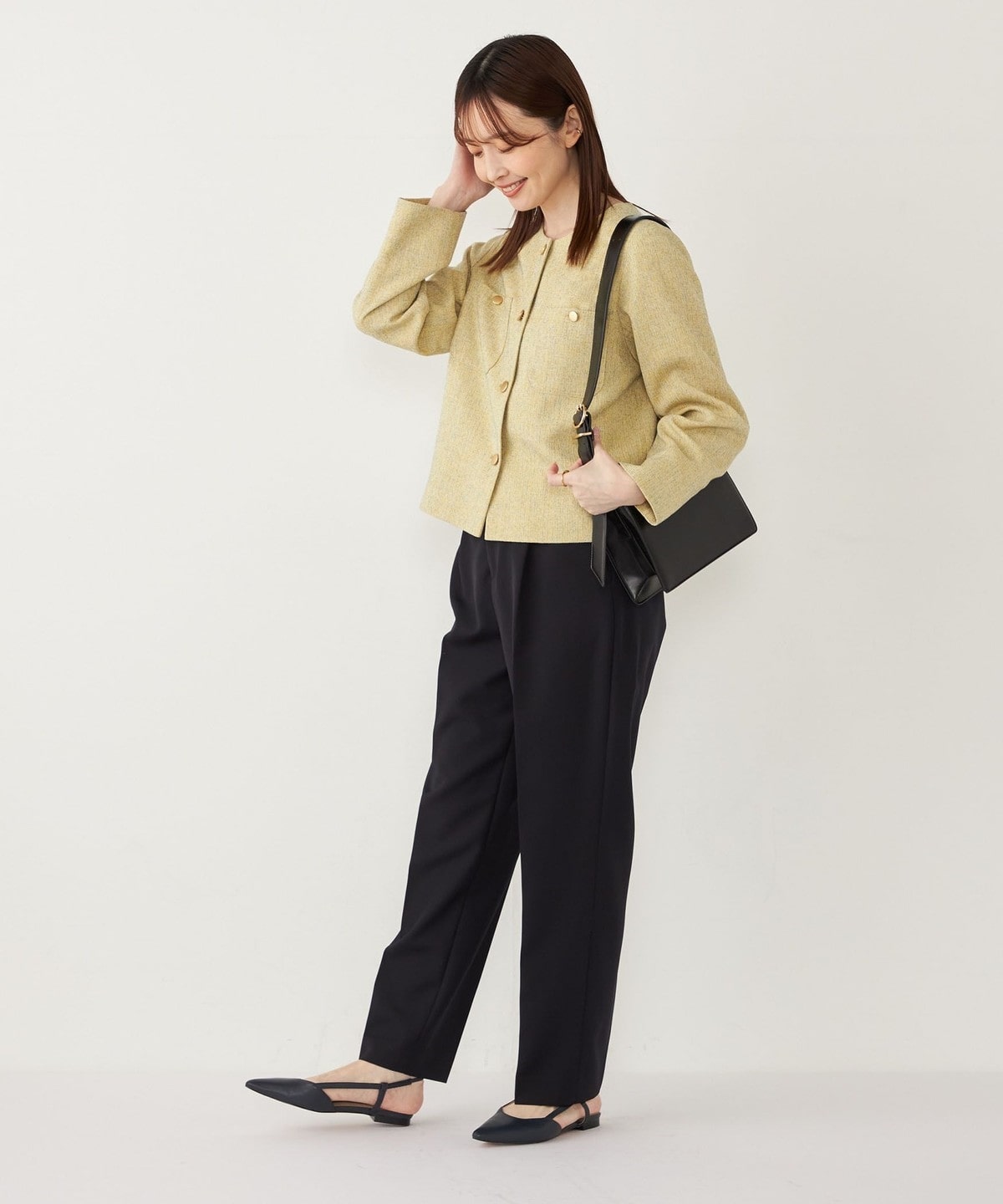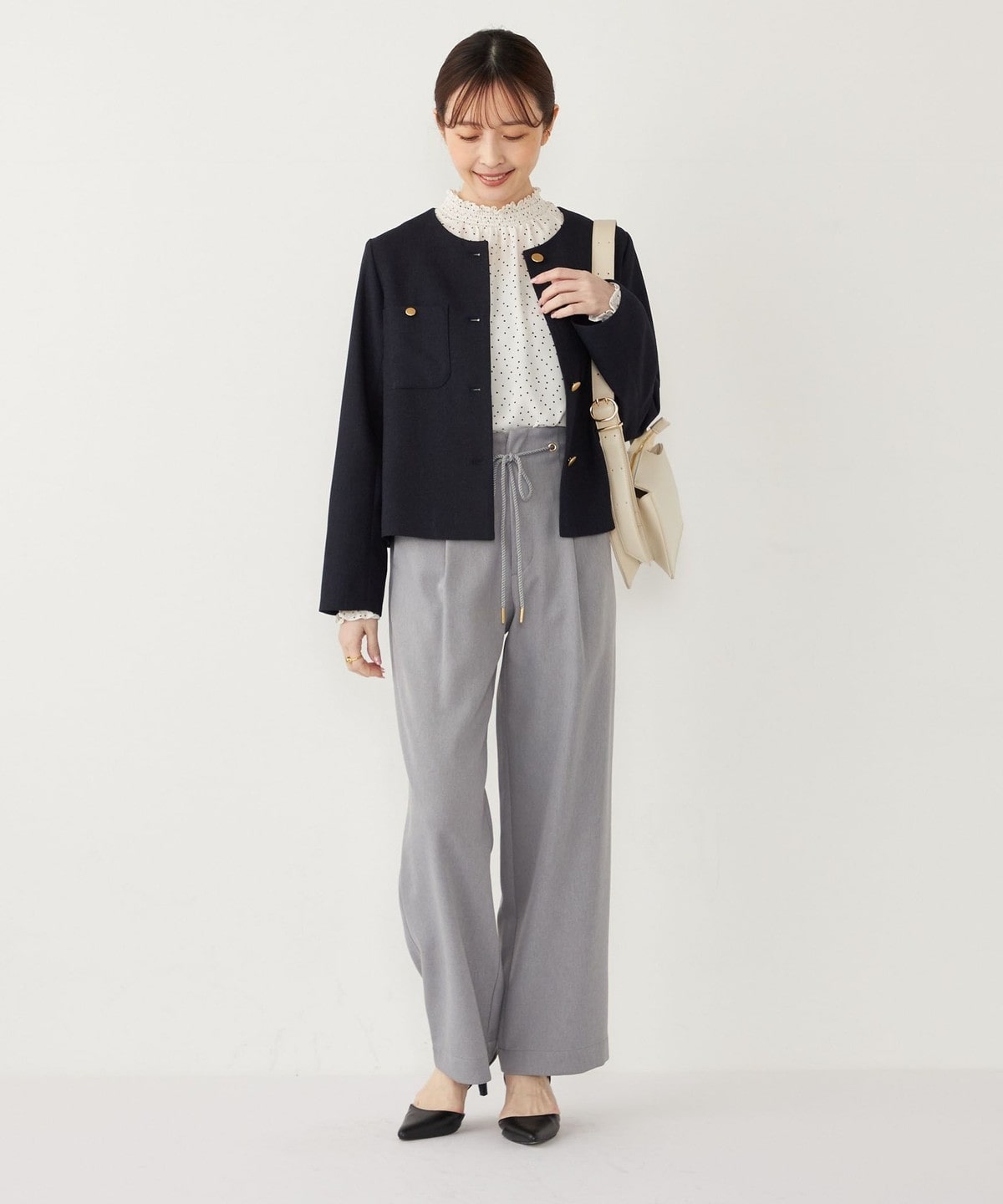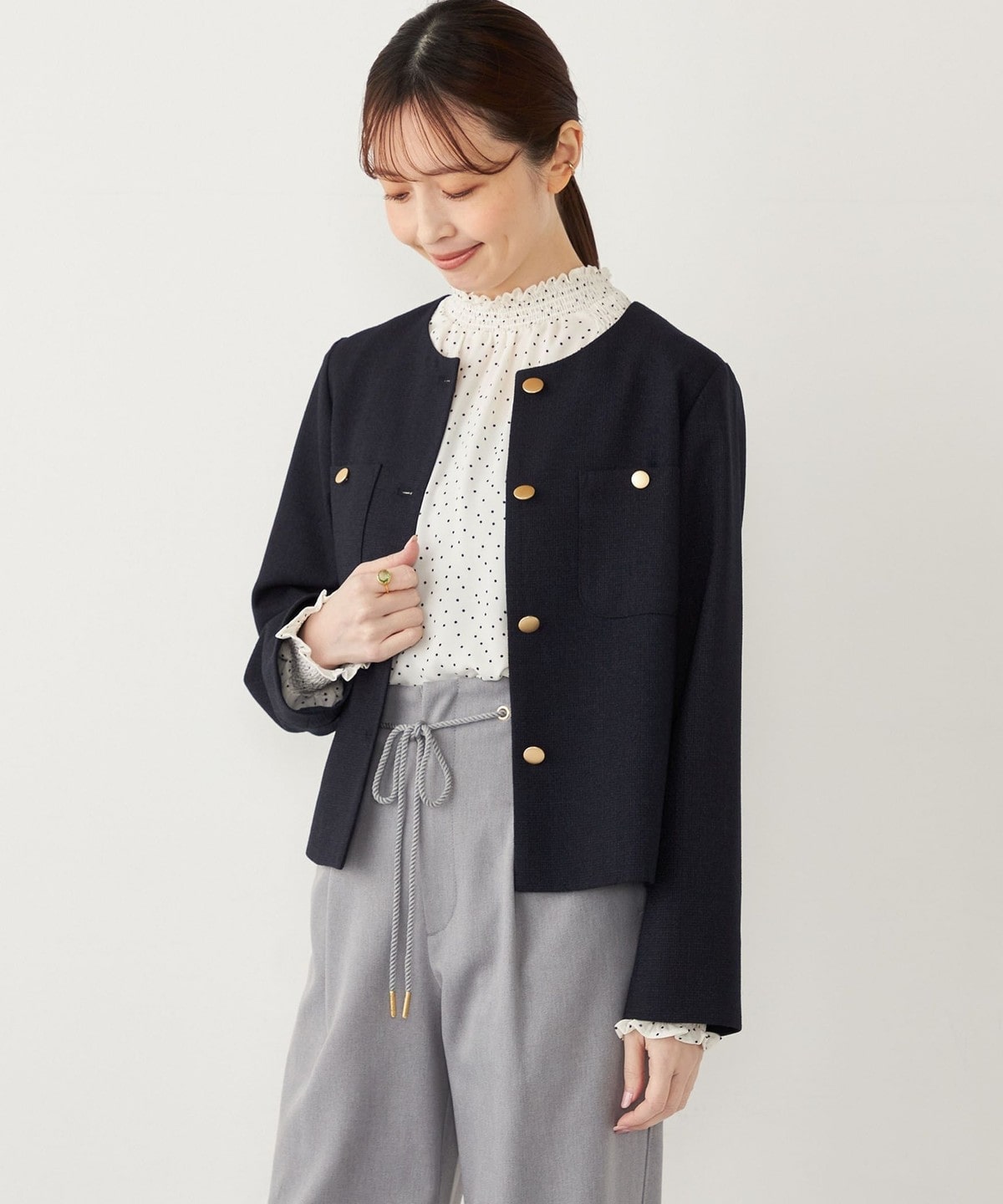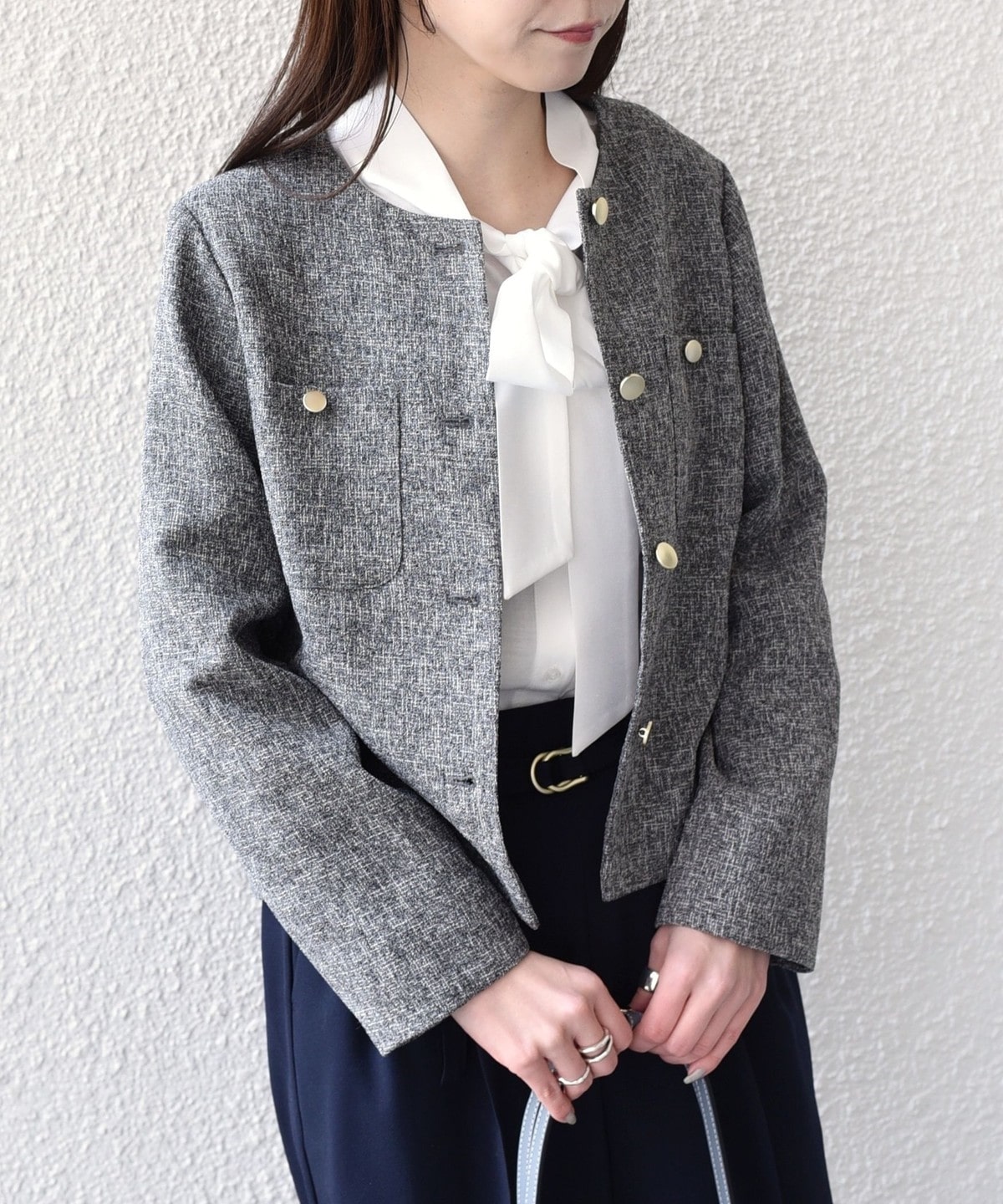ノーカラーですっきりとした印象を演出し、さらっと羽織っていただけます。