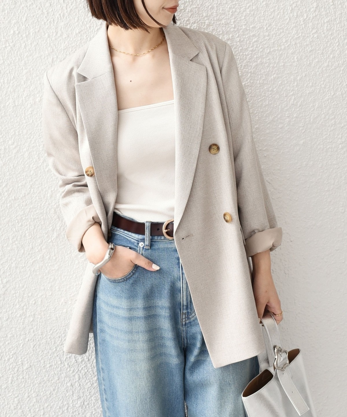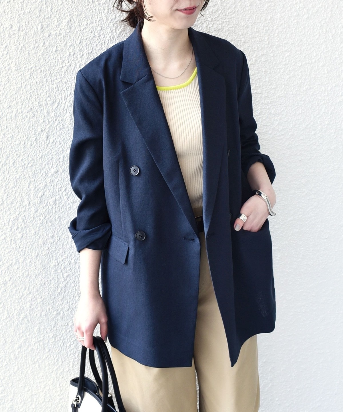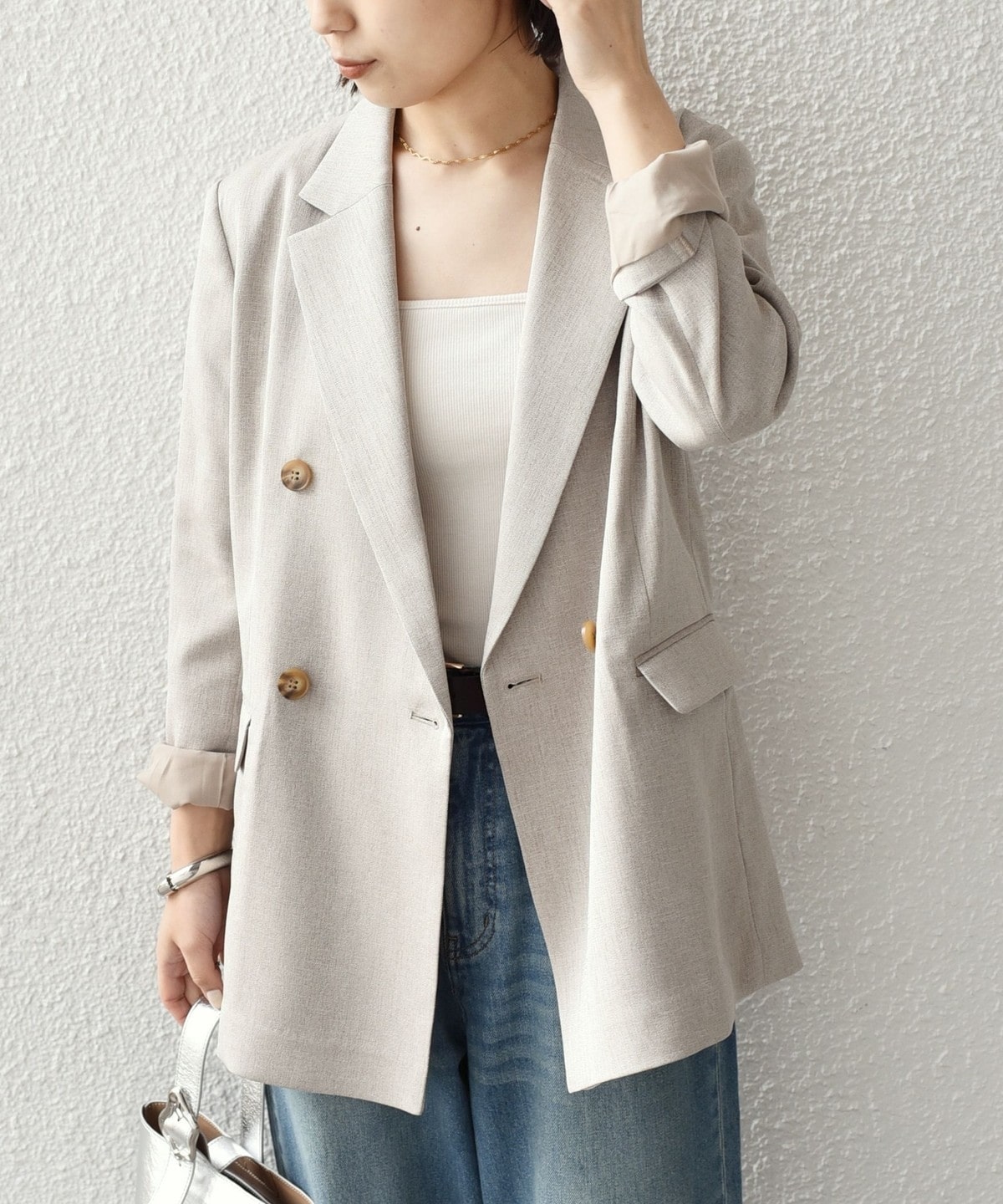 軽やかにさらりと羽織れるダブルボタンのテーラードジャケット。
