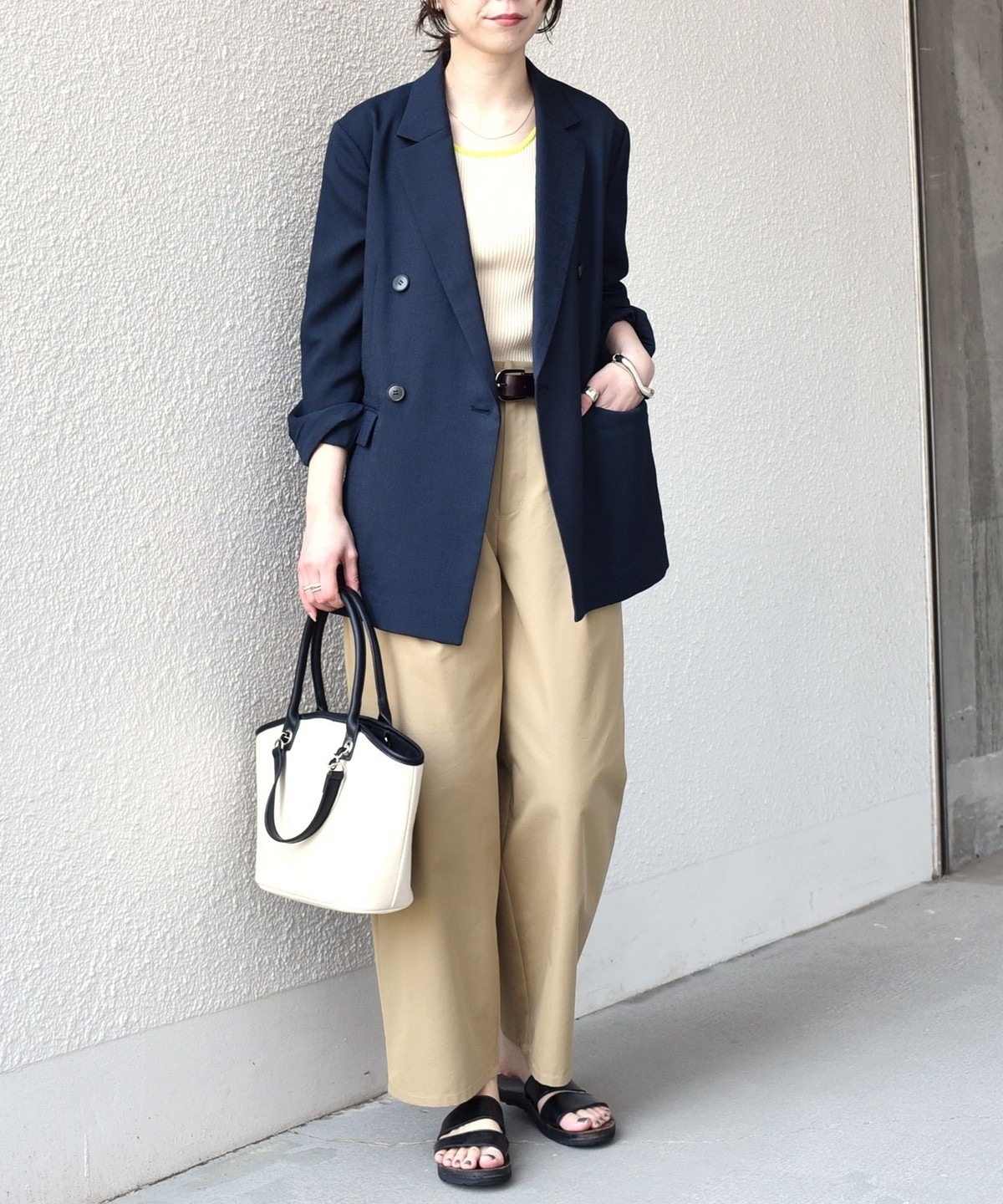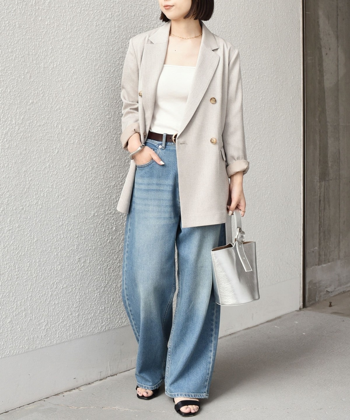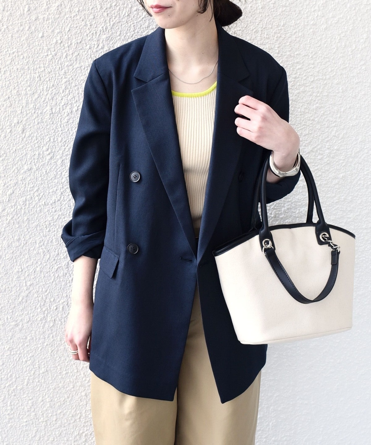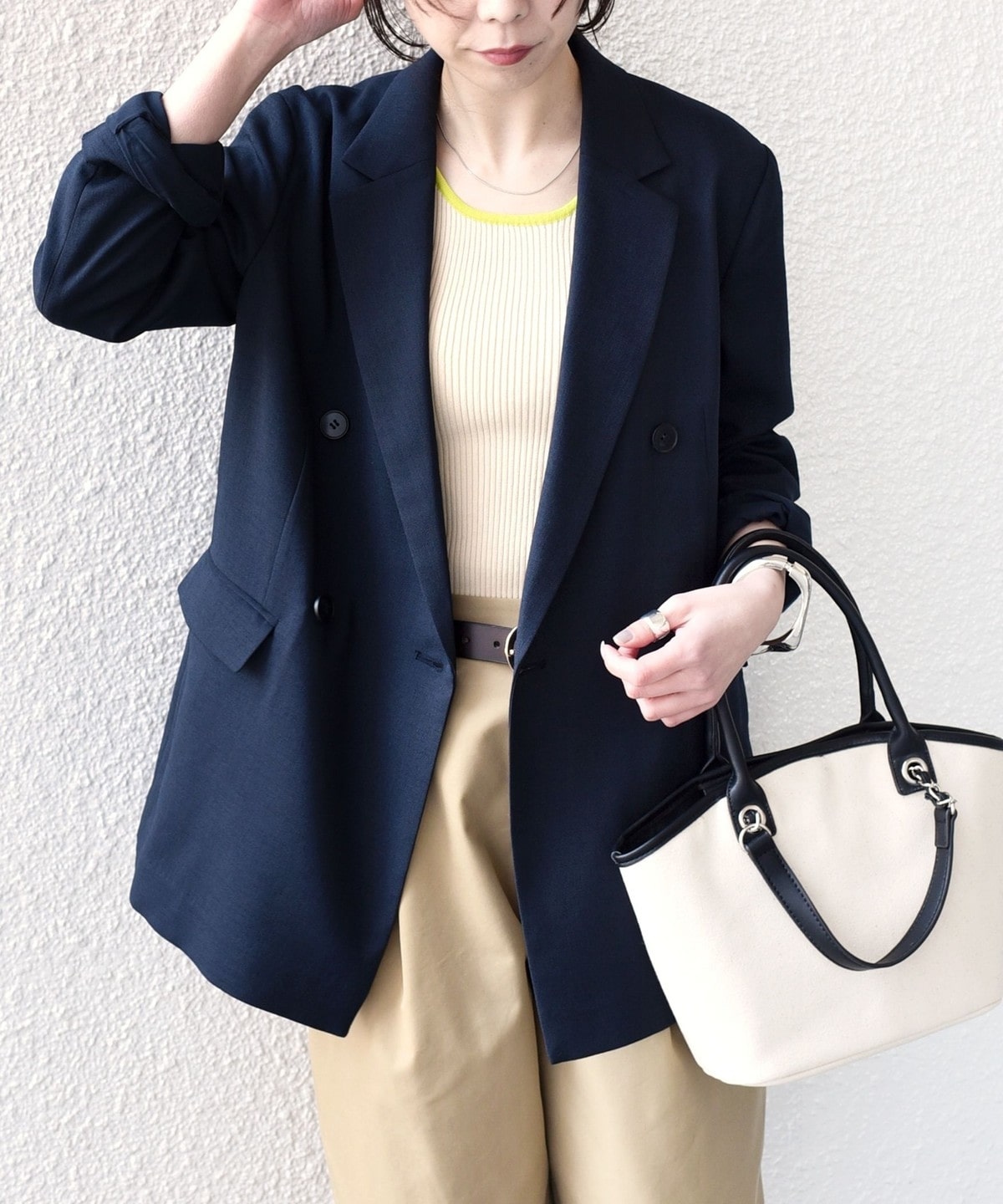 軽やかにさらりと羽織れるダブルボタンのテーラードジャケット。