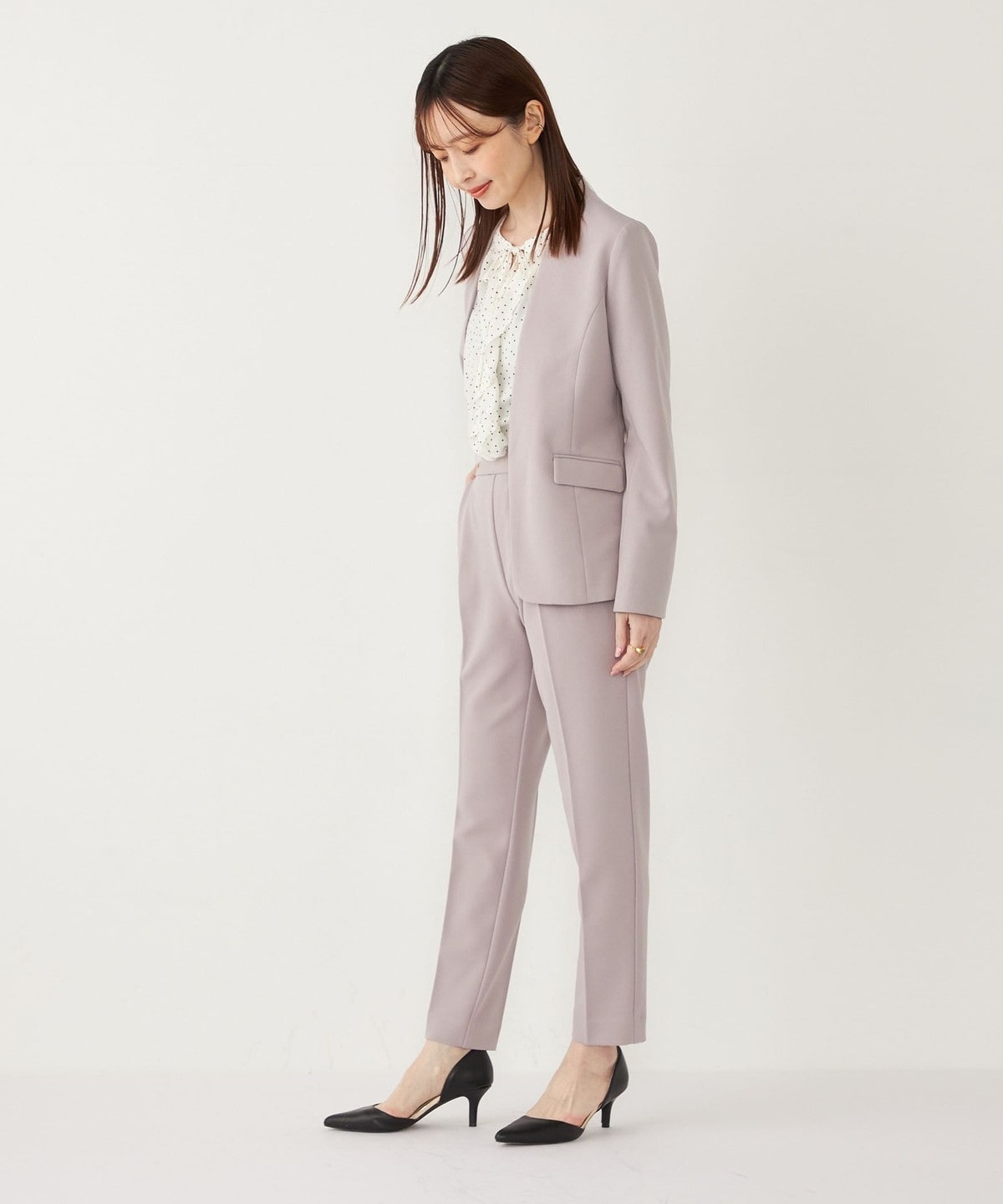 同素材のパンツを2型とペプラムジャケットも展開してますので、セットアップ合わせ等も可能です。