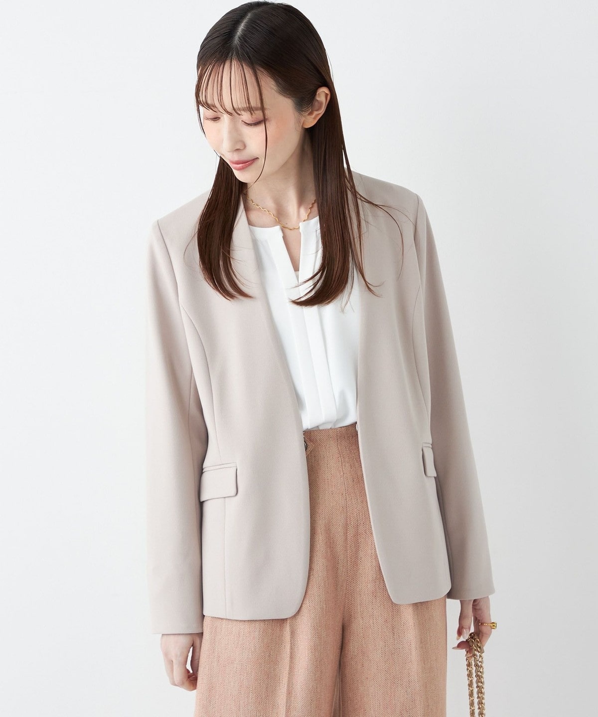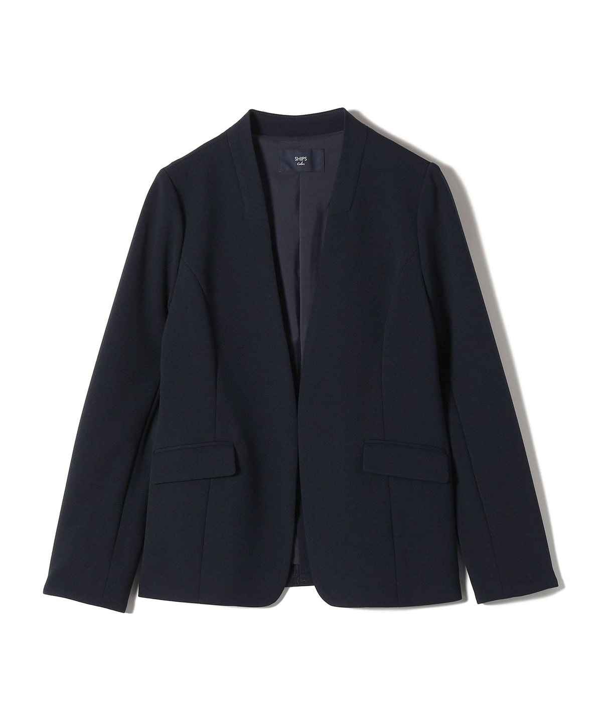 《一部追加予約》SHIPS Colors:ストレッチ ジョーゼット Vカラー ジャケット3 ◆