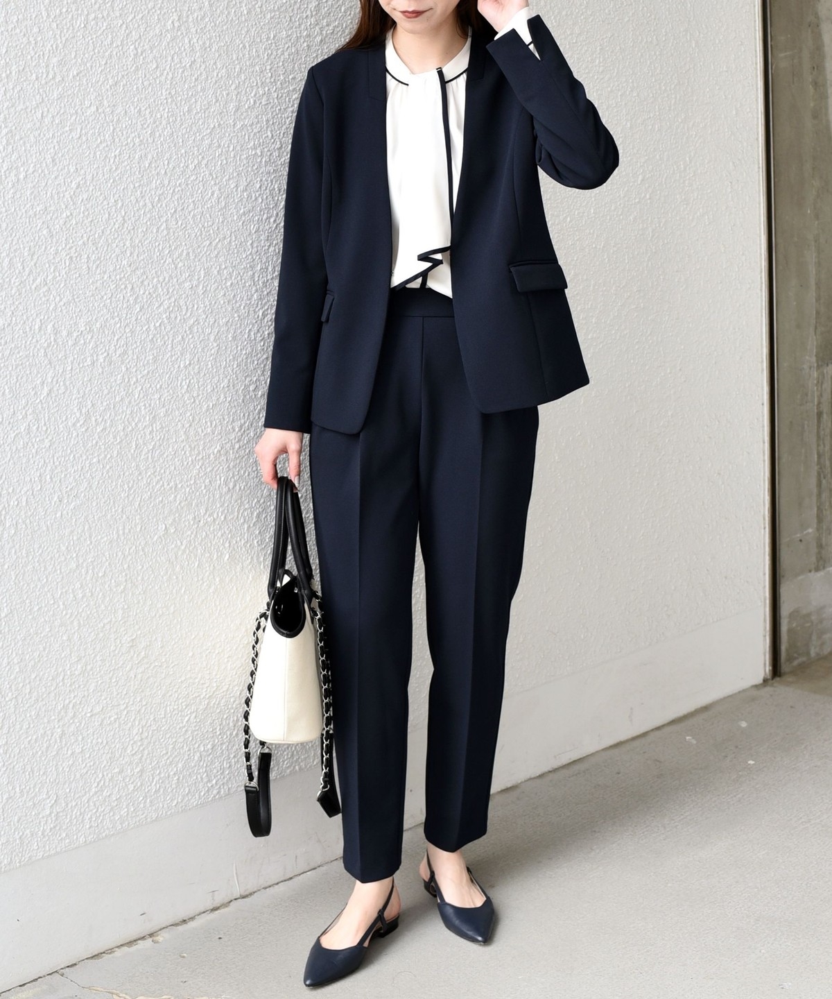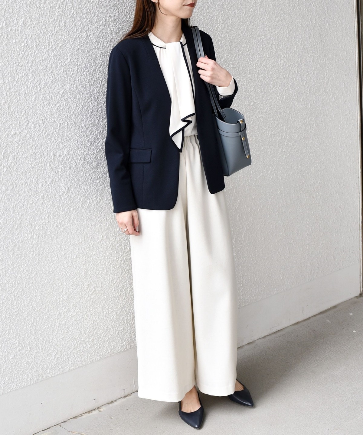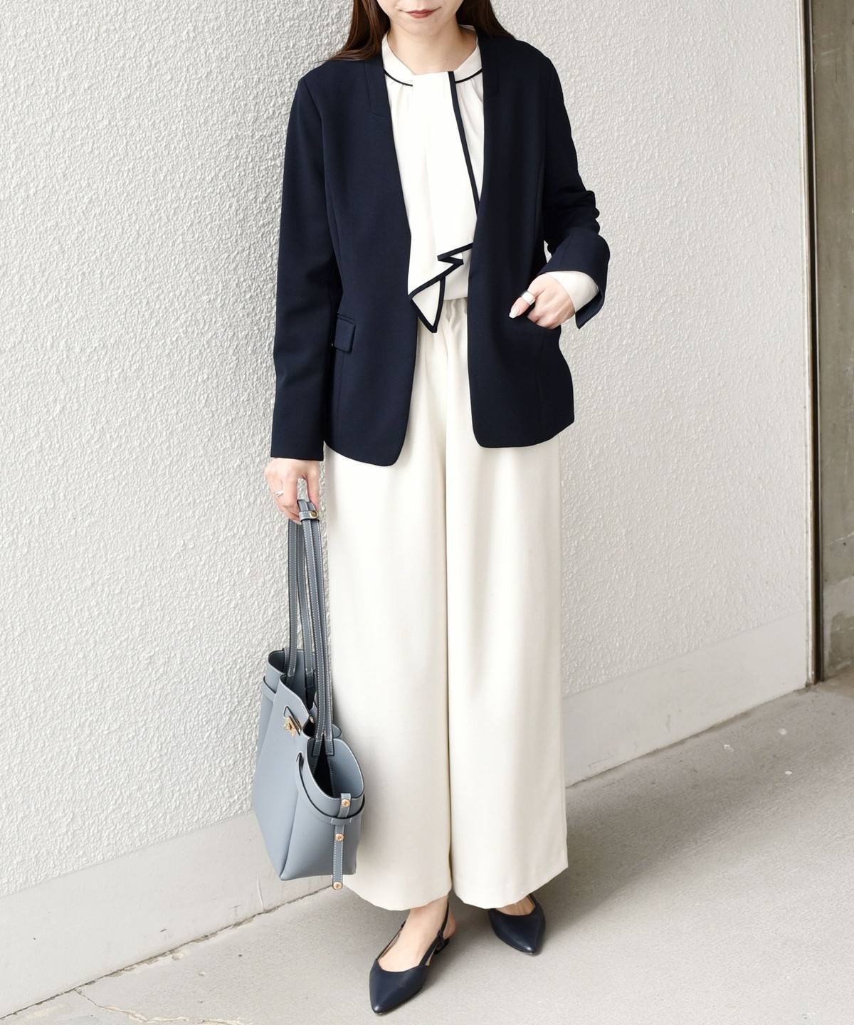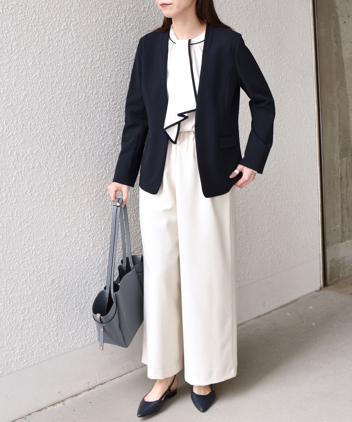 同素材のパンツを2型とペプラムジャケットも展開してますので、セットアップ合わせ等も可能です。