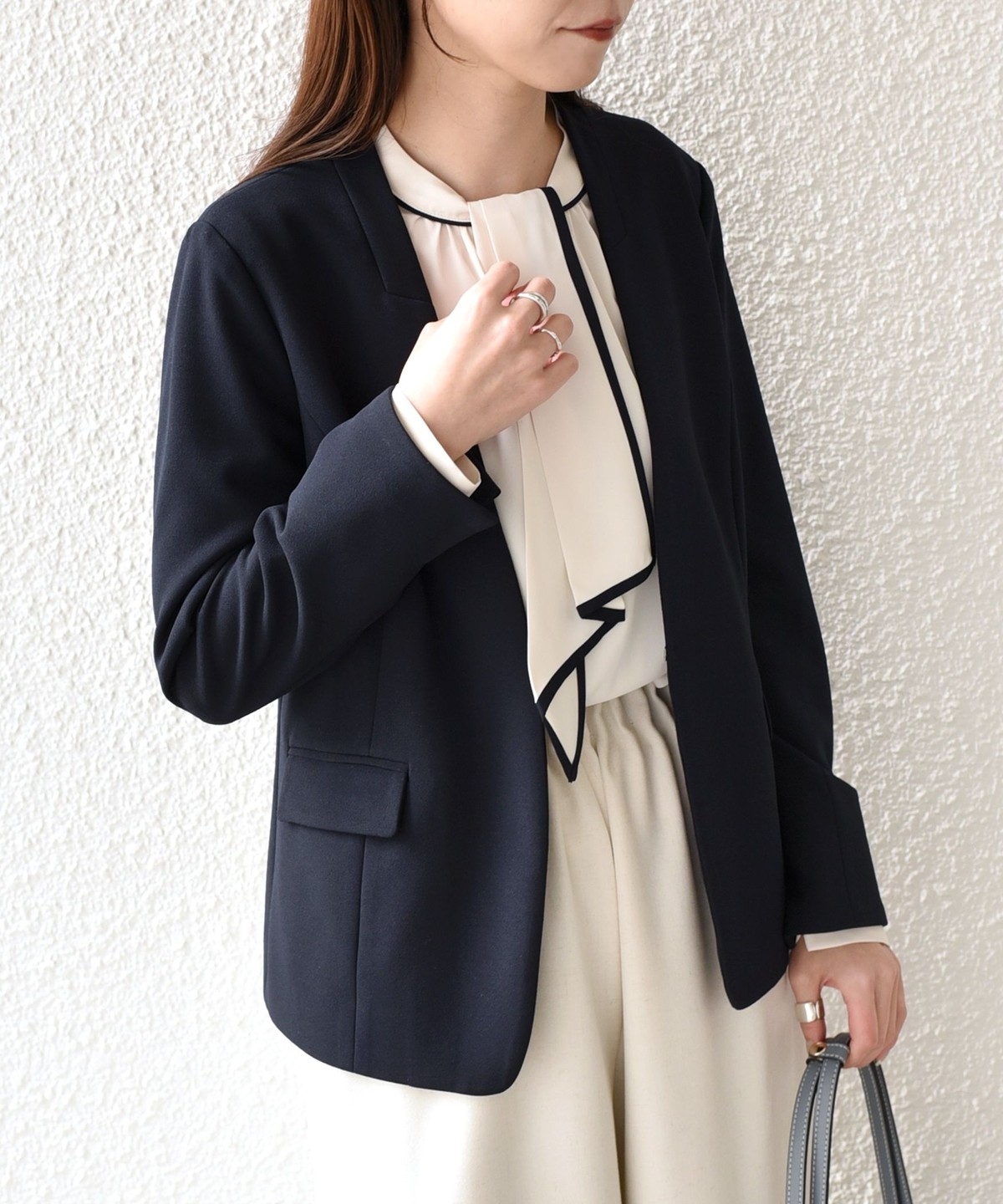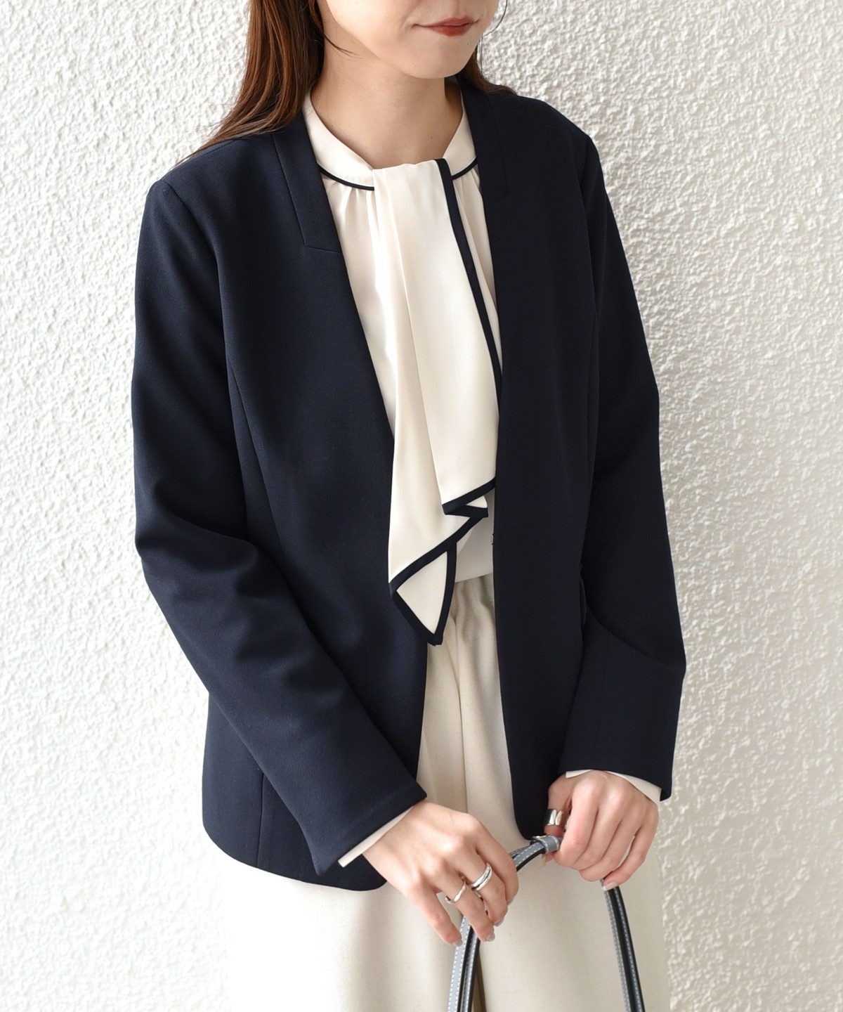SHIPS Colors:ストレッチ ジョーゼット Vカラージャケット3 (セットアップ対応可能)◇