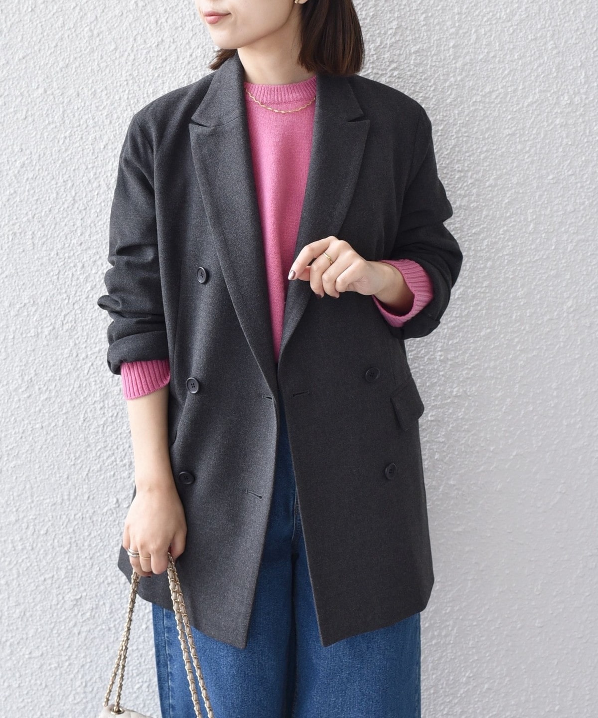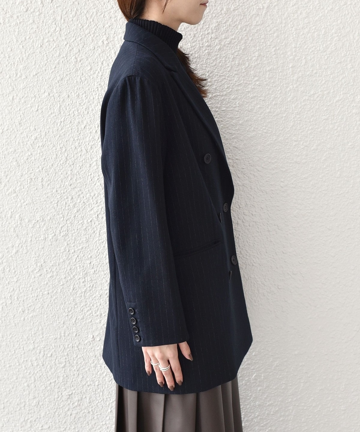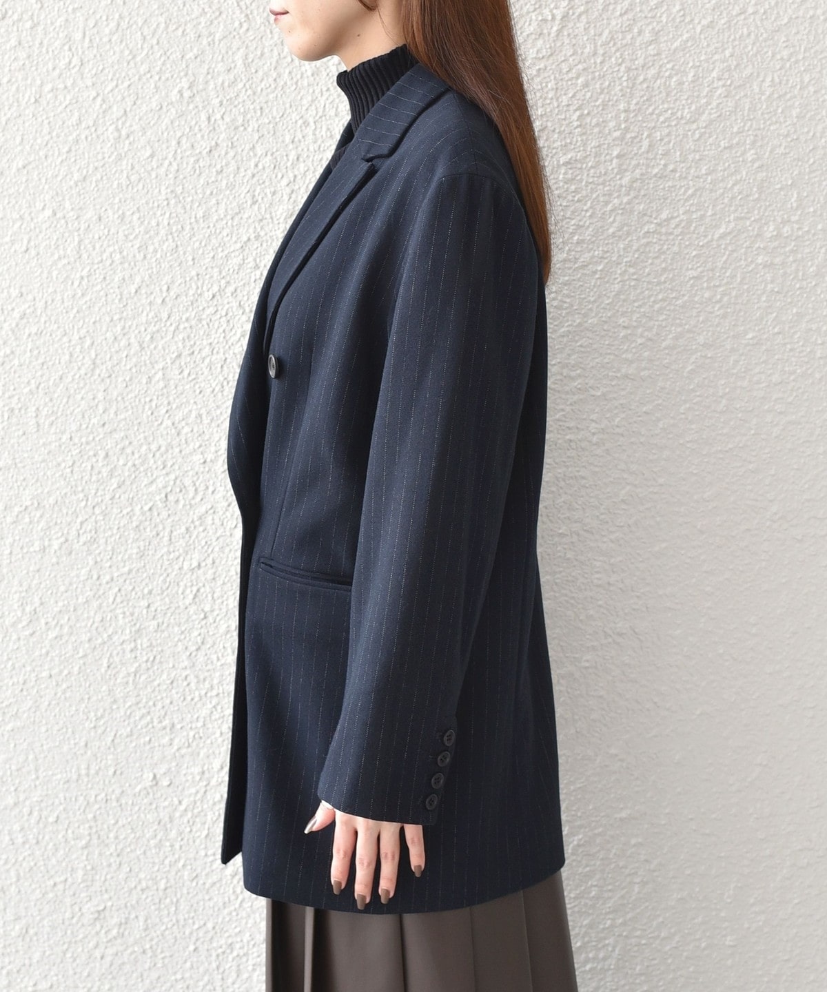 ジャケットらしい端正なデザインながら、ゆったりとしたシルエットで中に着込みやすいサイズ感です。