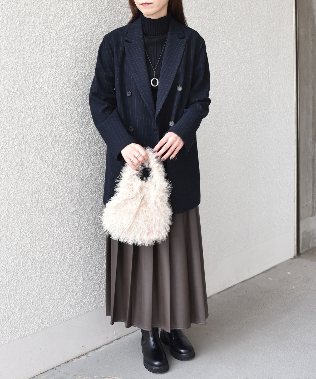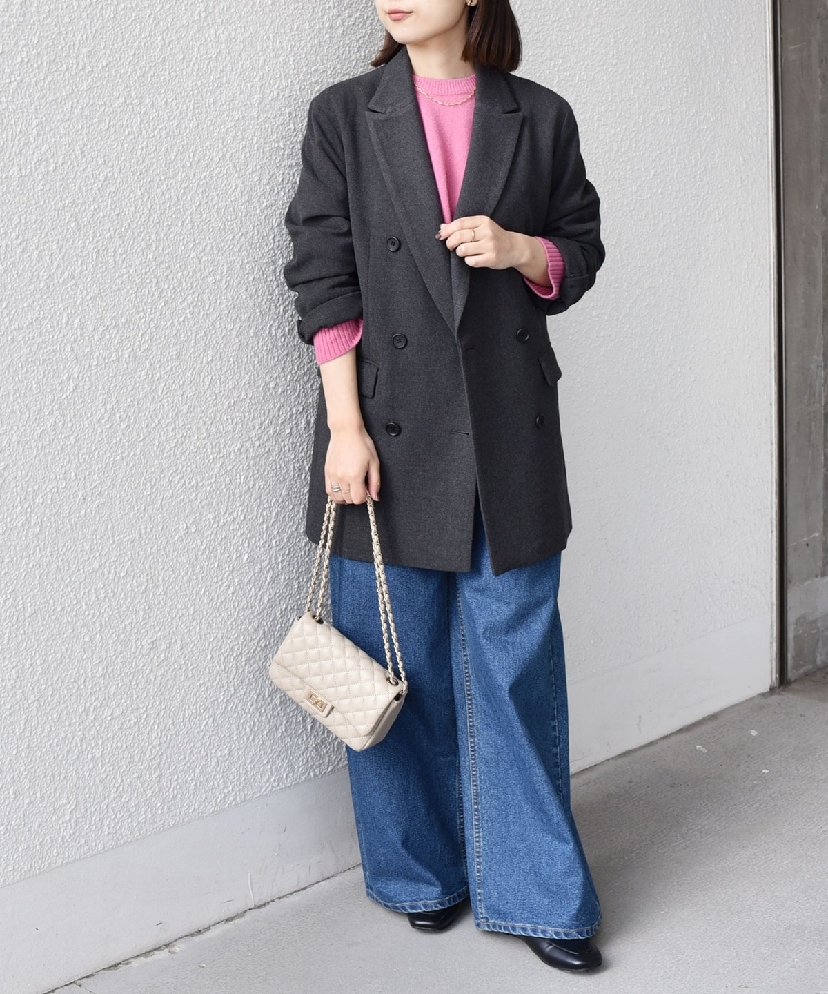 デニムからスラックス、ワンピースなど幅広いアイテムと好相性です。