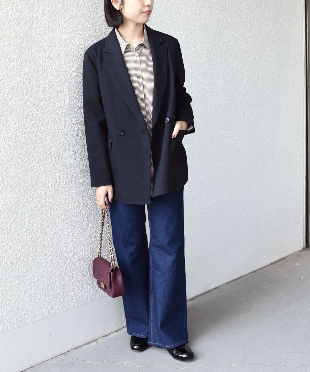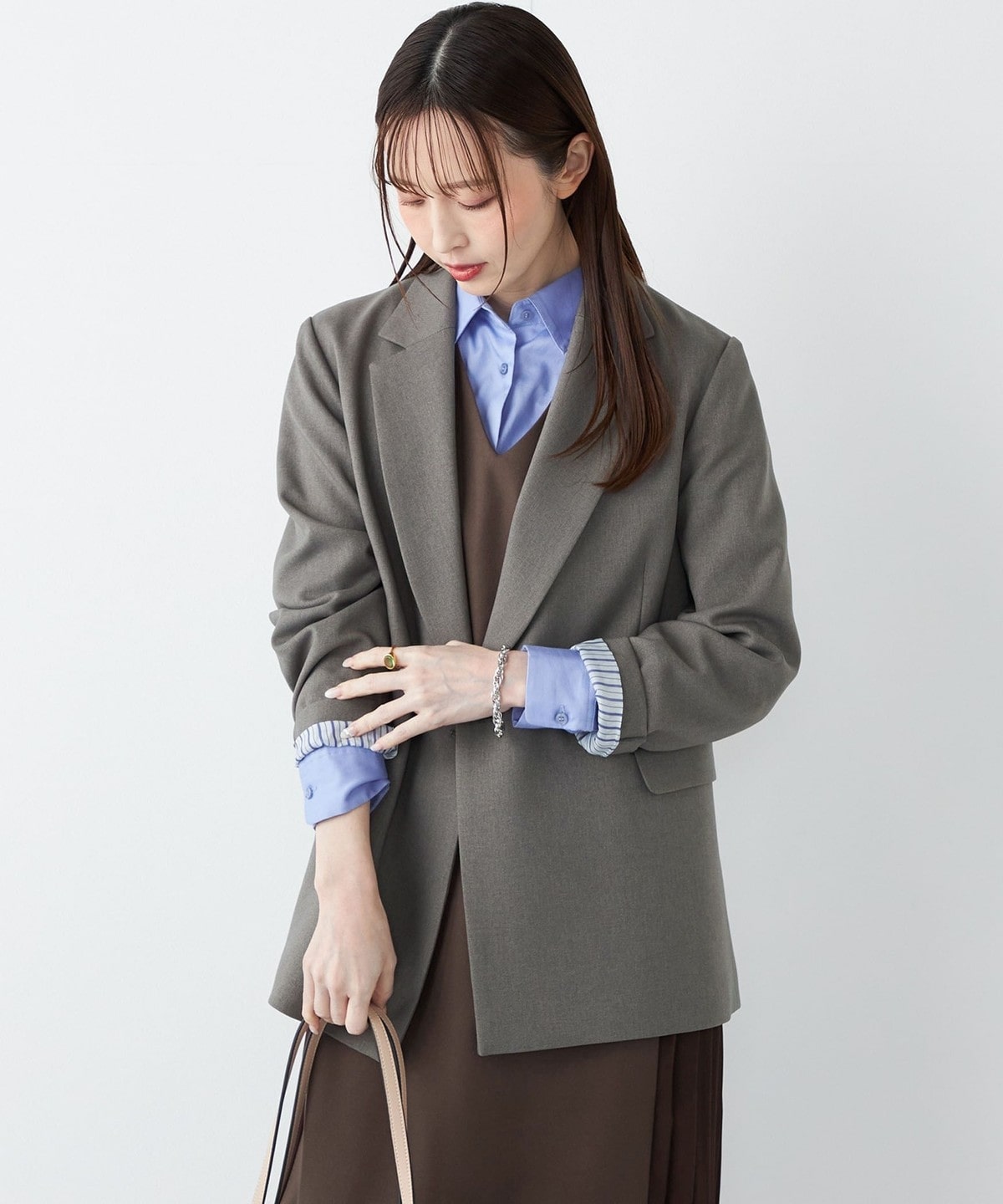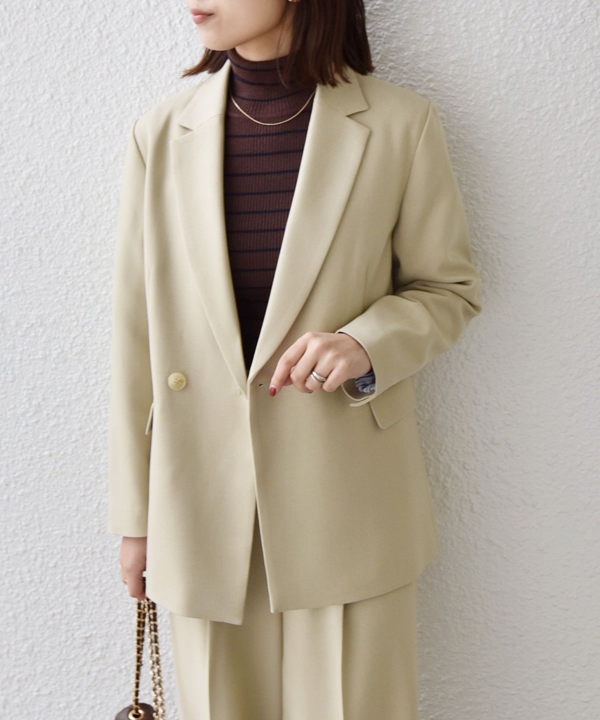 きれいめなボトムと合わせて、通勤やフォーマルなシーンにも対応可能な万能なアイテムです。