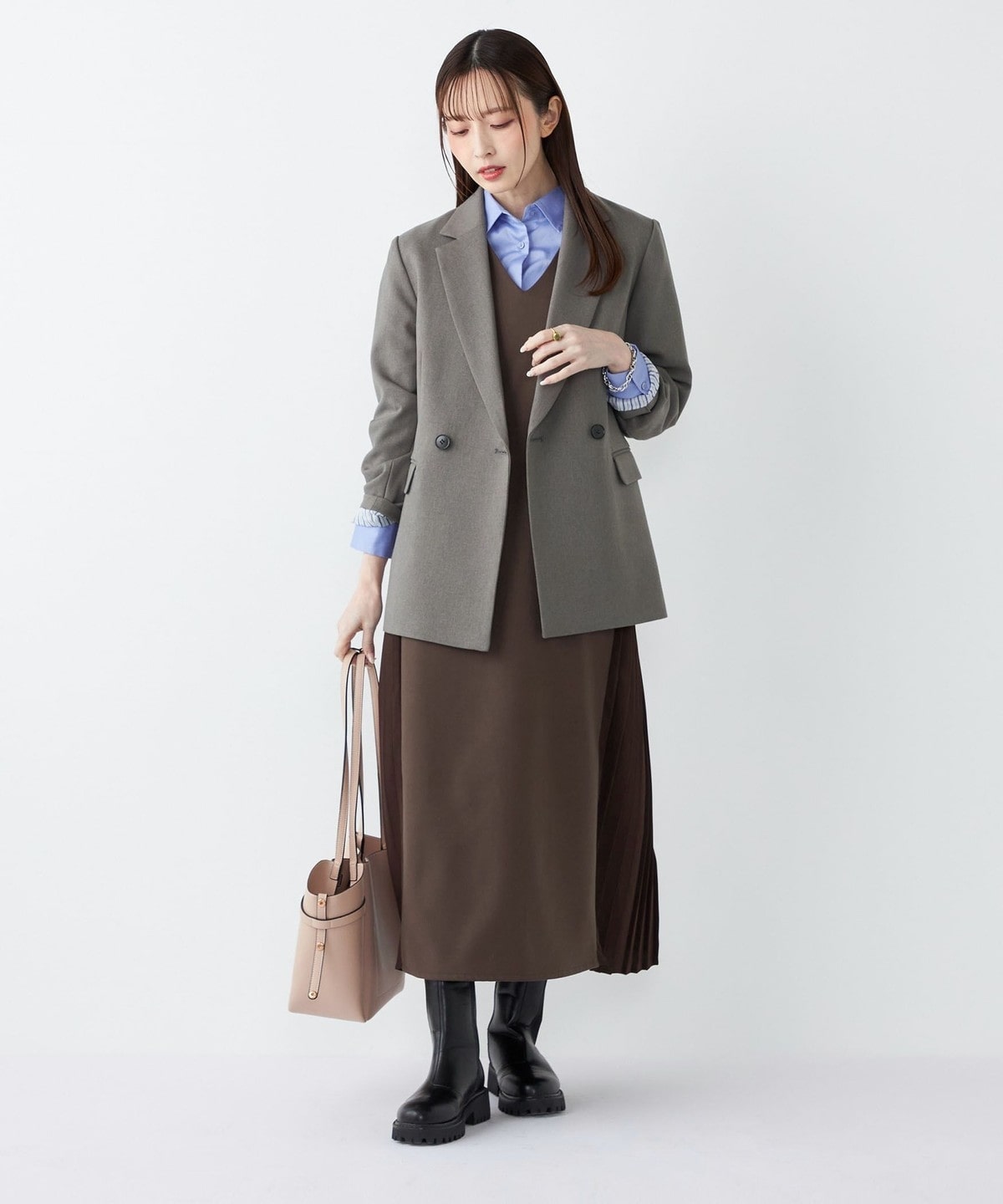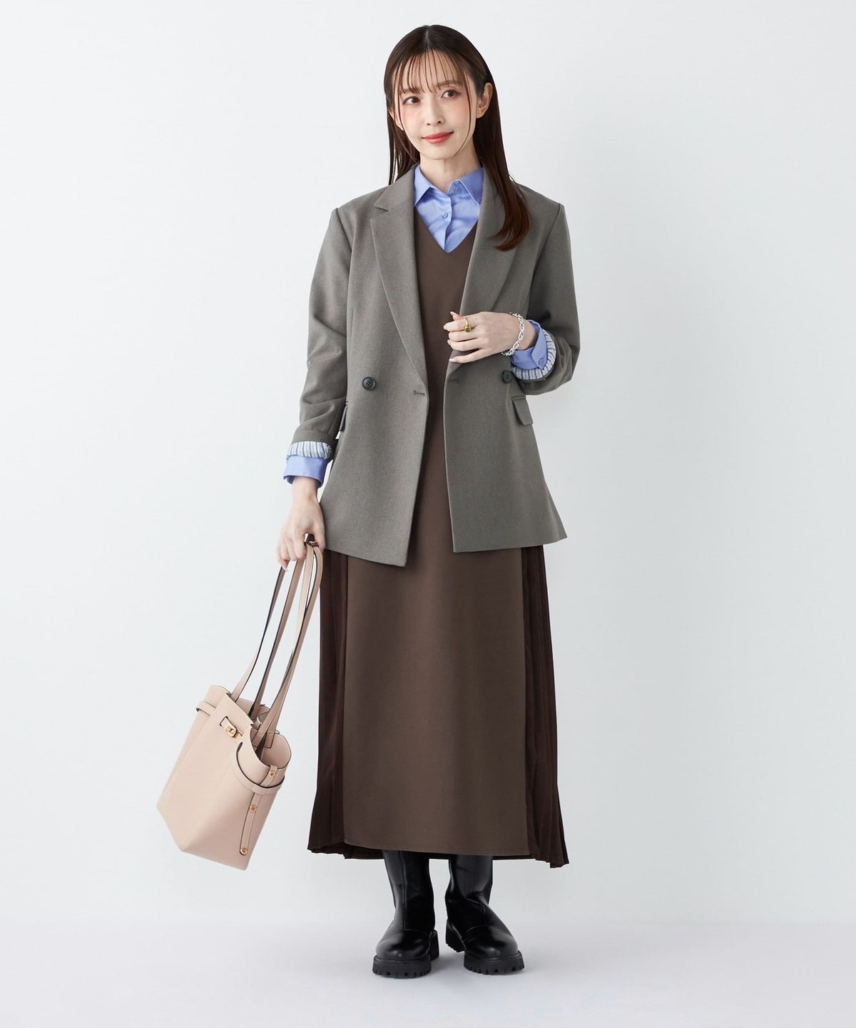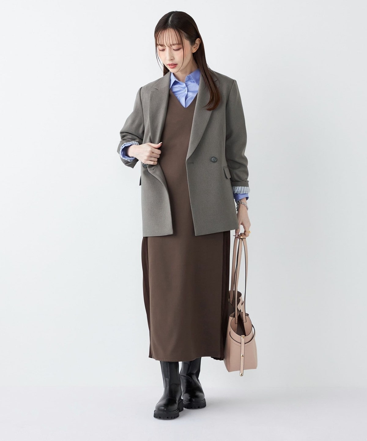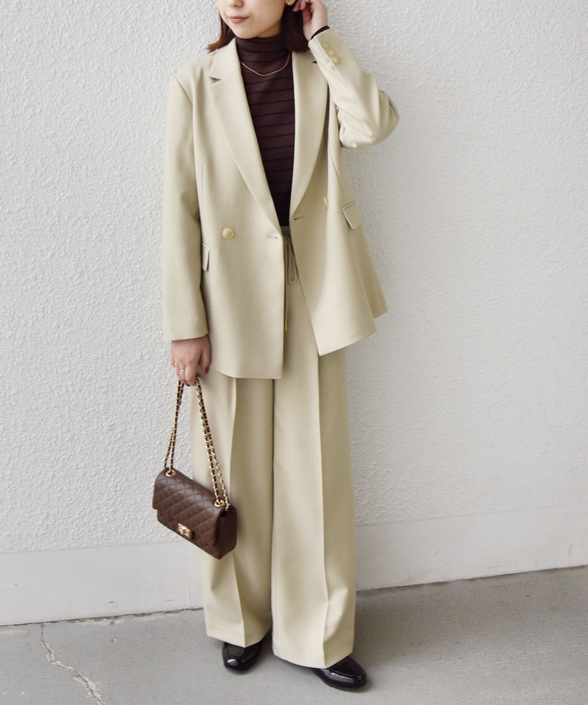 きれいめなボトムと合わせて、通勤やフォーマルなシーンにも対応可能な万能なアイテムです。