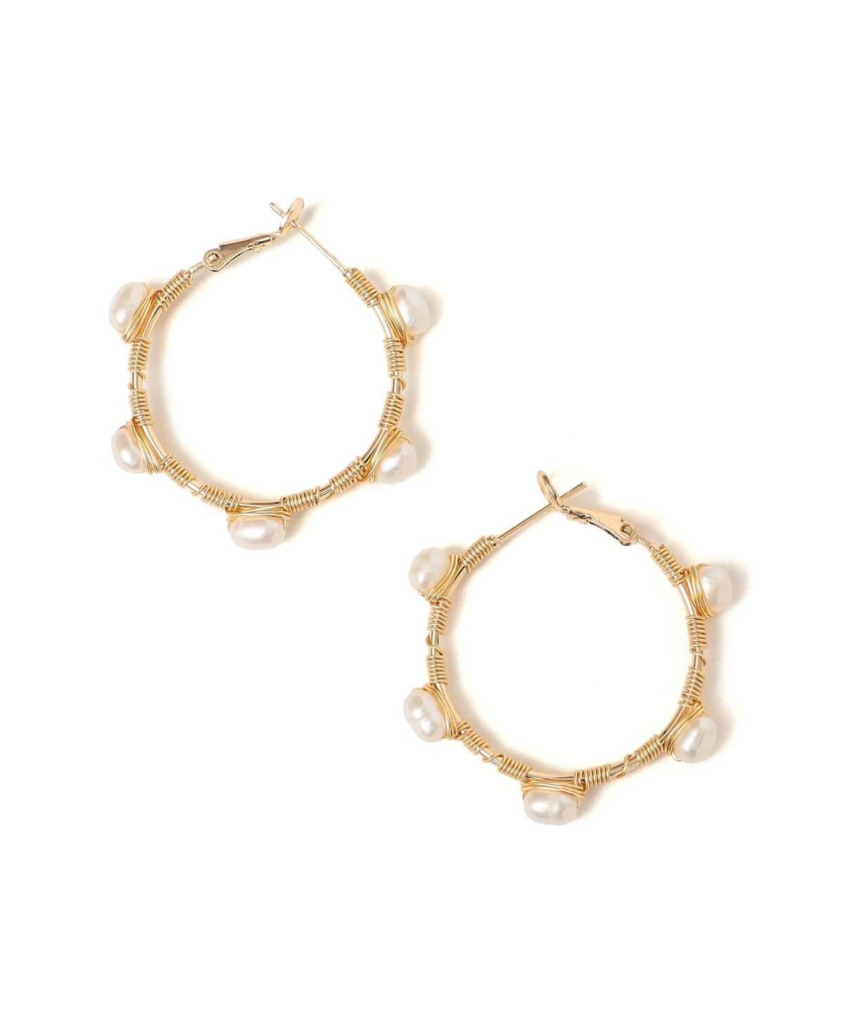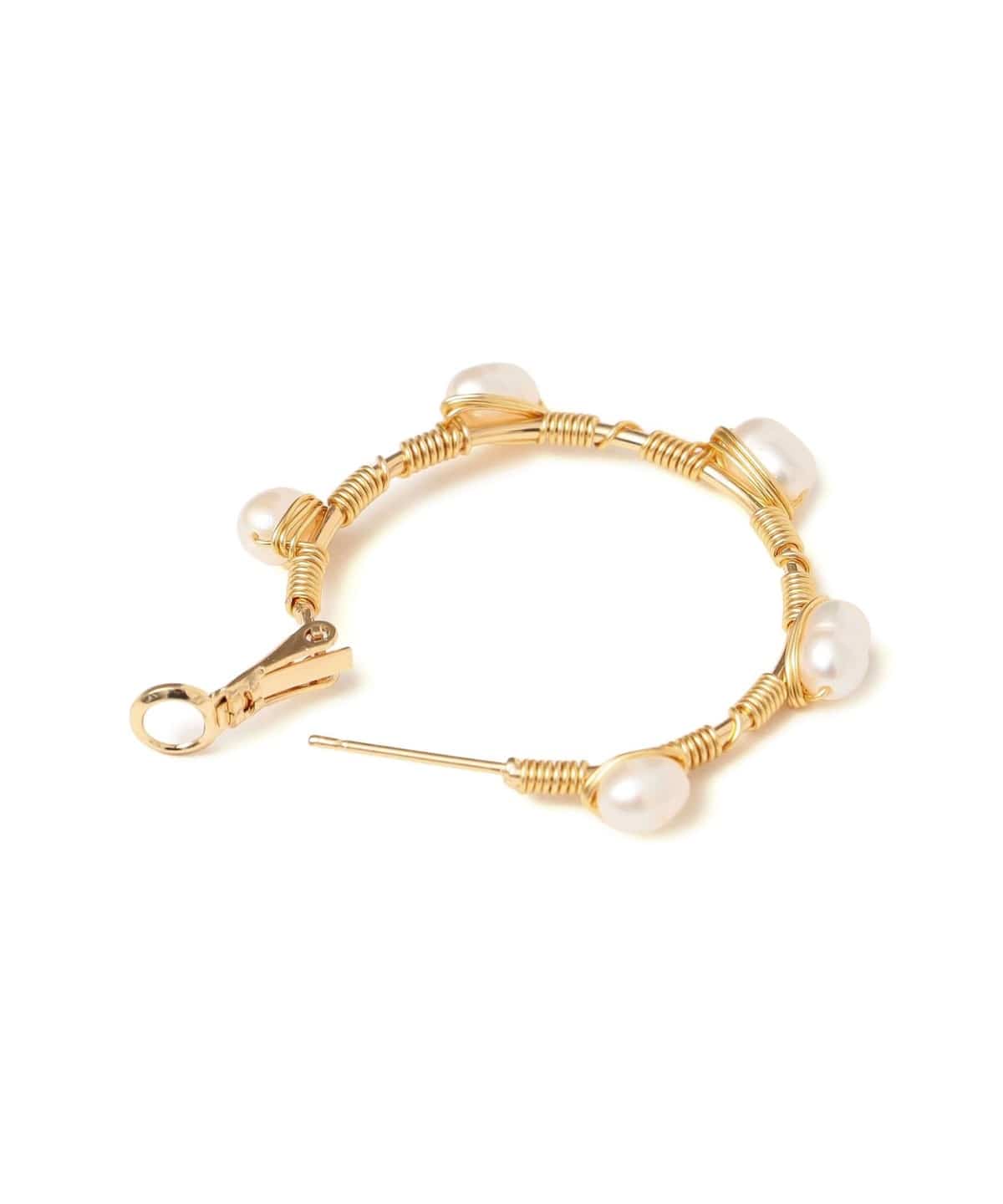 ゴールドカラーのフープと淡水パールの組み合わせが目を惹くピアス。