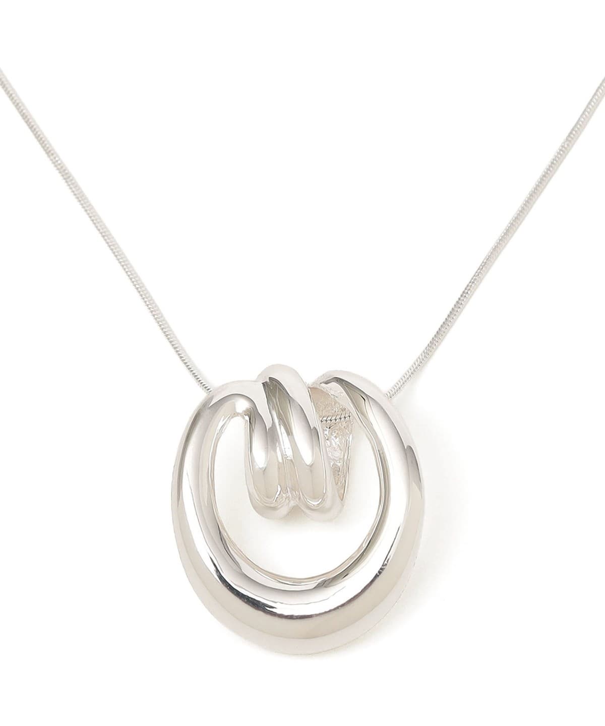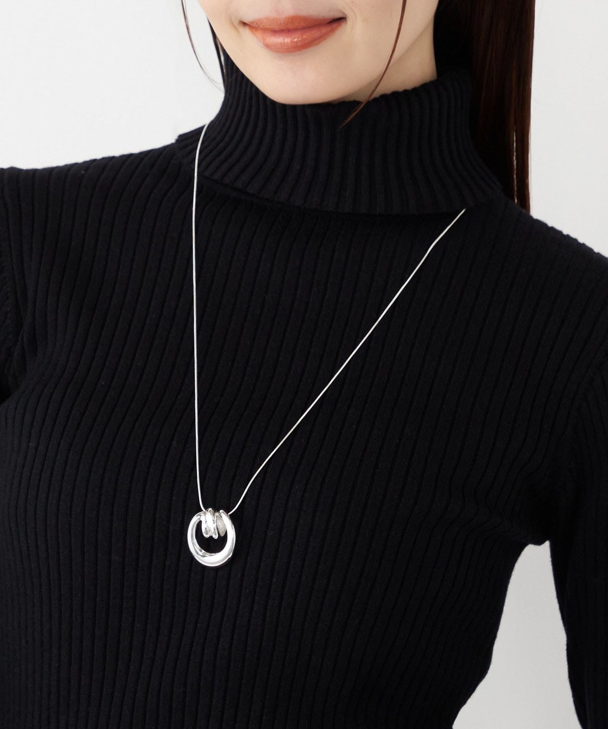 シンプルながらメタルパーツがアクセントになるネックレス。