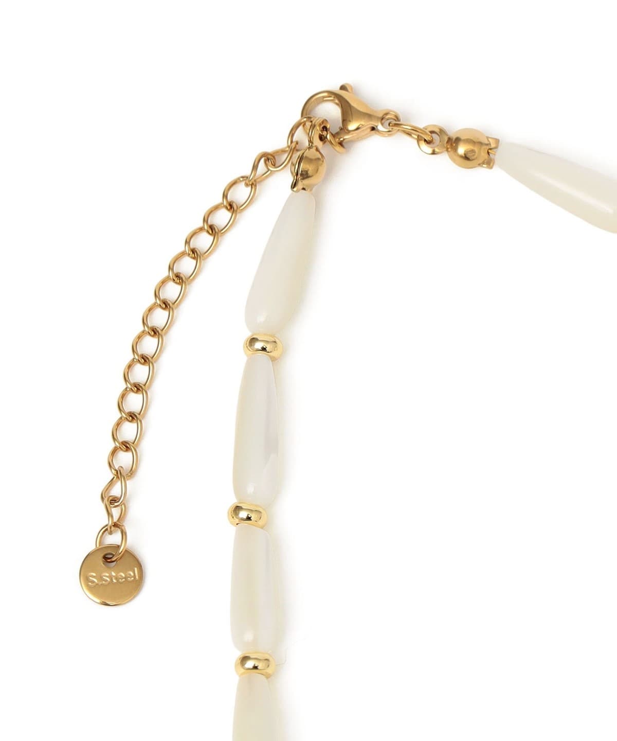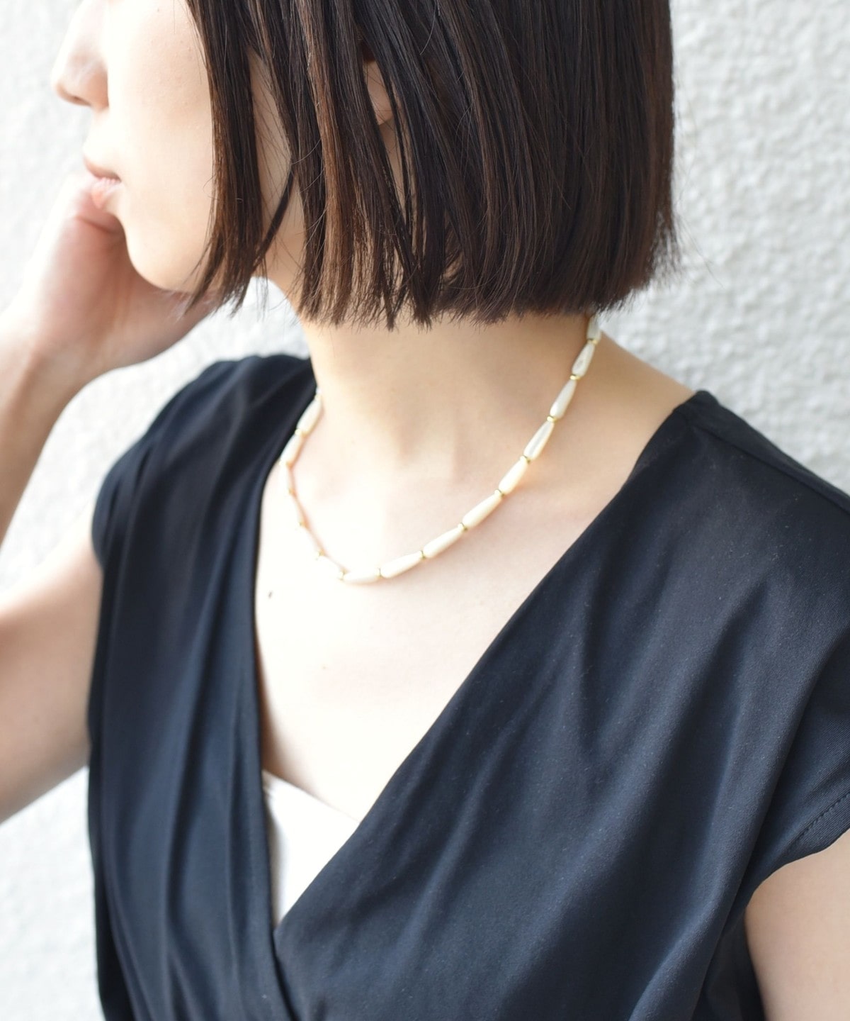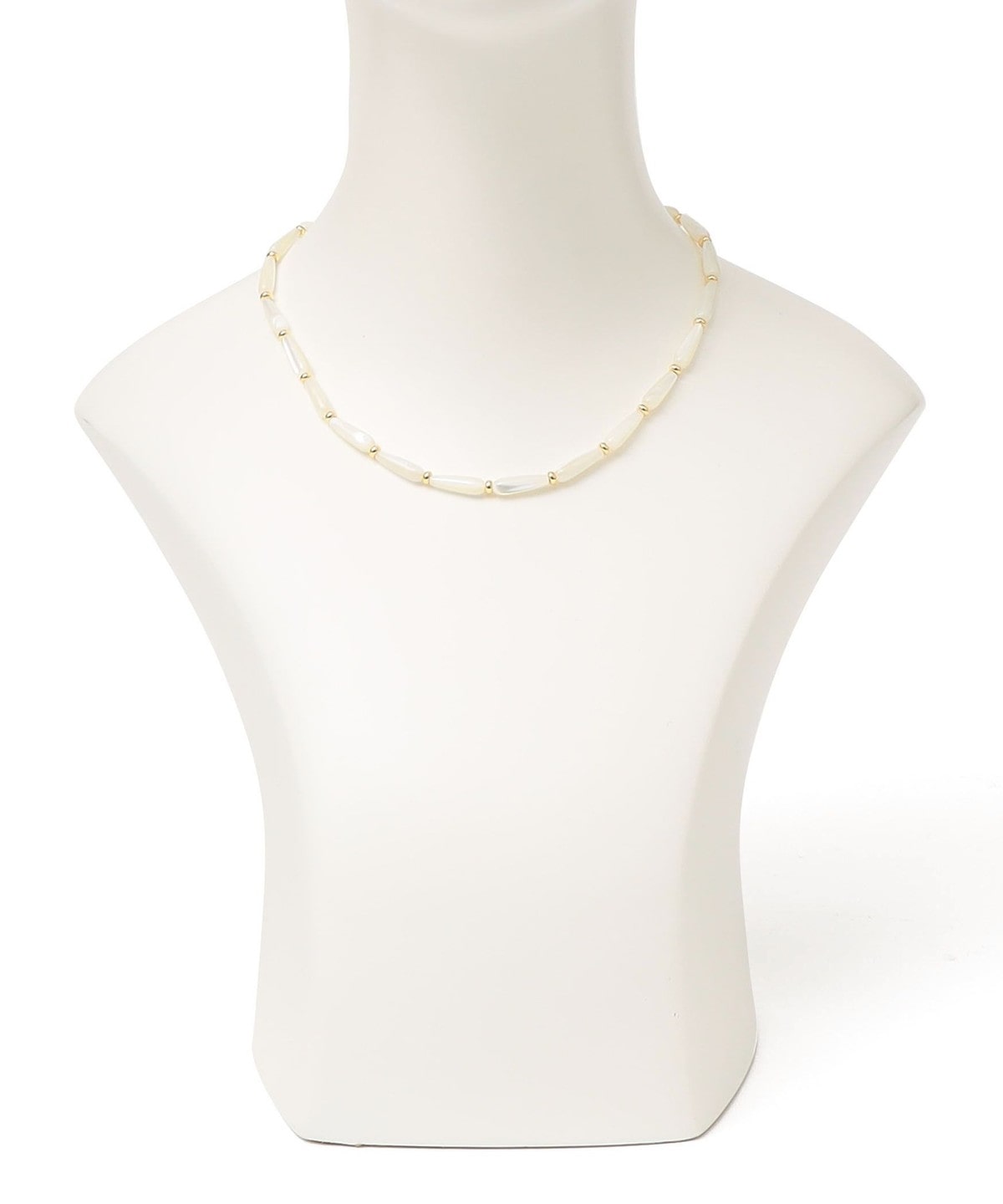 春夏らしい爽やかな印象を引き立てるシェルネックレス。