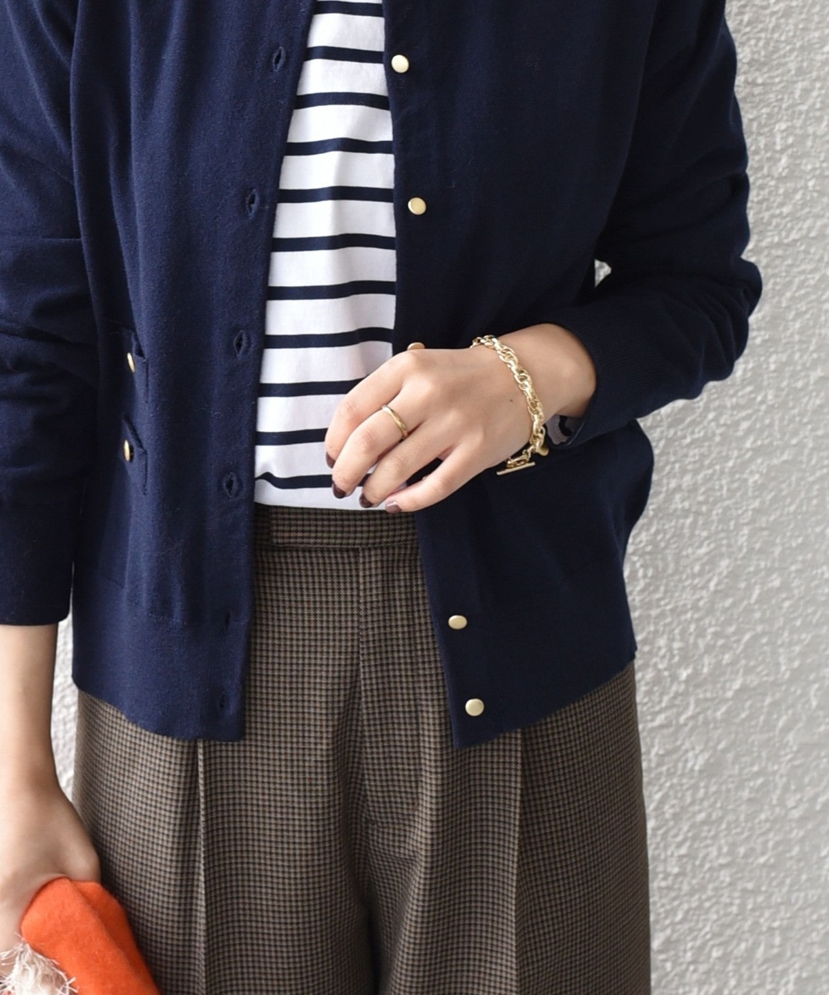 さりげなくアクセントになるブレスレット。