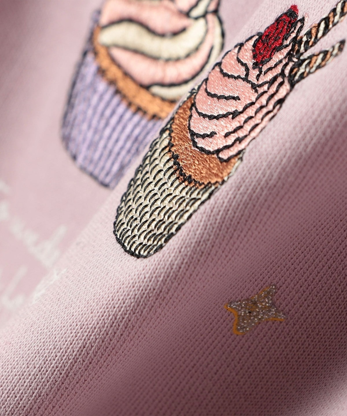 カップケーキ柄の刺繍が可愛らしいデザインスウェット。