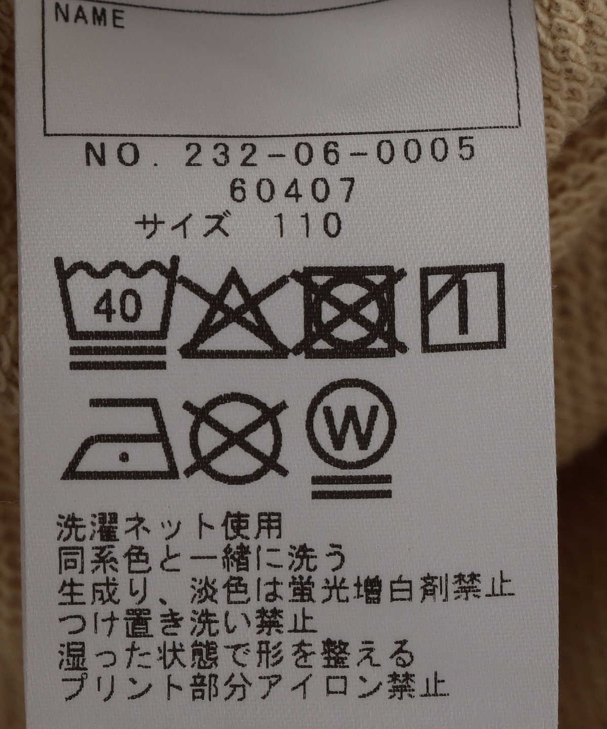 素材:本体(コットン100%)リブ(ポリエステル78%、コットン20%、ポリウレタン2%)
