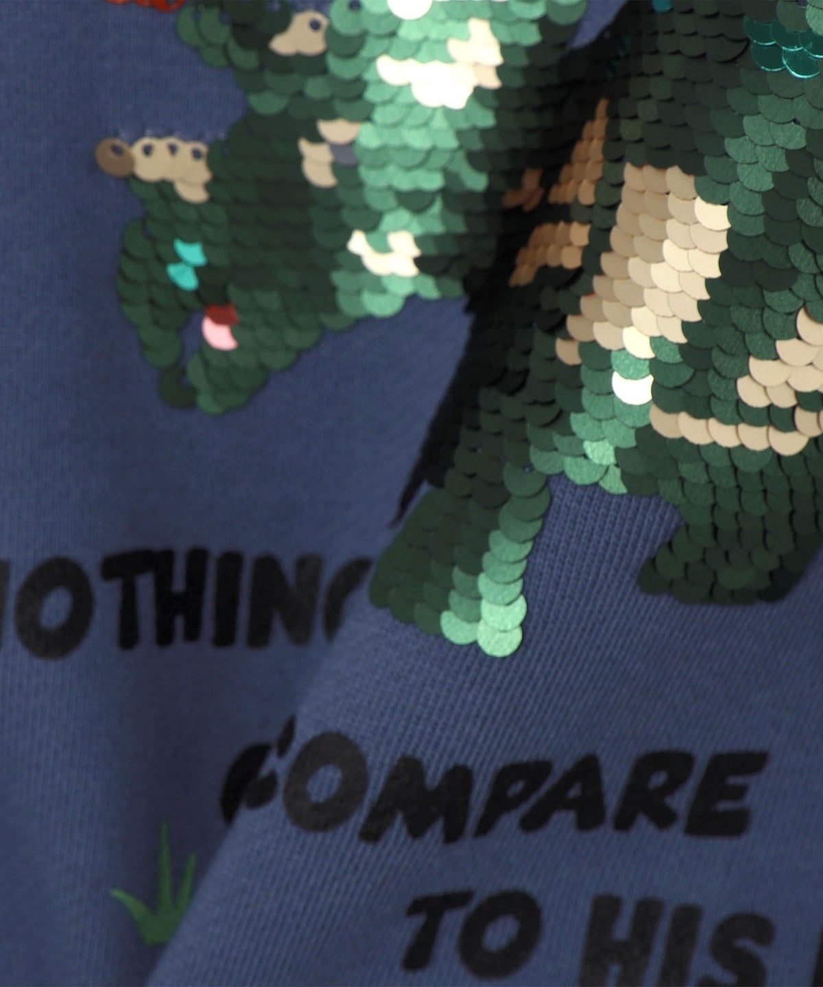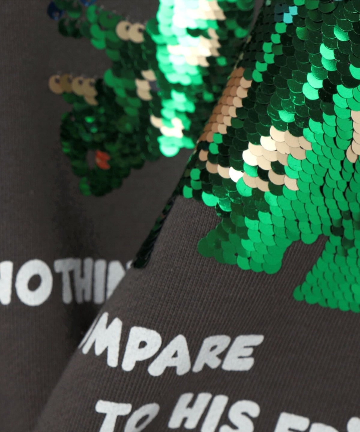 スパンコールの向きでデザインが変わる、遊び心たっぷりのスウェット。