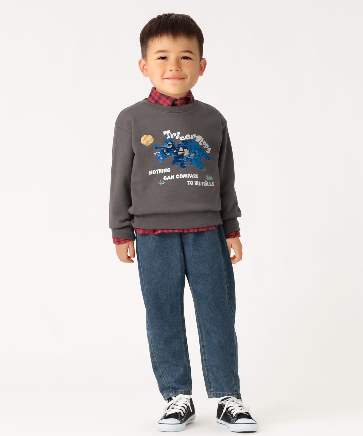 女の子はチュールスカートなどと合わせてガーリーに、男の子はチェック柄やコーデュロイパンツなど、季節感のあるボトムと合わせていただくのもおすすめです。