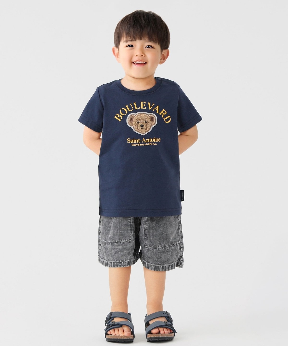 6. 《一部追加予約》SHIPS Colors:80〜150cm / TeddyBear(R) コラボ Tシャツ◆ ネイビー