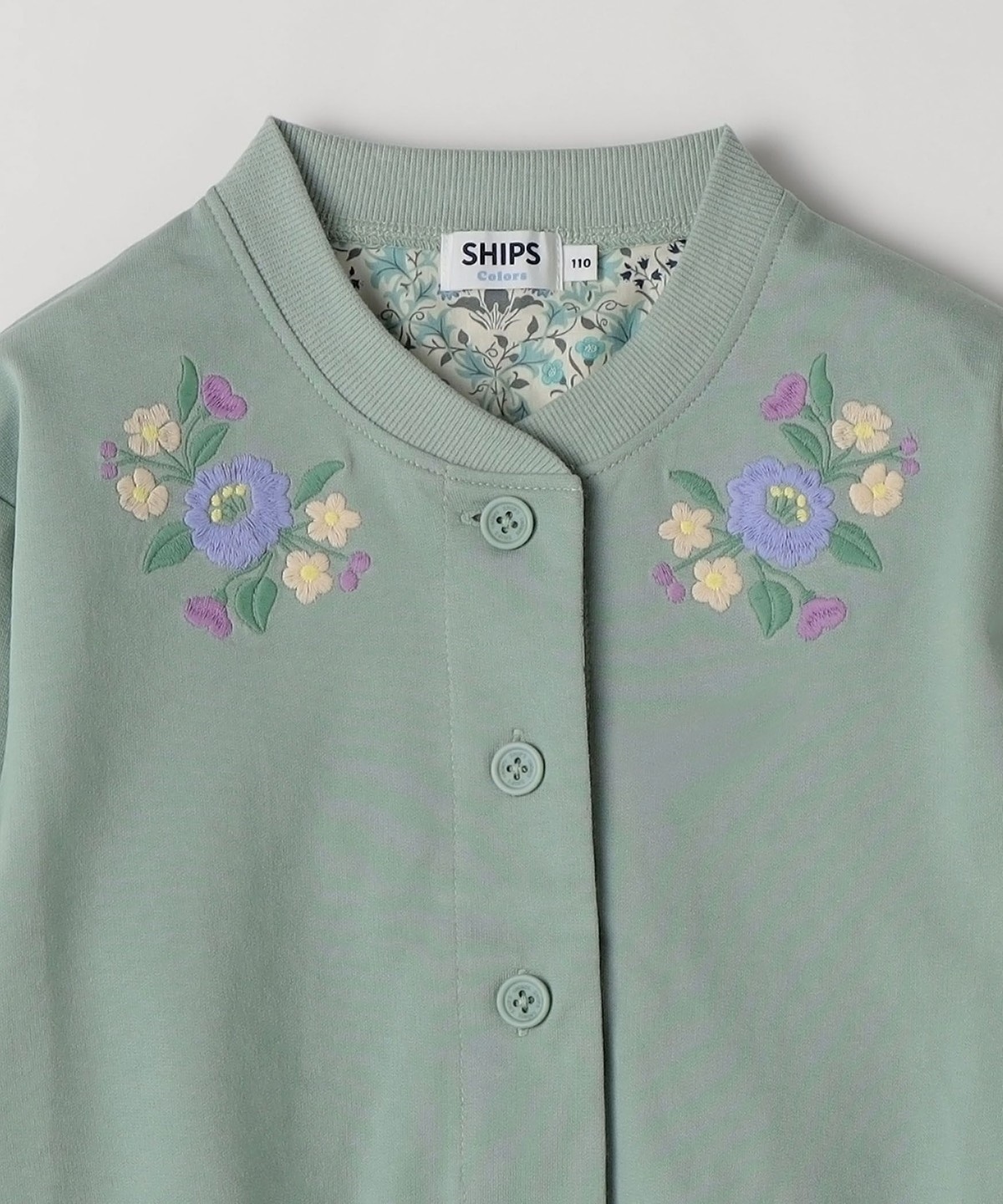 《予約》SHIPS Colors:80〜130cm / 〈洗濯機可能〉フラワー 刺繍 カーディガン◆