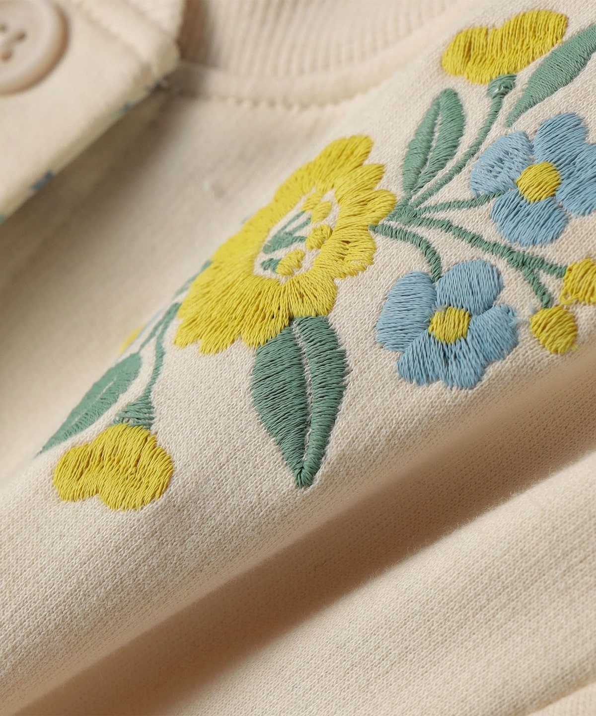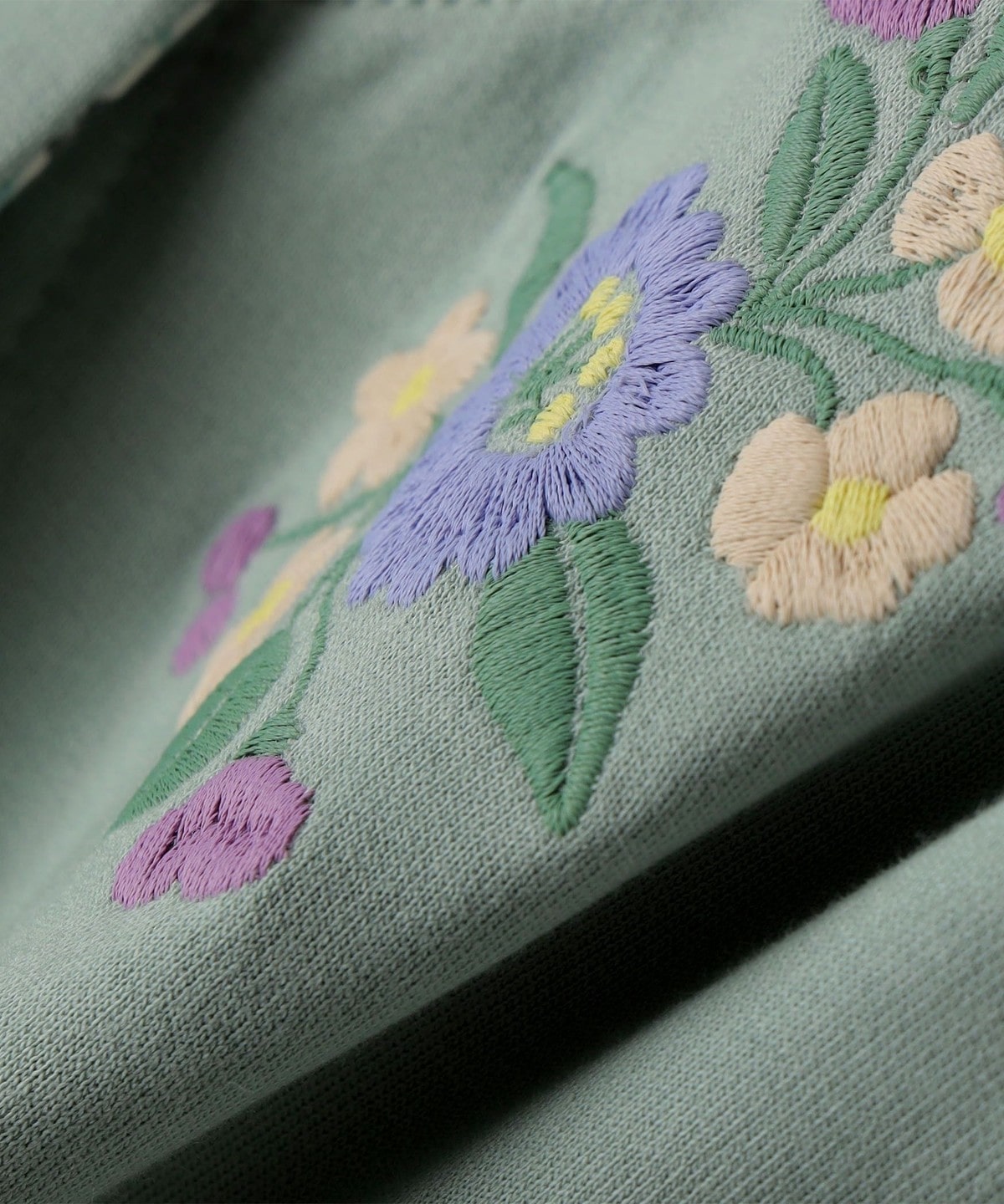 フラワーモチーフの刺繍が可愛らしいカットカーディガン。