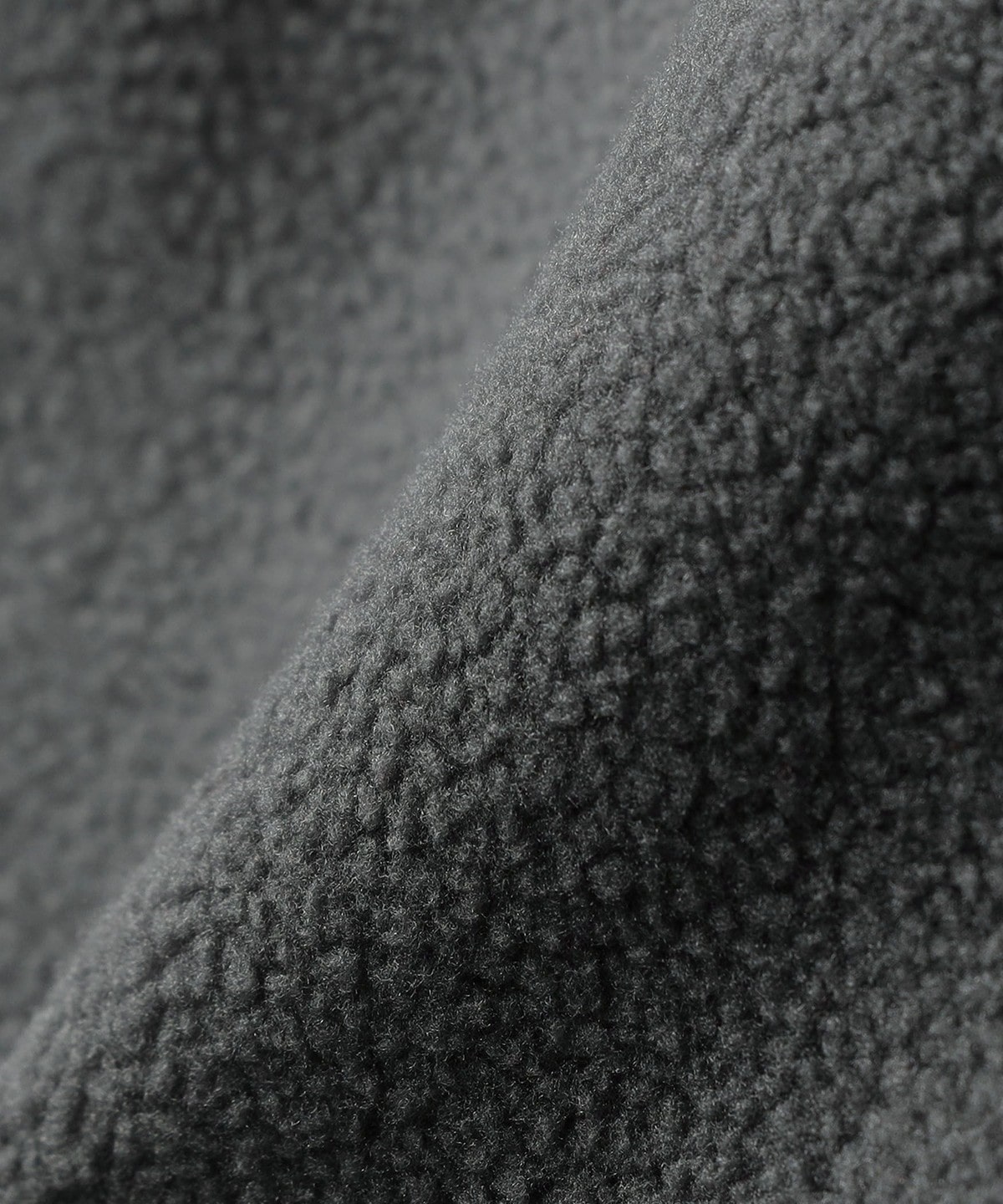 表側はストレッチ性のあるリップストップ素材、裏側はあたたかみのあるフリース素材。