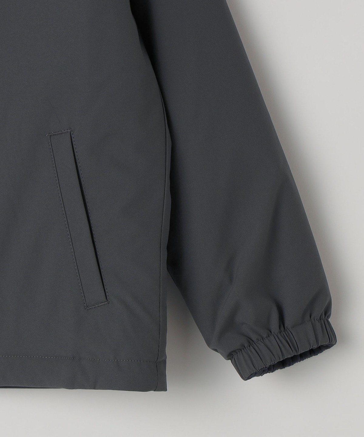異なる表情の生地を使用した、リバーシブル仕様のジップアウター。