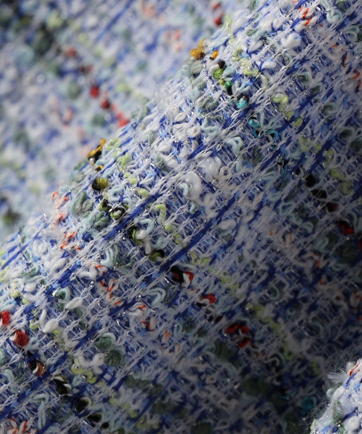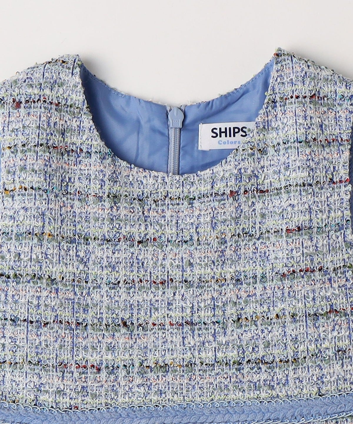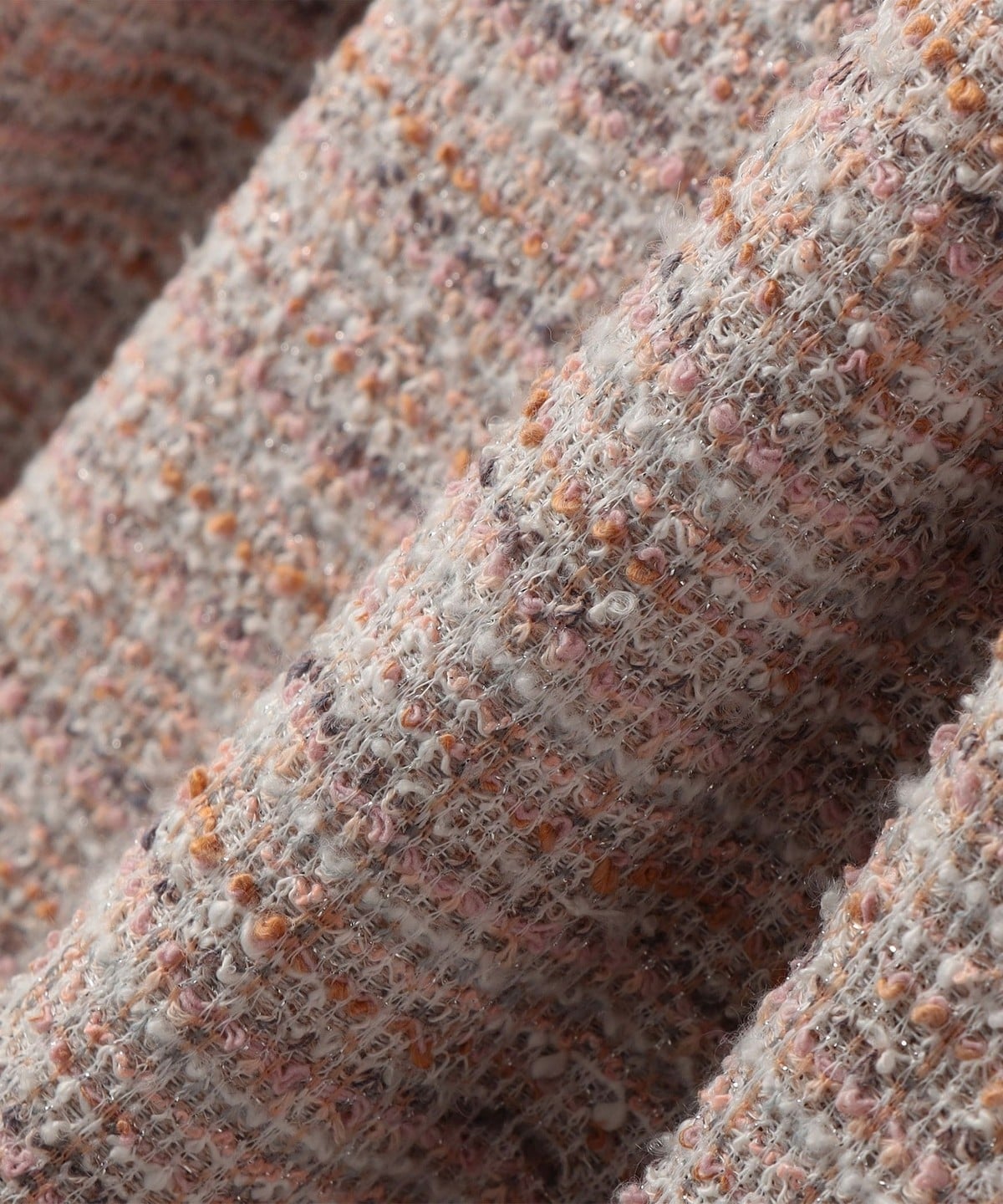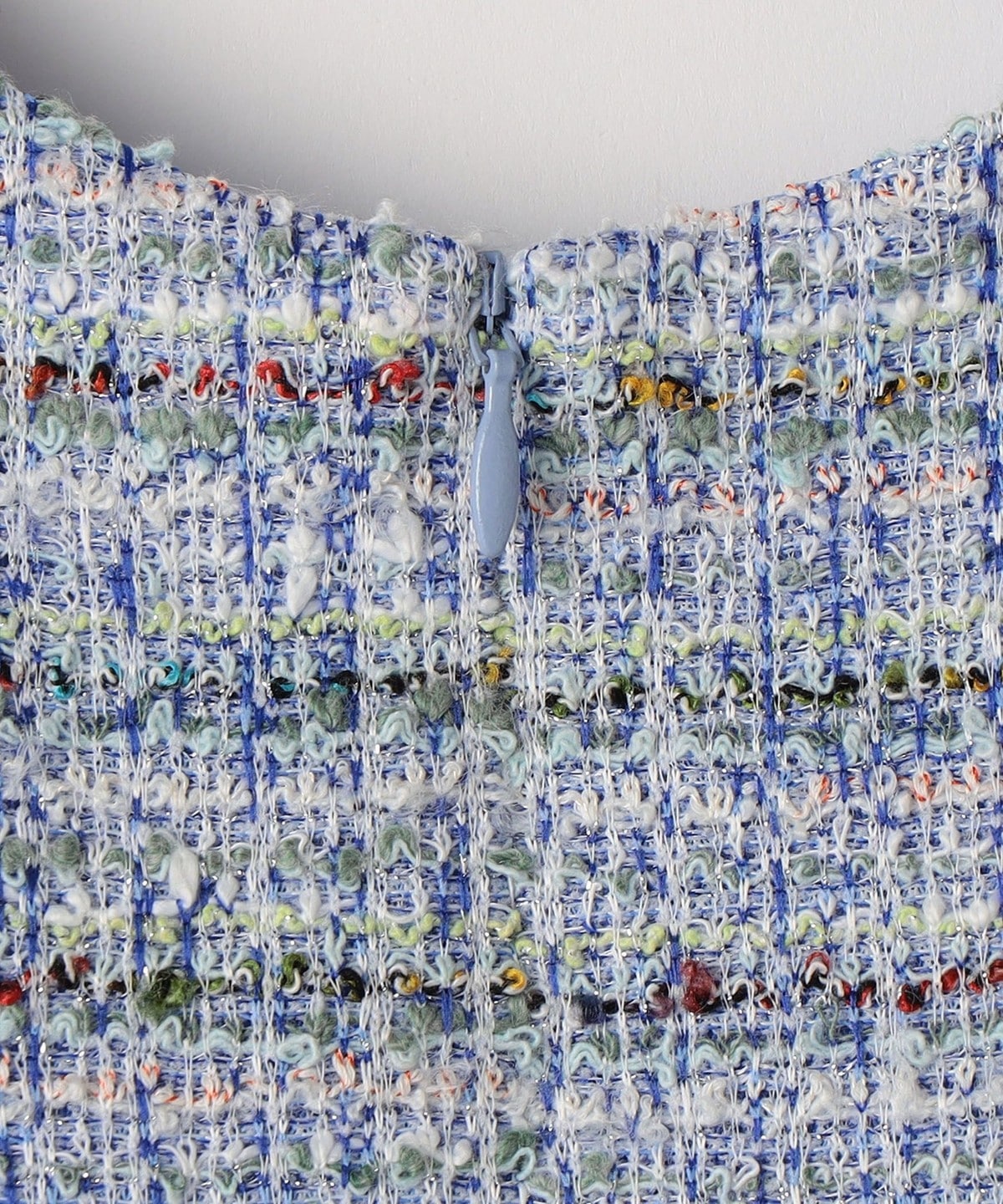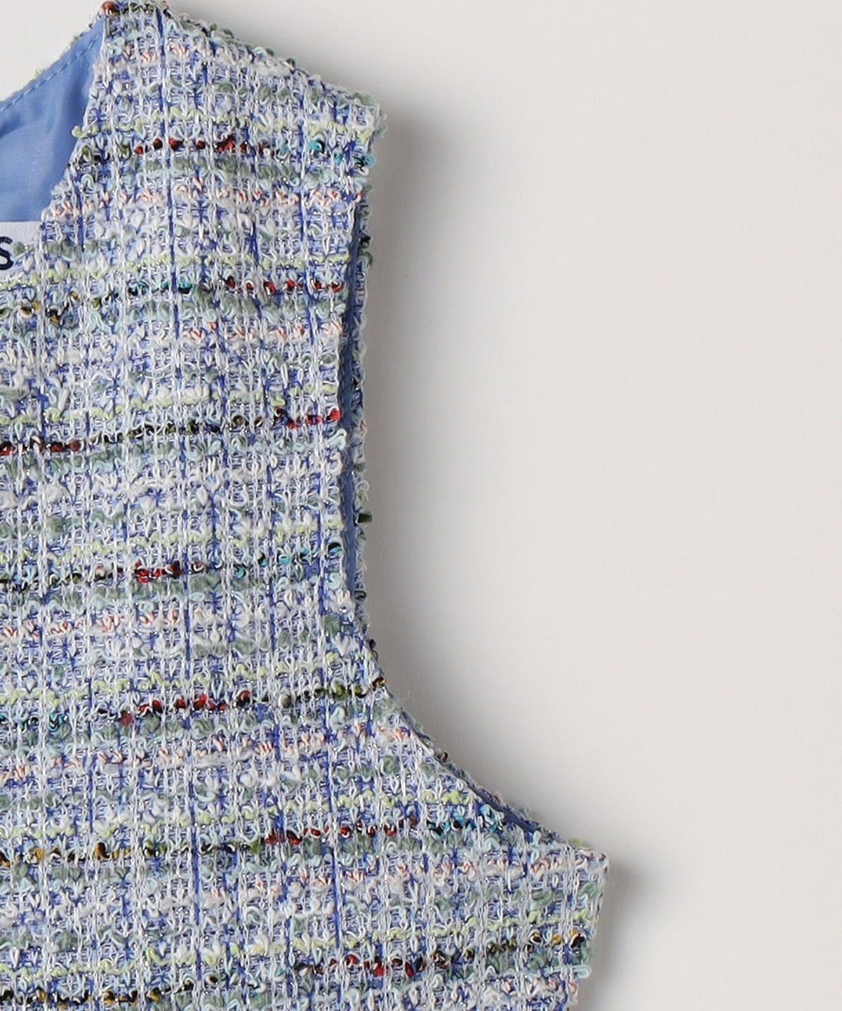 明るめのカラーが華やかなツイード生地を使用。