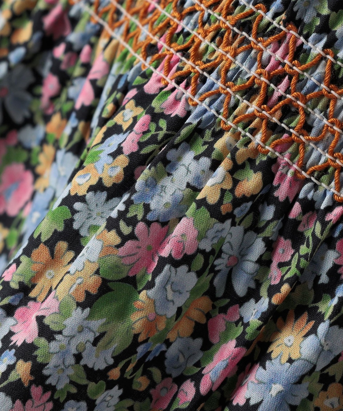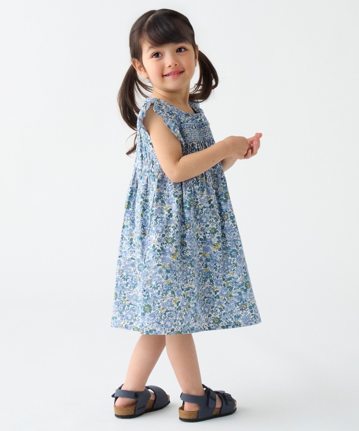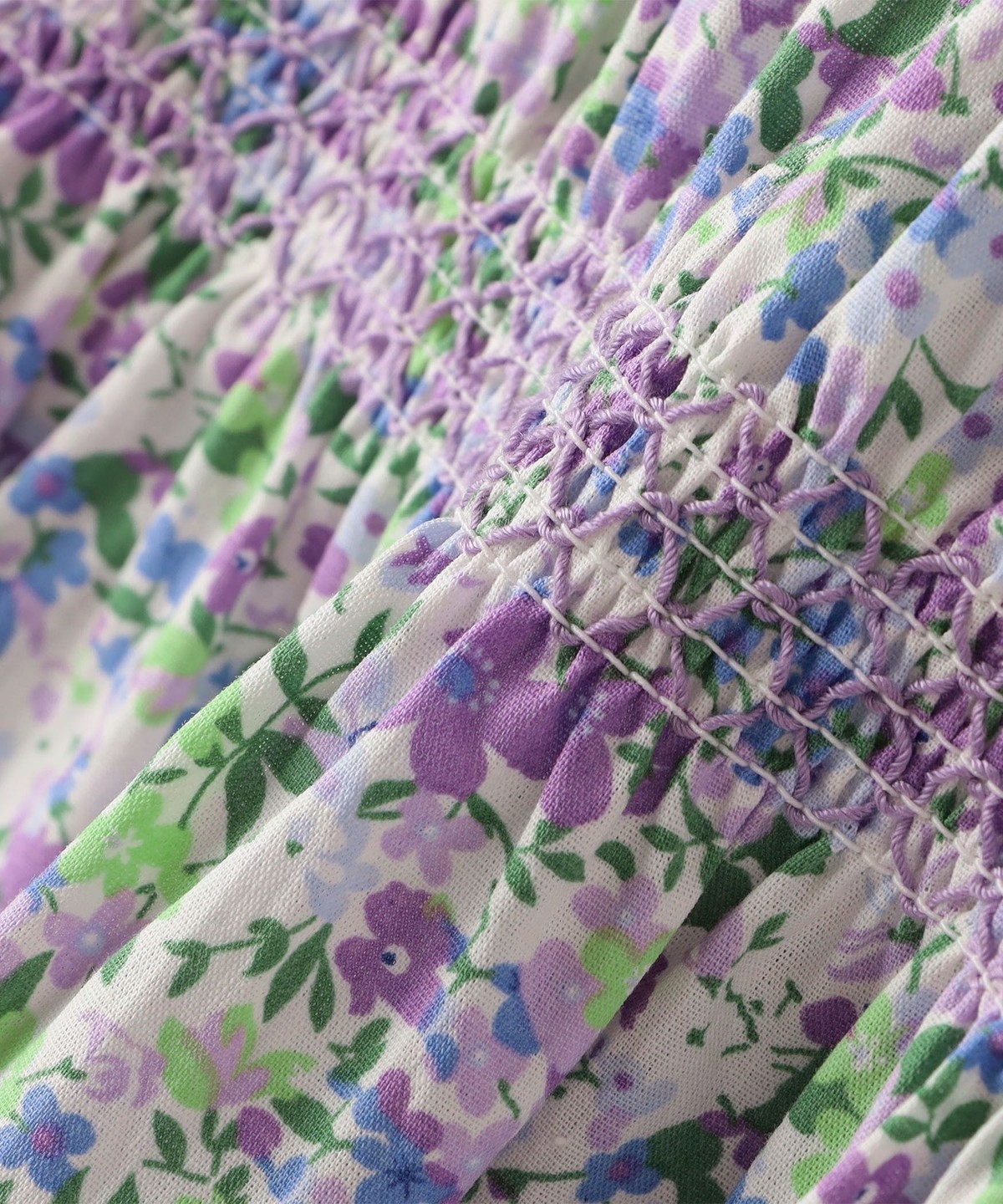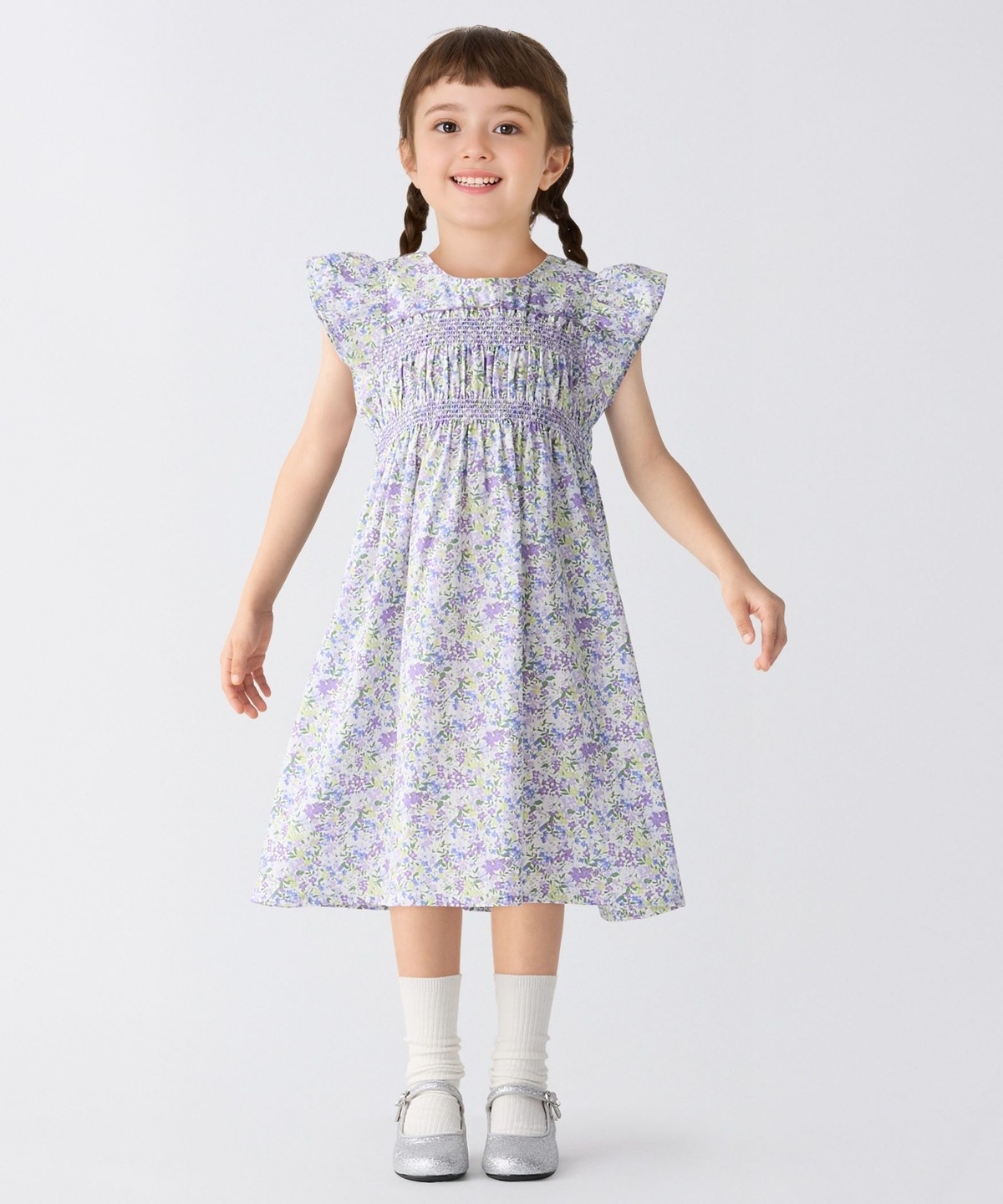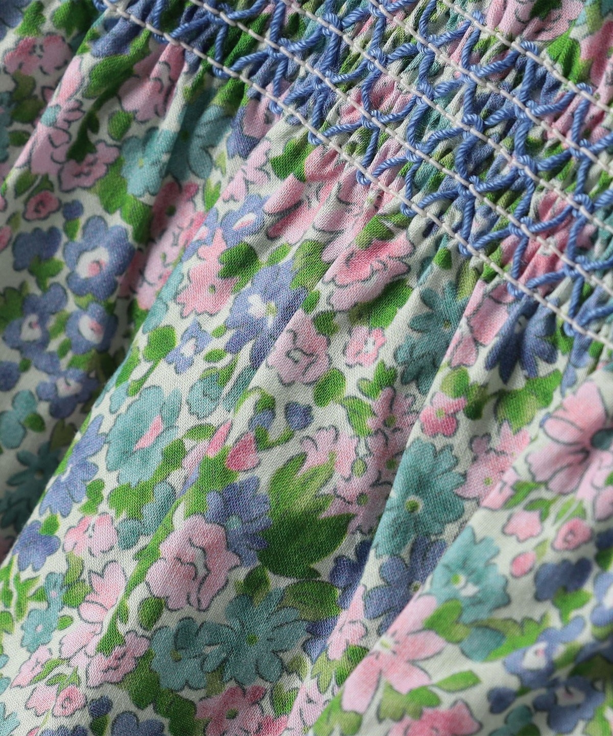スモッキングのディティールと袖のフリルがポイントで、可愛らしい雰囲気で着用いただけます。