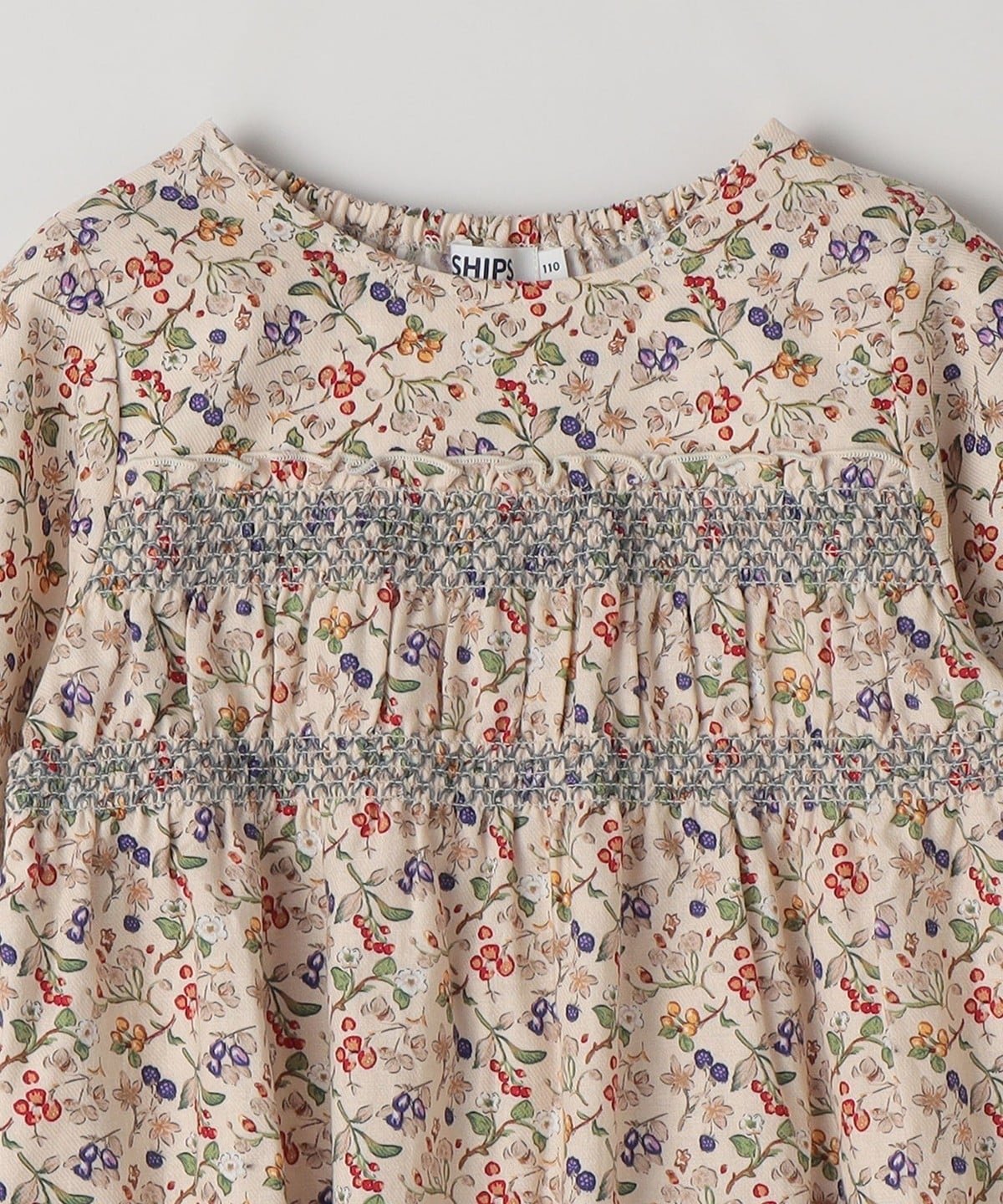 《予約》SHIPS Colors:90〜140cm/〈洗濯機可能〉スモッキング フラワーワンピース◆