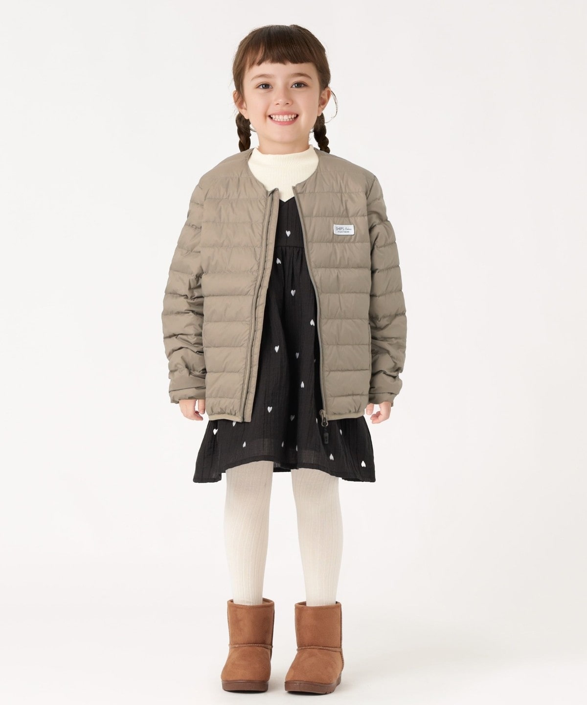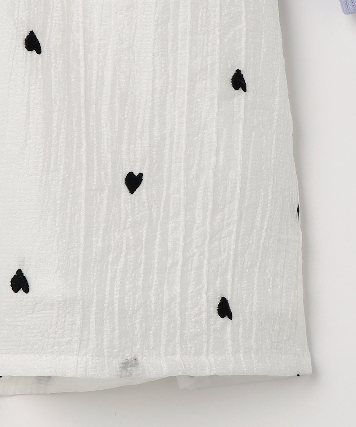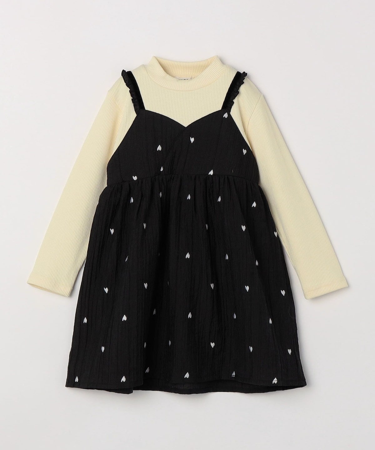 ワンピース部分はハート刺繍を施した軽やかな素材感で、動くたびにふんわりと揺れる可愛らしさも魅力です。