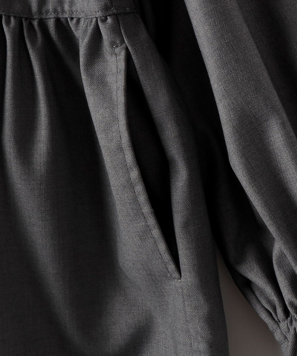 袖にはゴムでギャザーを施し、フリルのような表情とまくりやすさを兼ね備えています。
