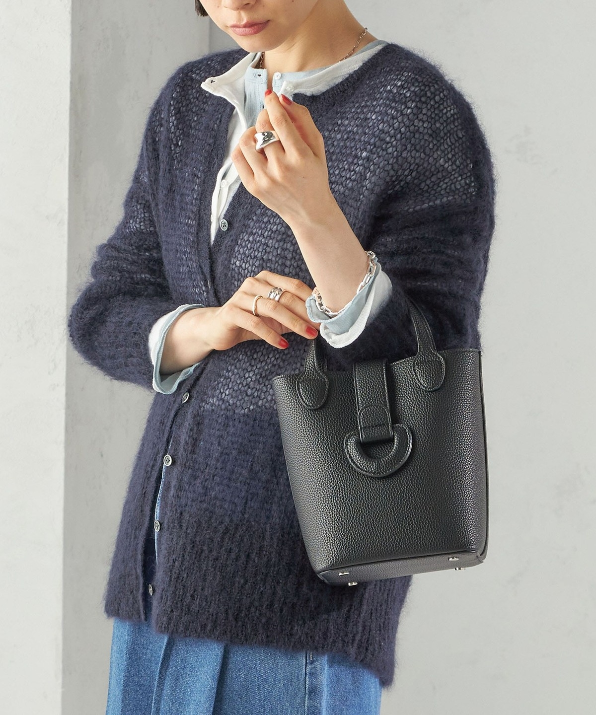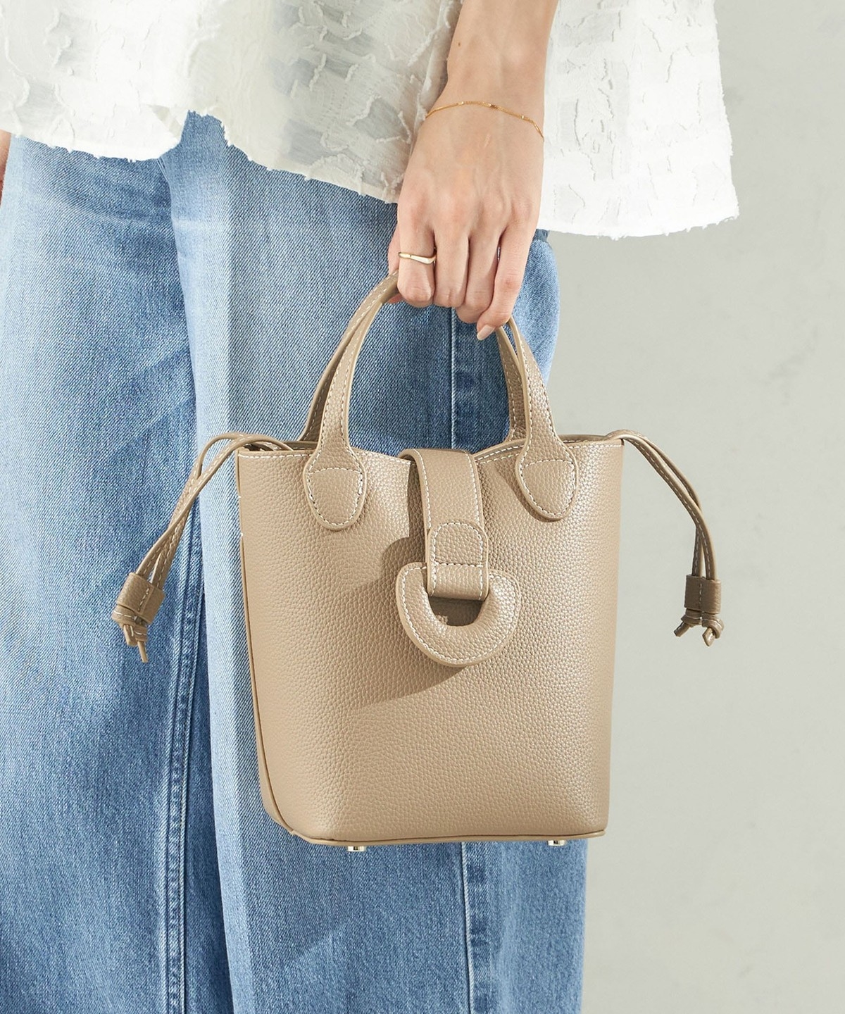 バックルが印象的なミニバッグ。