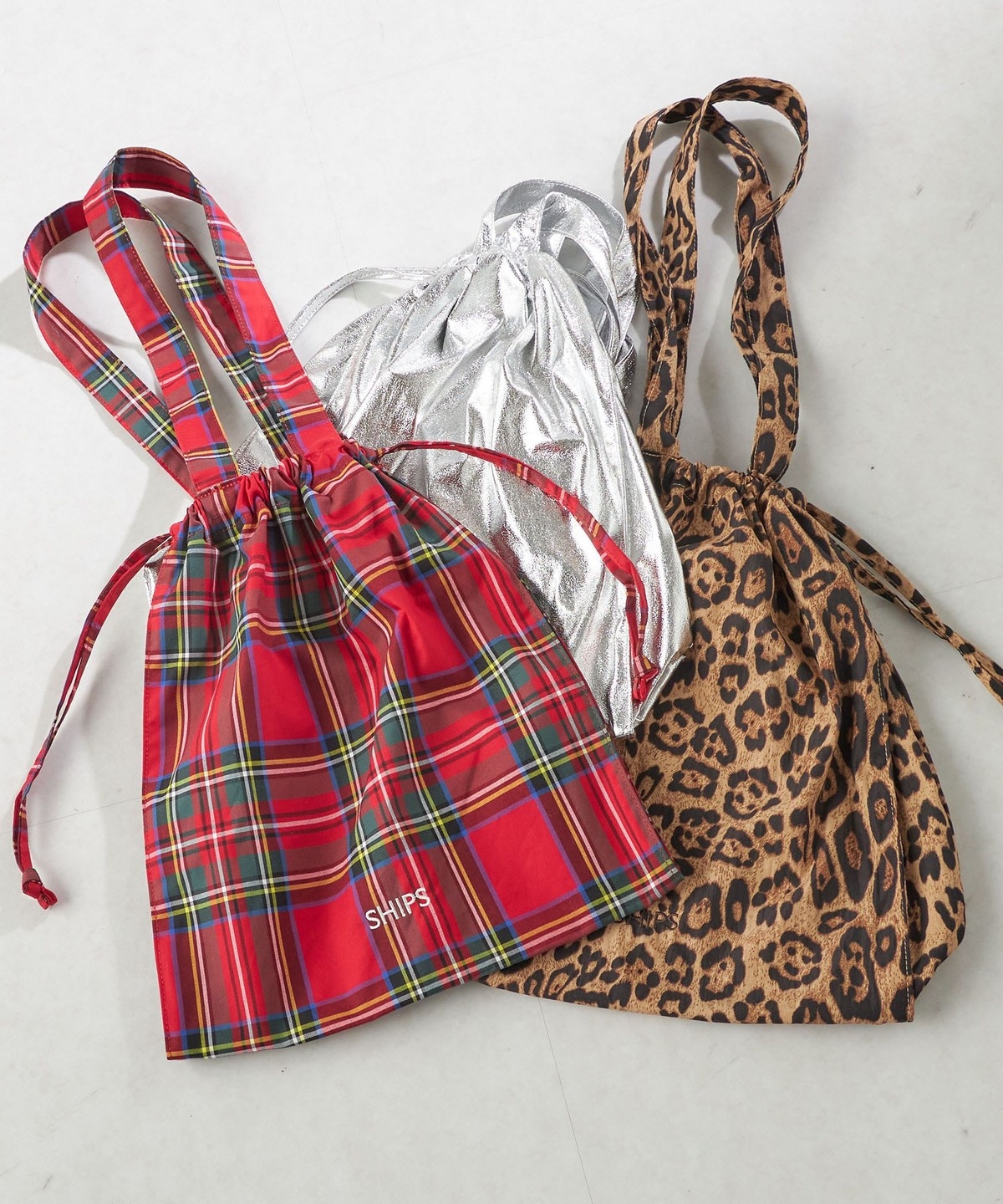チェック、レオパード、シルバーの3種類の展開で、それぞれにSHIPSのロゴ刺繍が施されています。