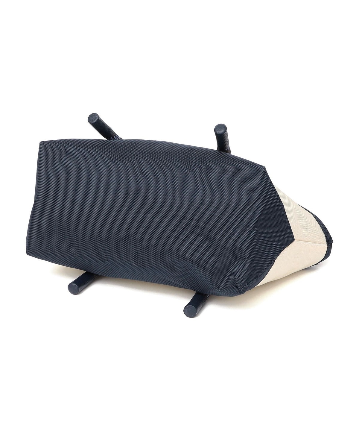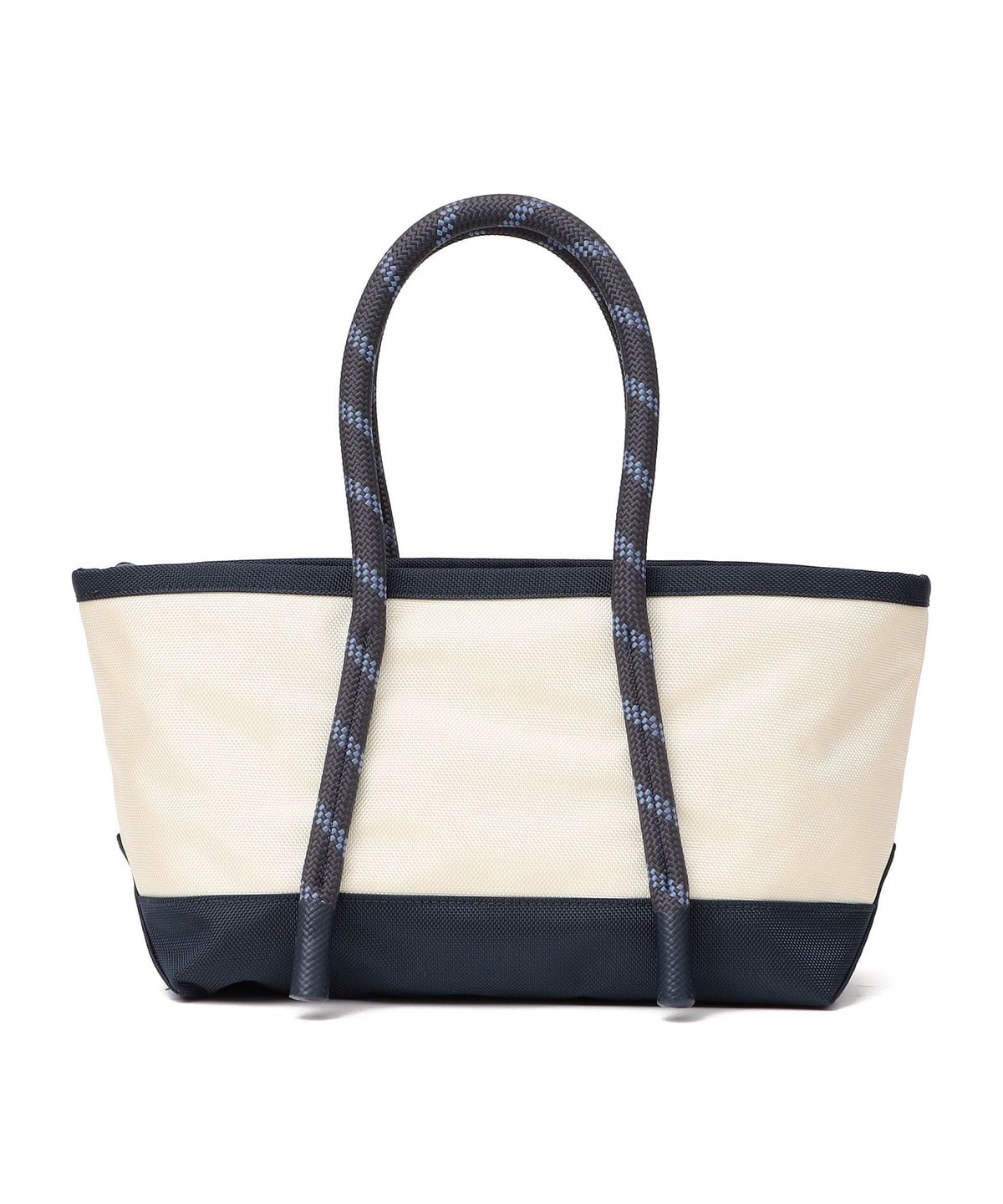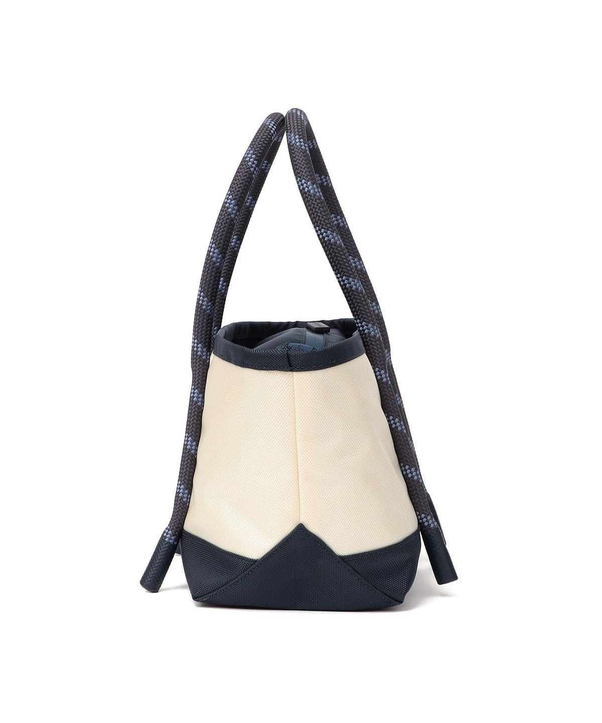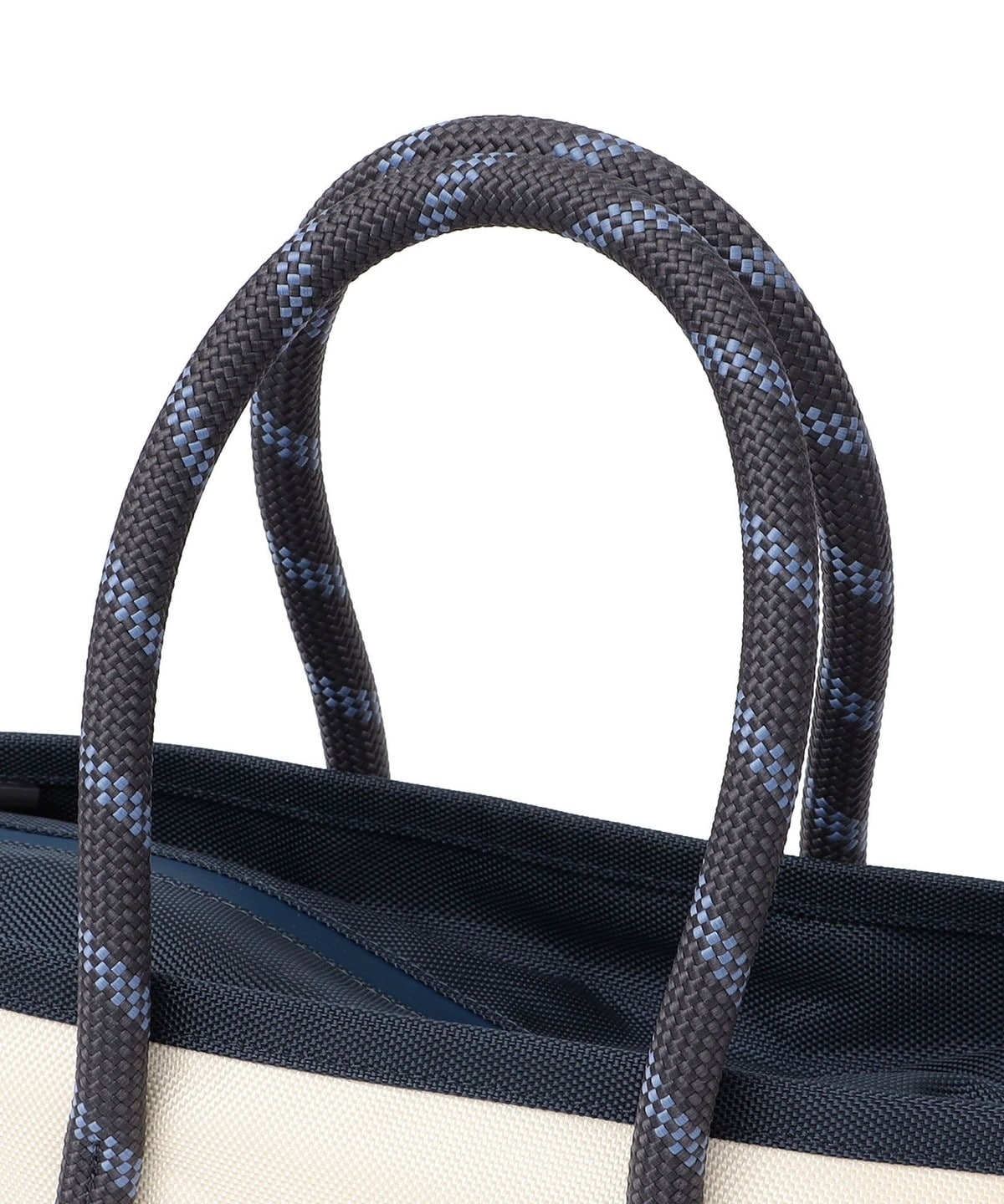 バックの底まで続く16mm幅のロープハンドルは、先端にラバー加工を施すことで型崩れしにくく、床に置いた際も自立しやすい仕様です。