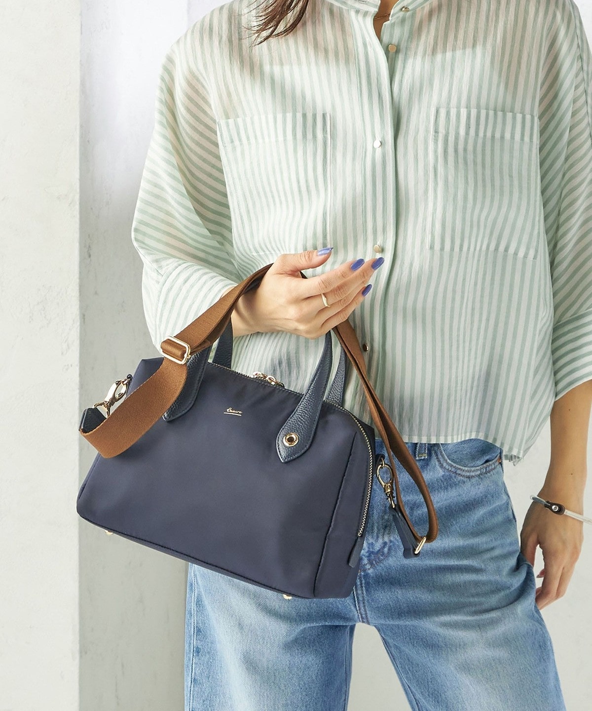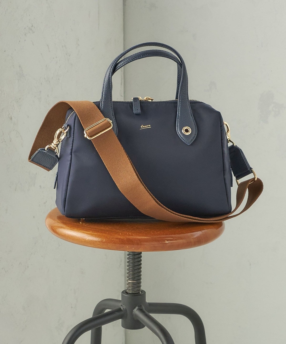 太めのショルダーストラップ付きで、手持ちと斜めがけができる2WAY仕様。