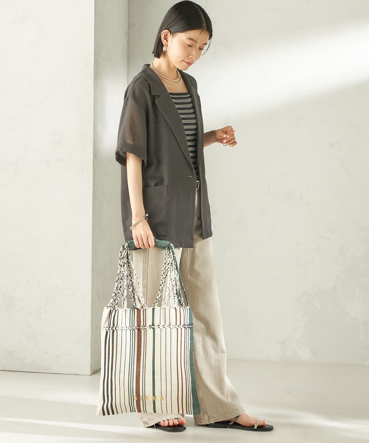 さらっとした軽やかな素材感で、暑い季節でも気負わず持てるのも魅力。