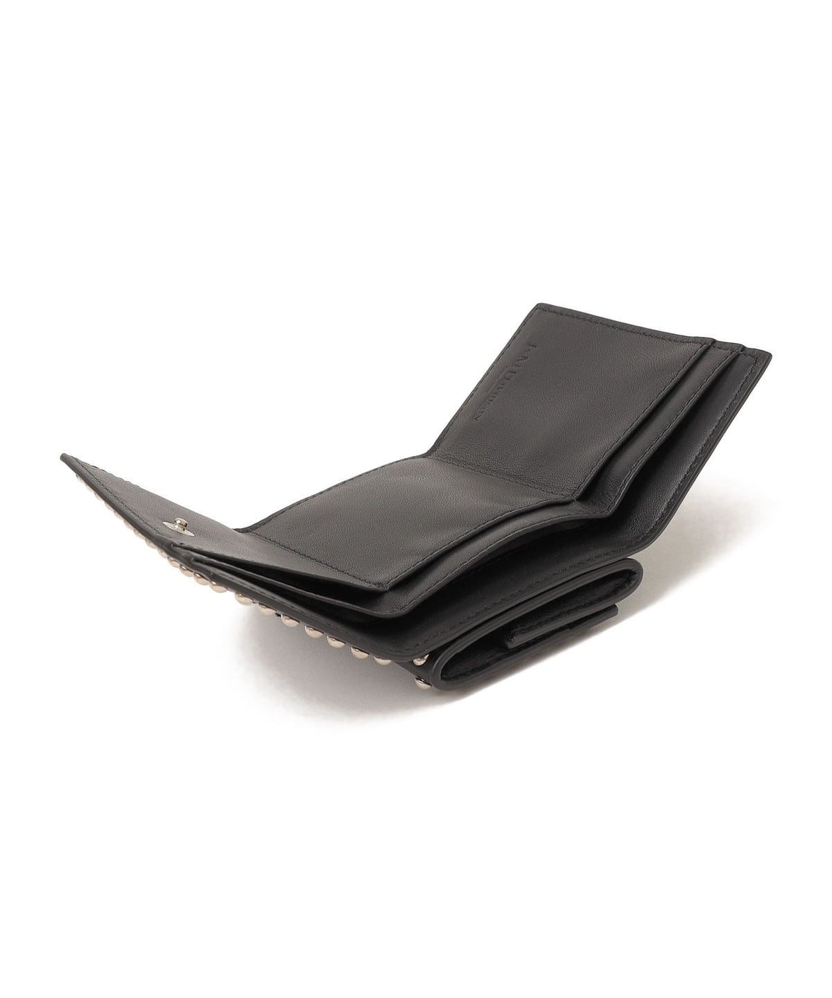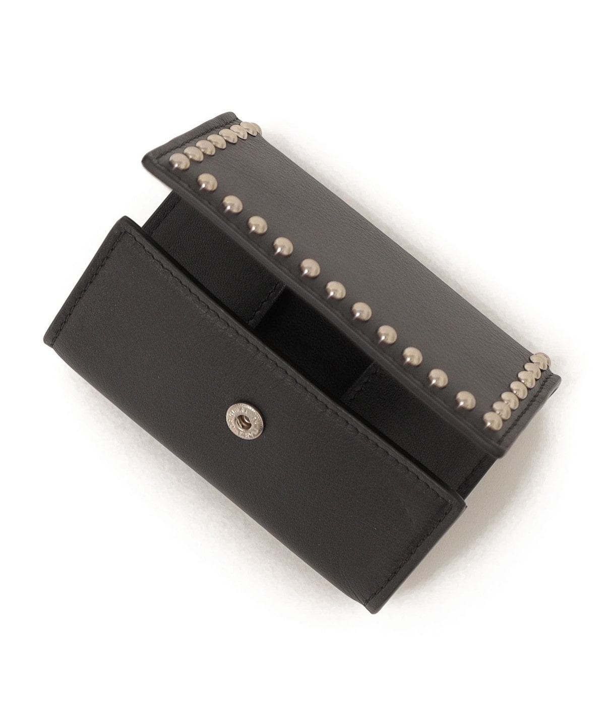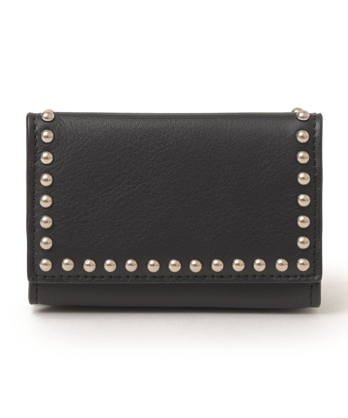 両面にスタッズが施された三つ折りタイプのミニ財布です。