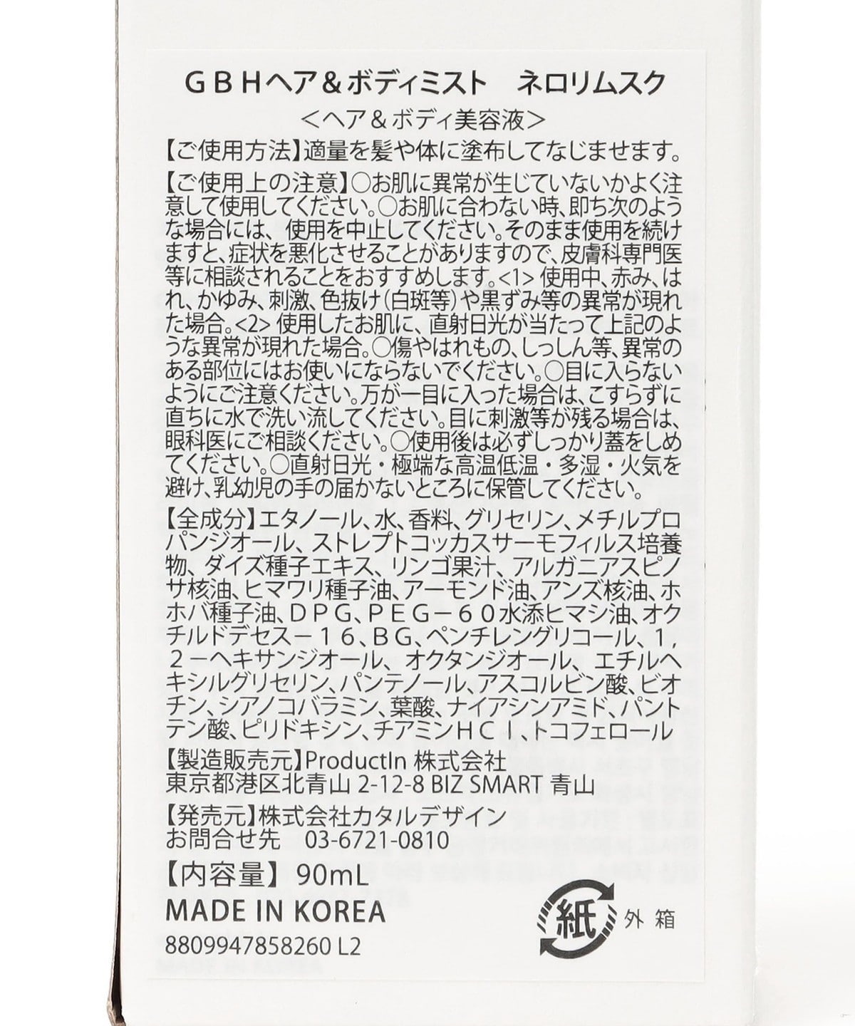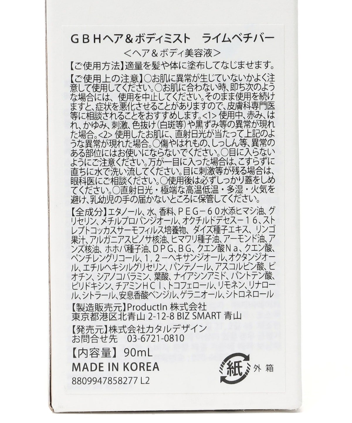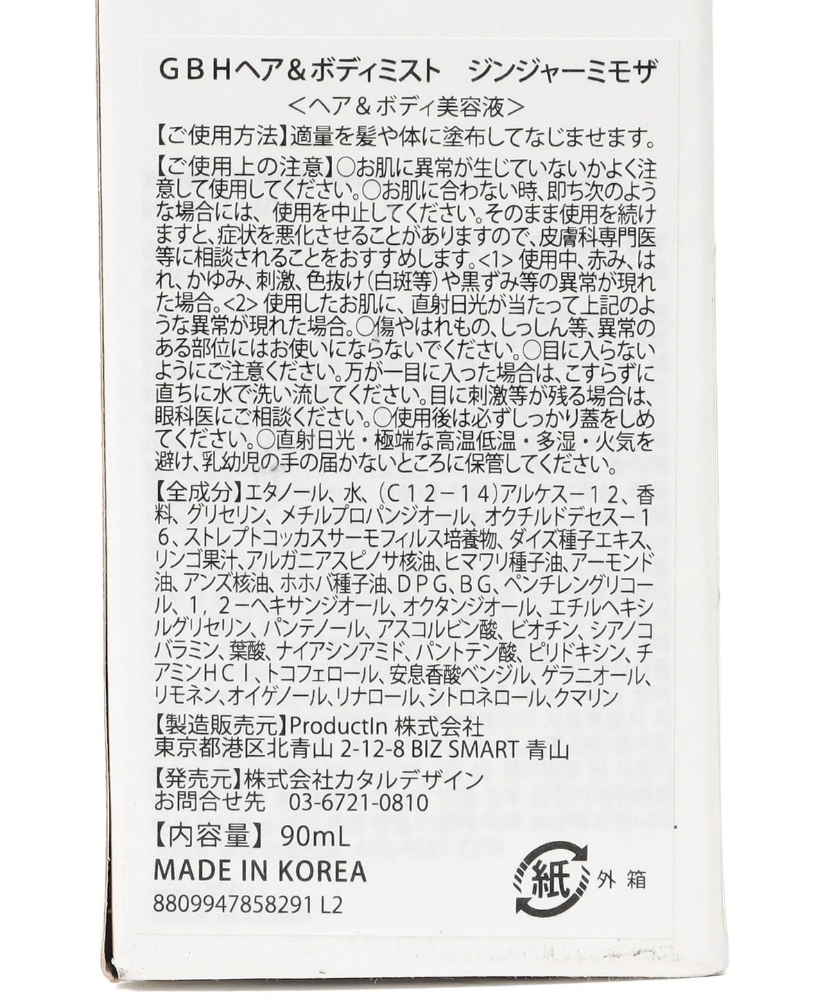 1. GBH:HAIR&BODY MIST ライトホワイト