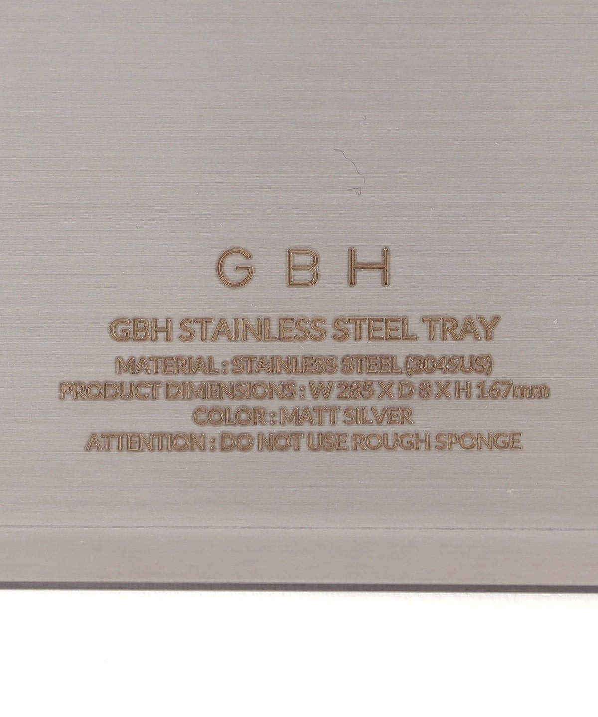 食器にも使用されるSUS304スチール素材の板を曲げて、素材の美しさを最大限に引き出したGBHのスチールトレーは、頑丈で使い勝手が良いのが特徴です。