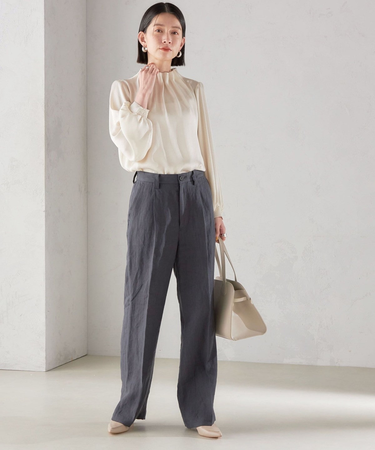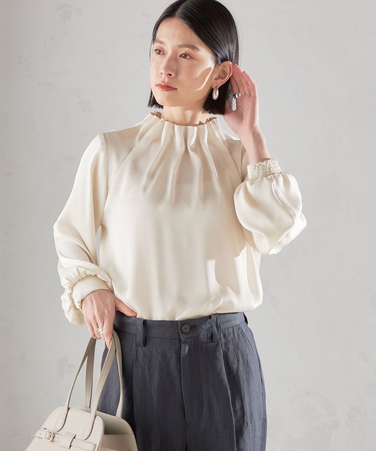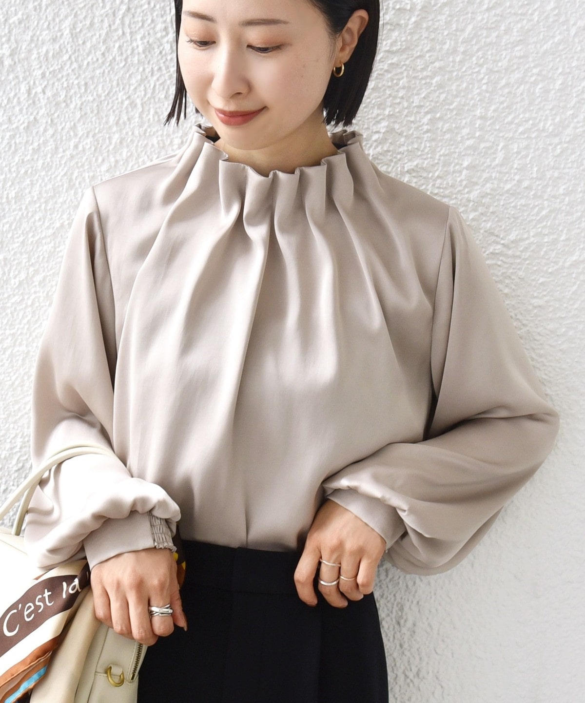 オンオフ問わずデイリーに使えるサテンブラウス