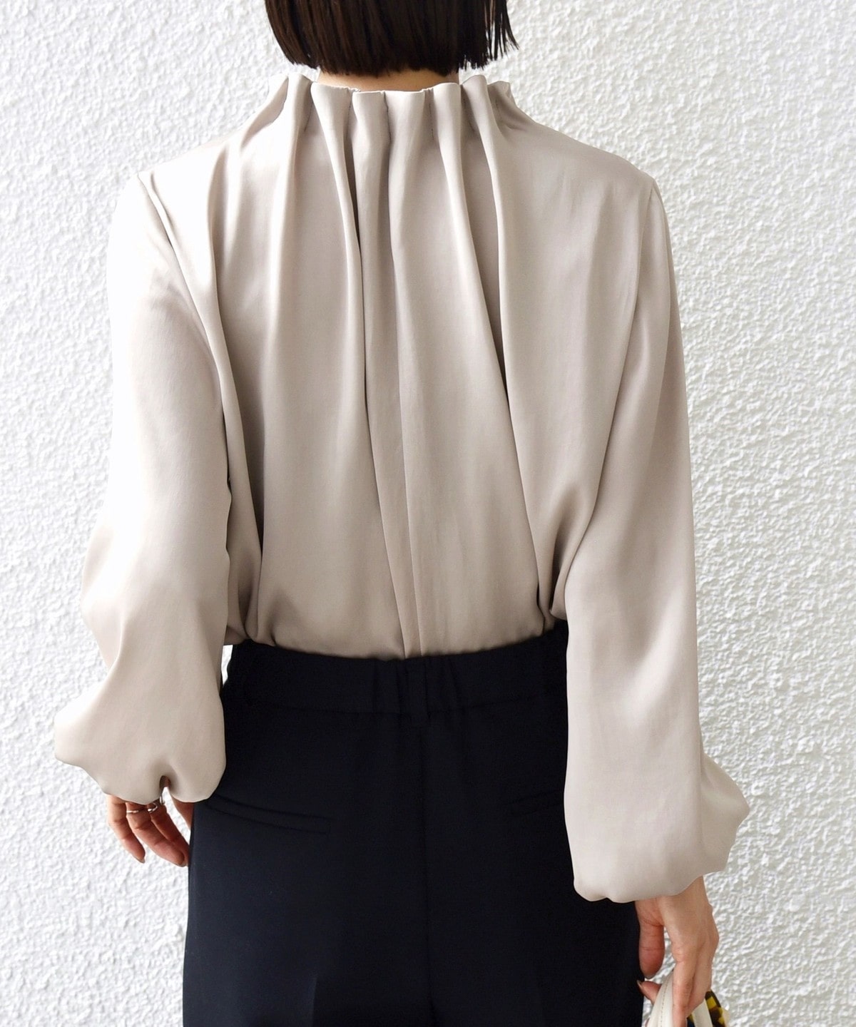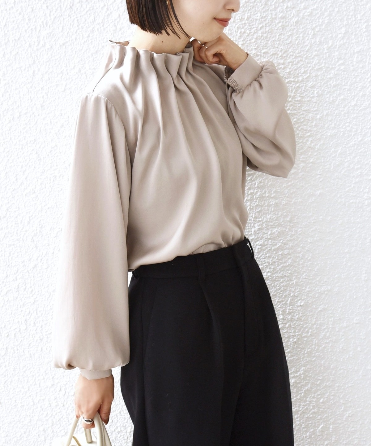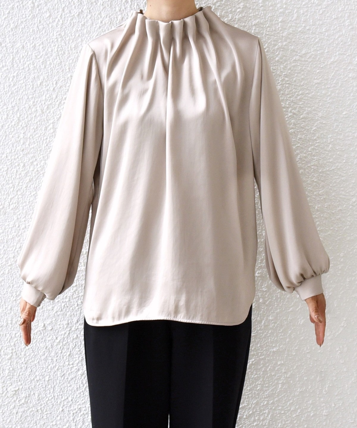3. 〈手洗い可能〉ヴィンテージ サテン ネック ギャザー ブラウス ベージュ