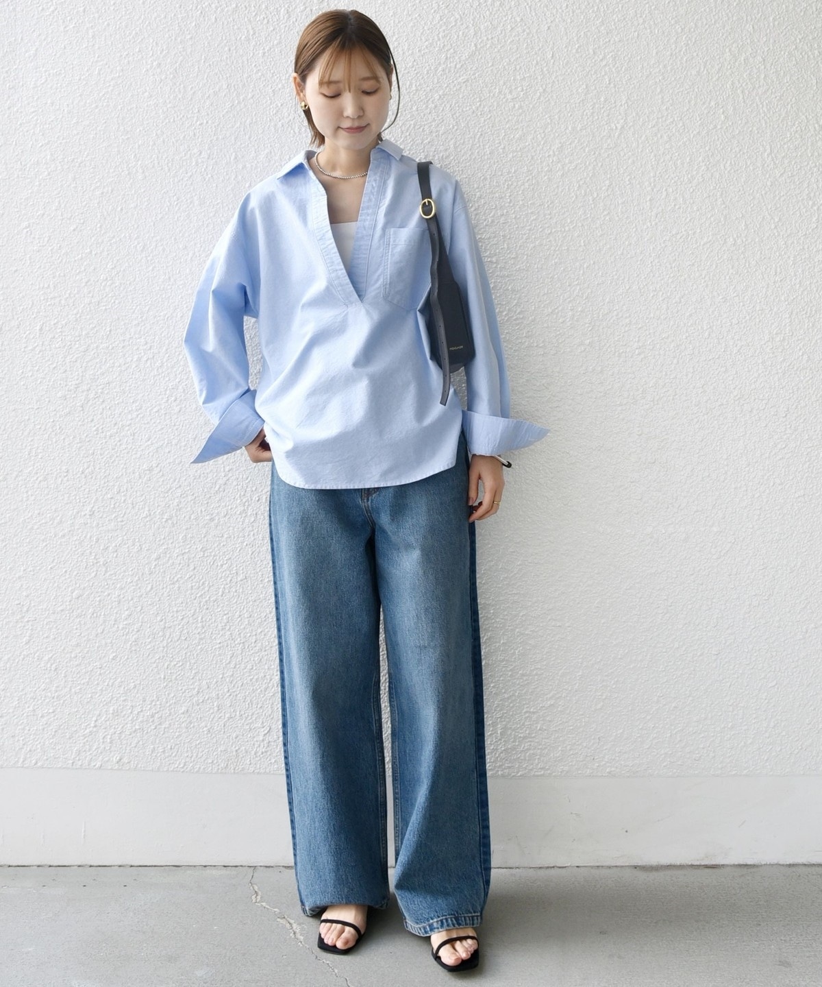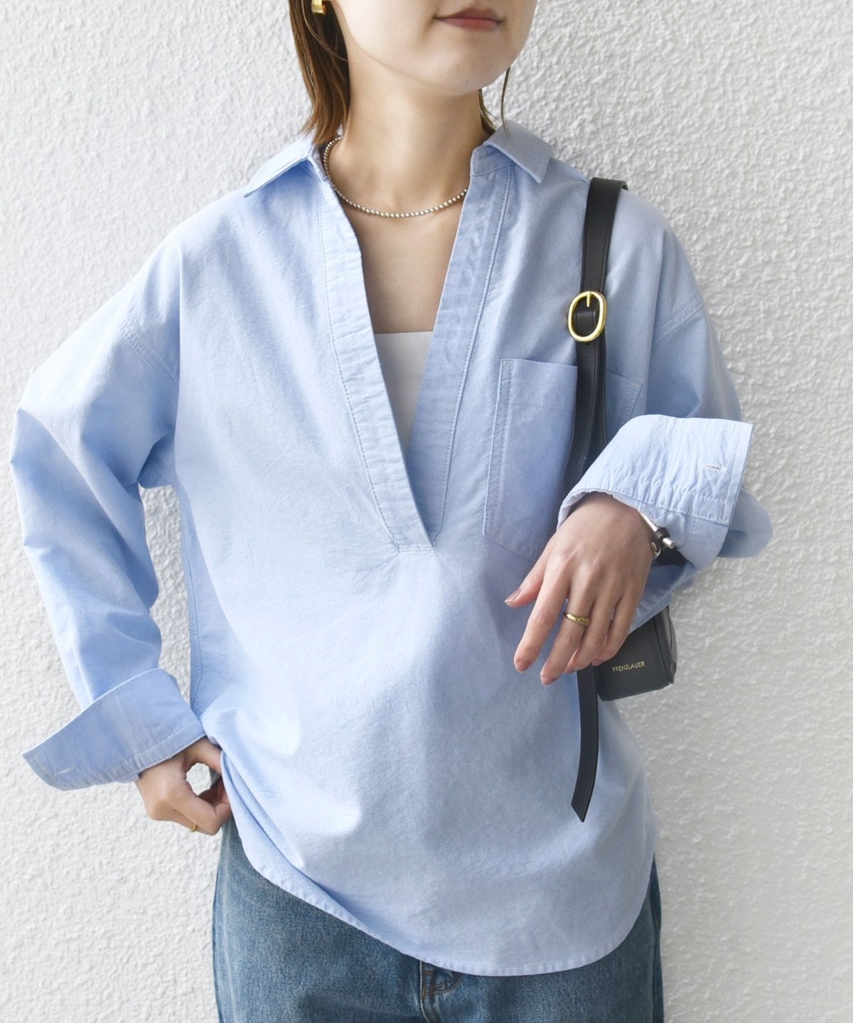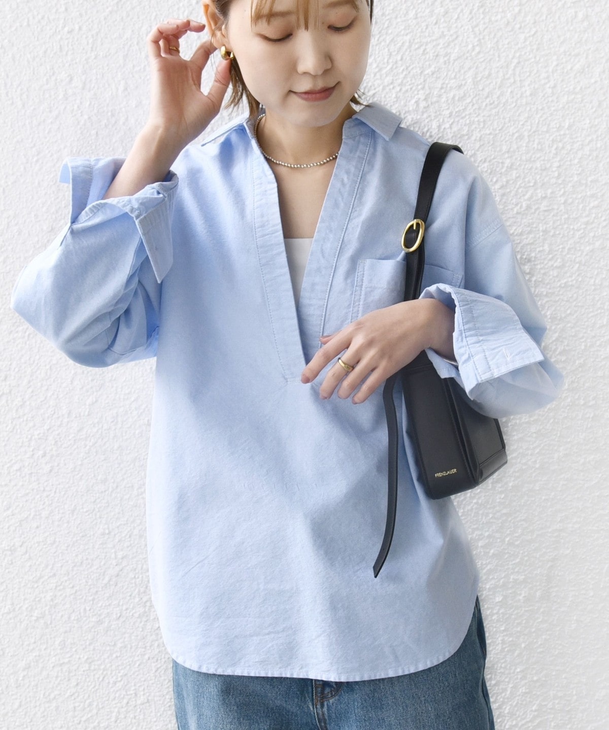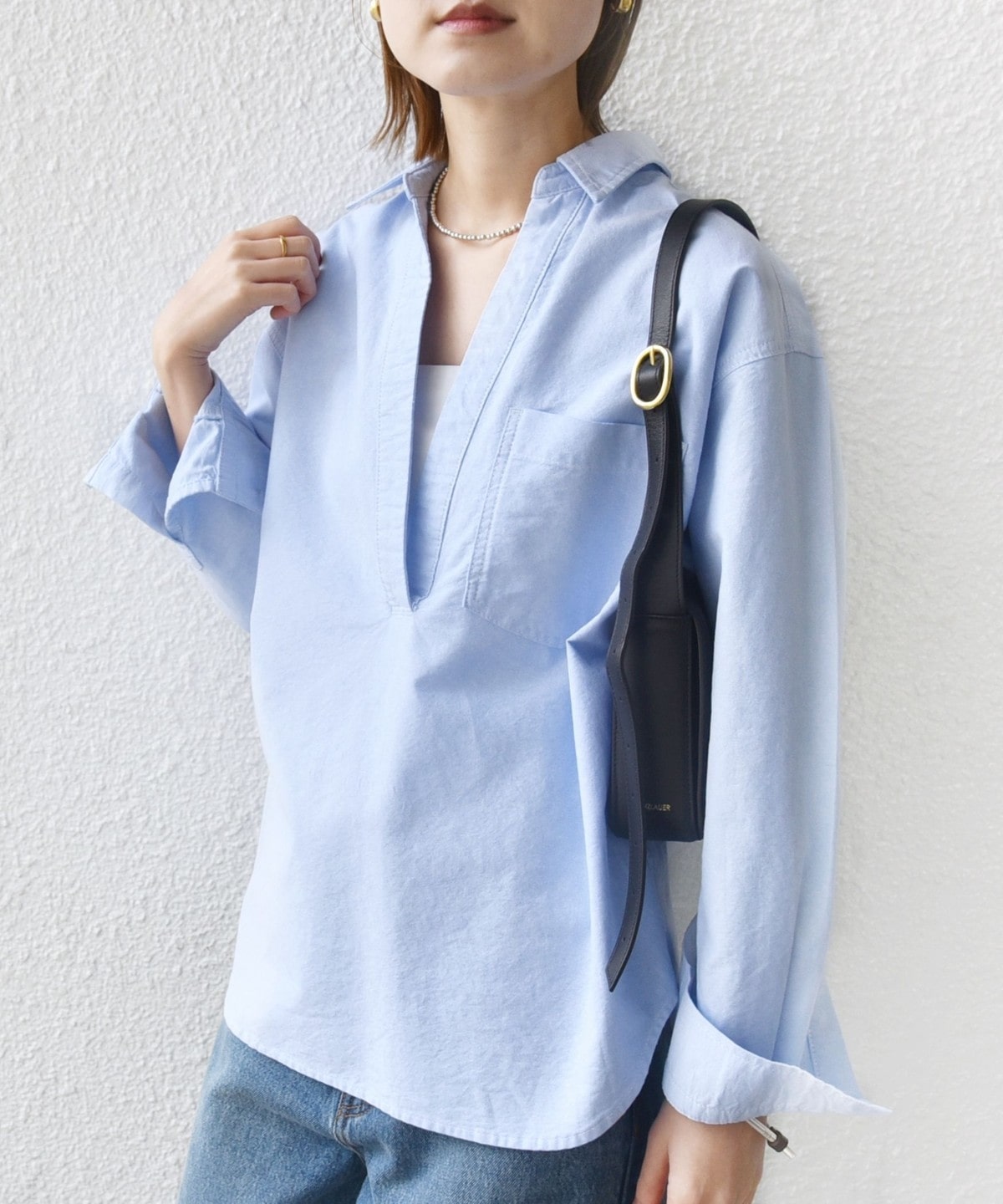 ゆったりとしたシルエットが魅力のスキッパーシャツ。