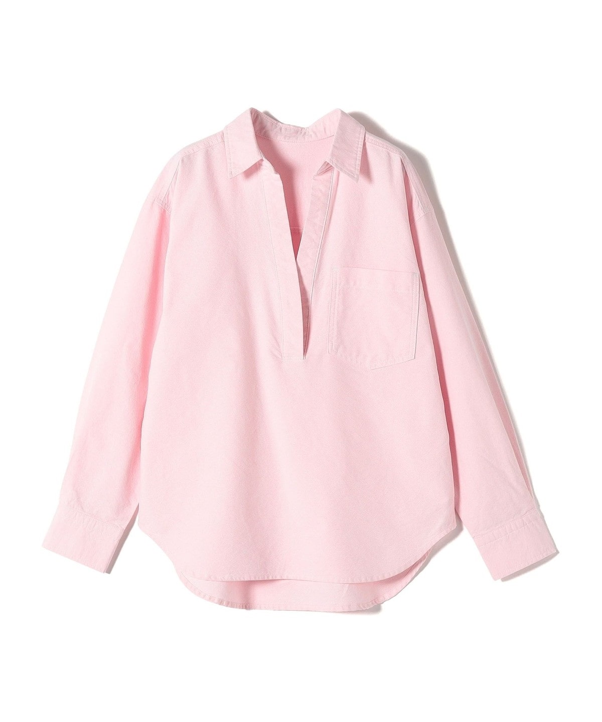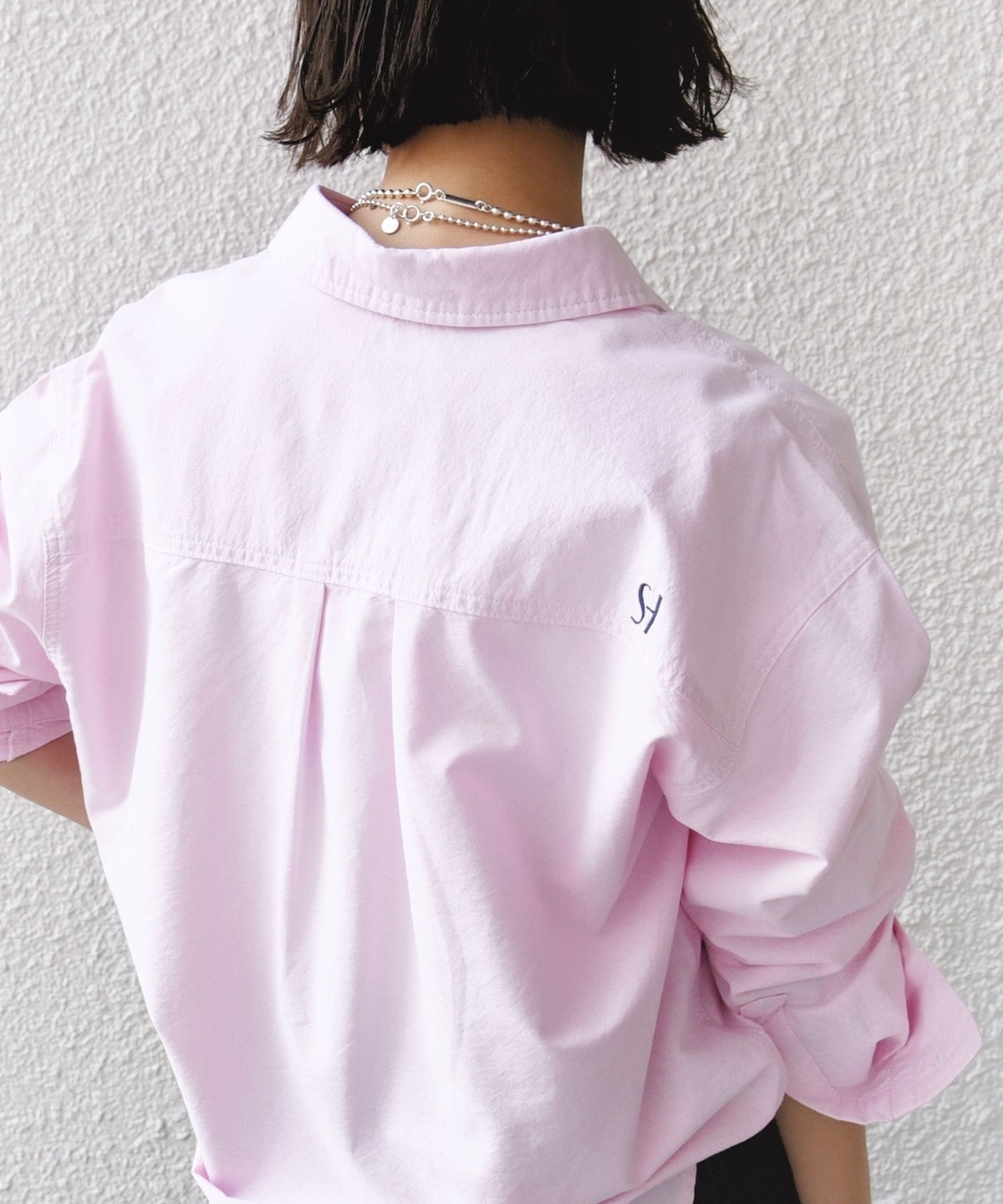 1. 〈洗濯機可能〉ワンポイント 刺繍 スキッパー シャツ ピンク