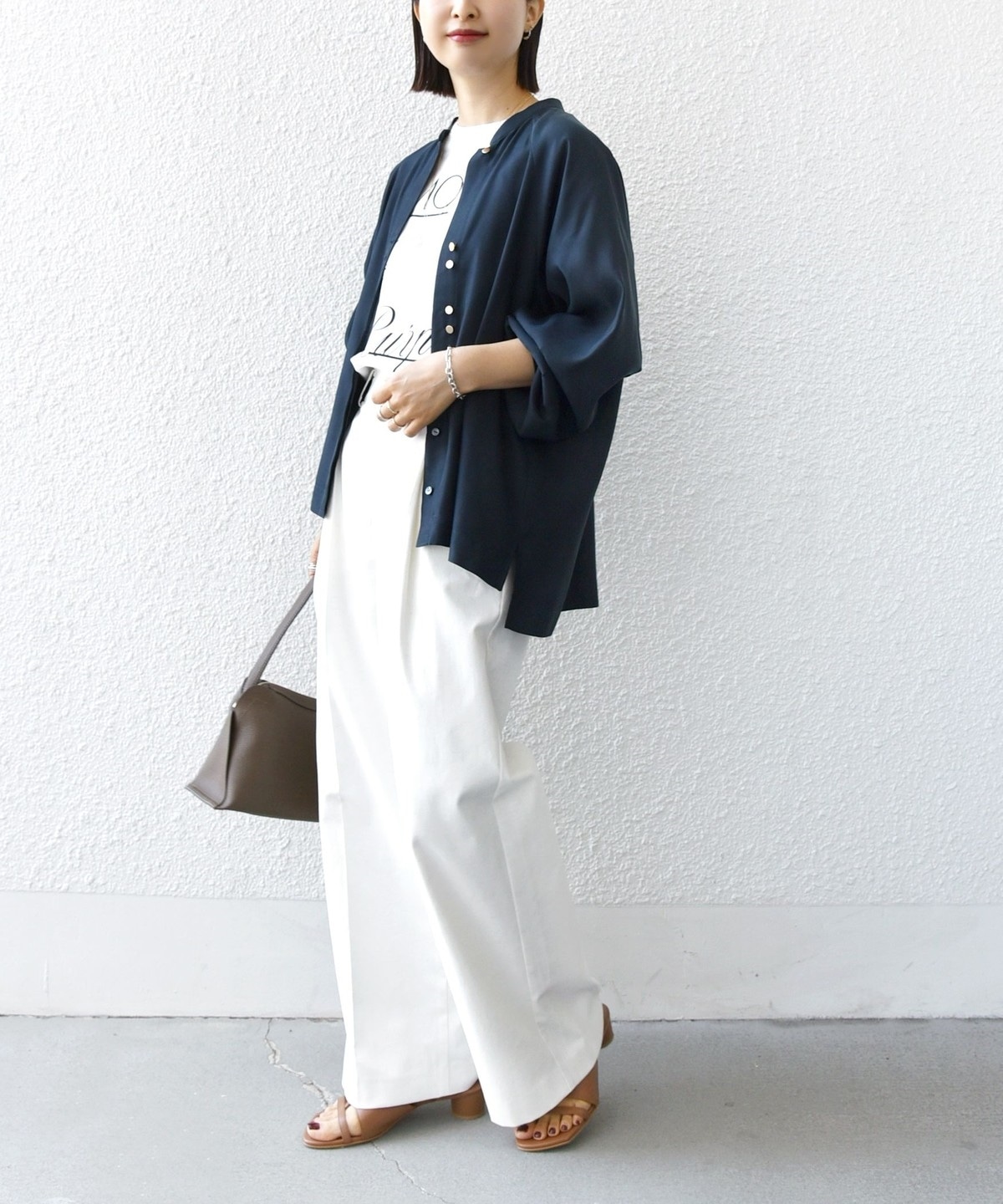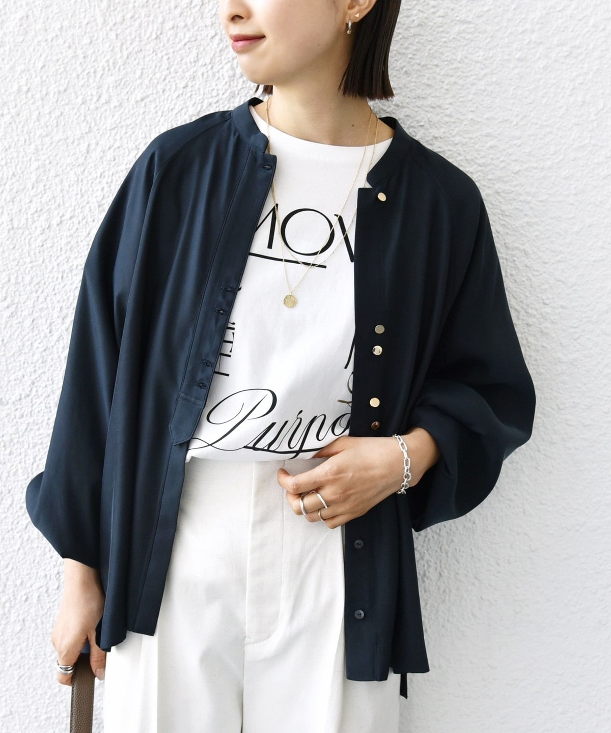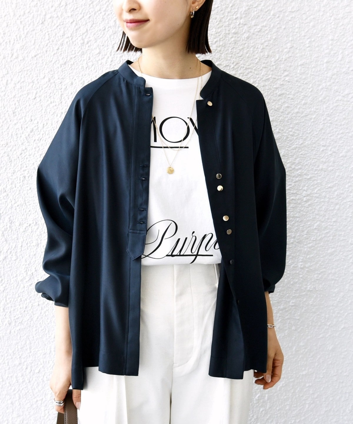 第2ボタンまで外していただくと、スキッパーブラウスとして着用でき、抜け感のある着こなしが叶います。