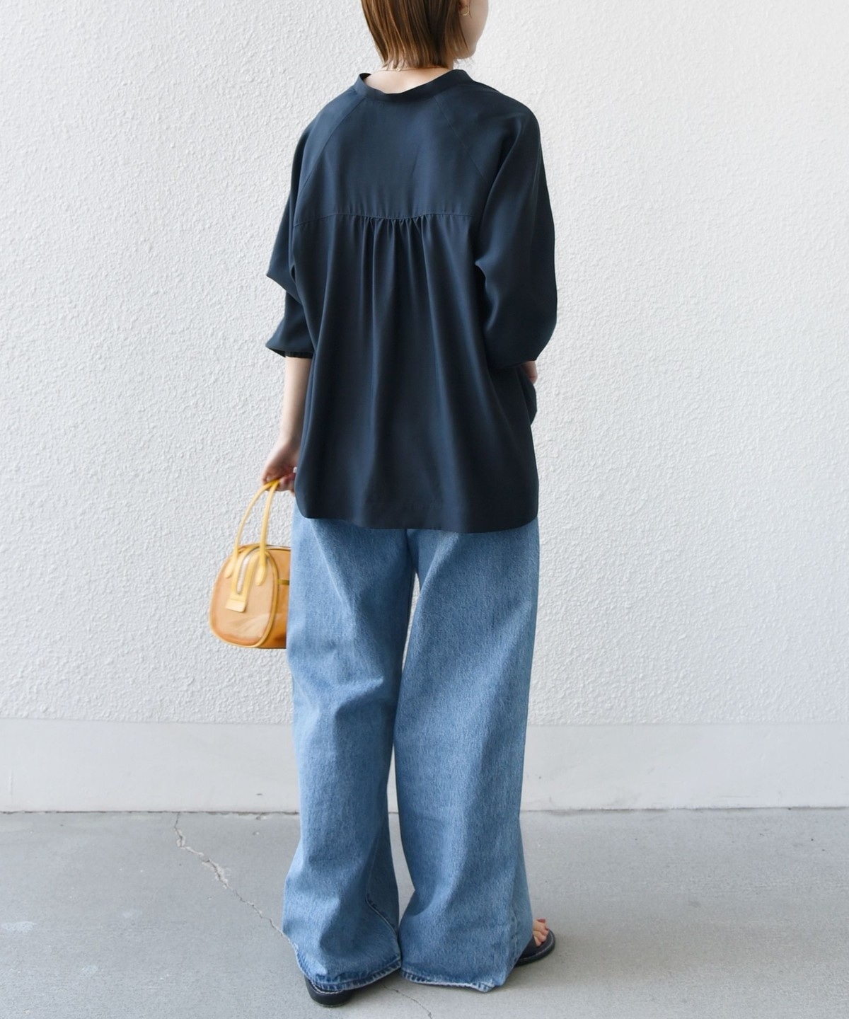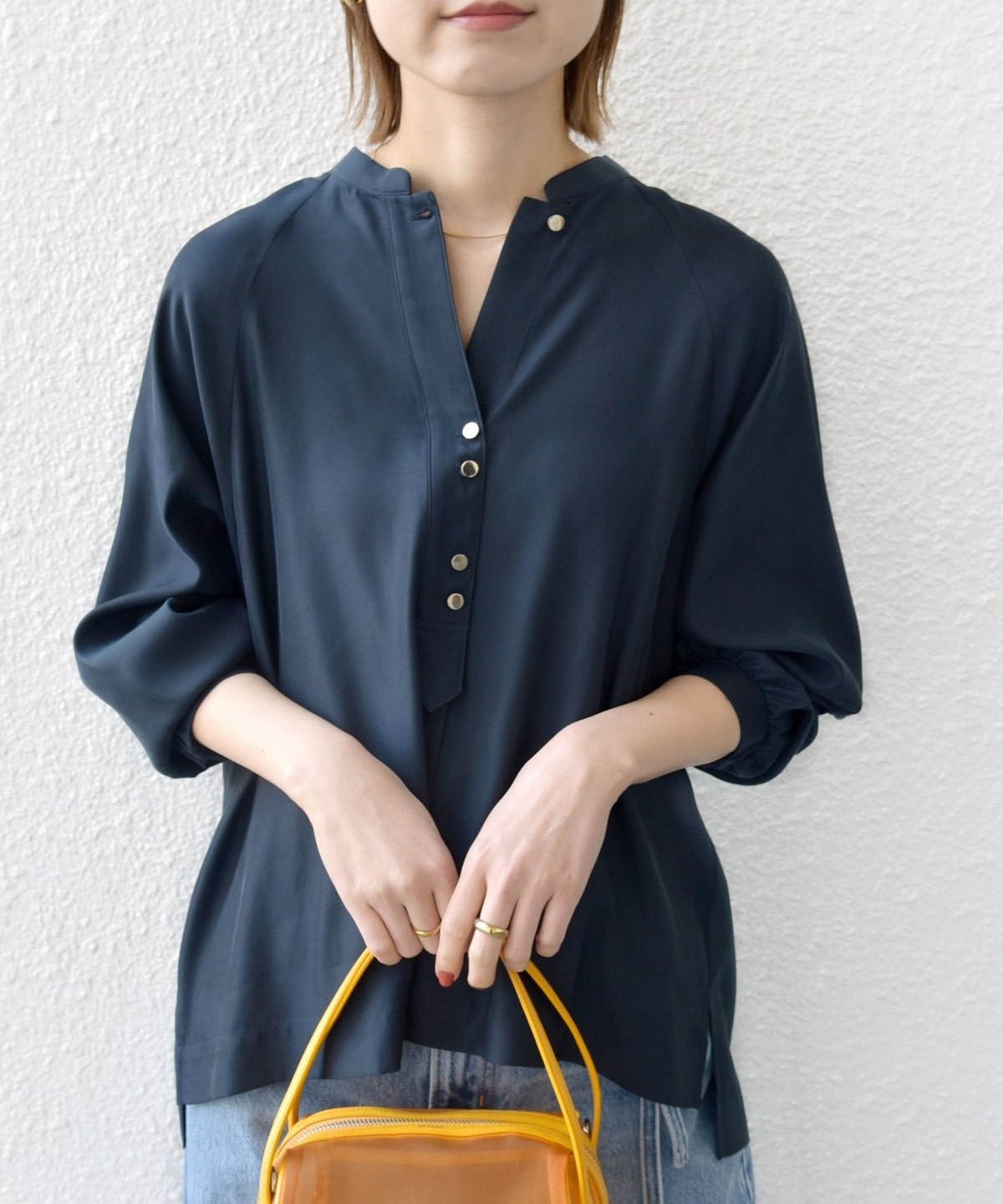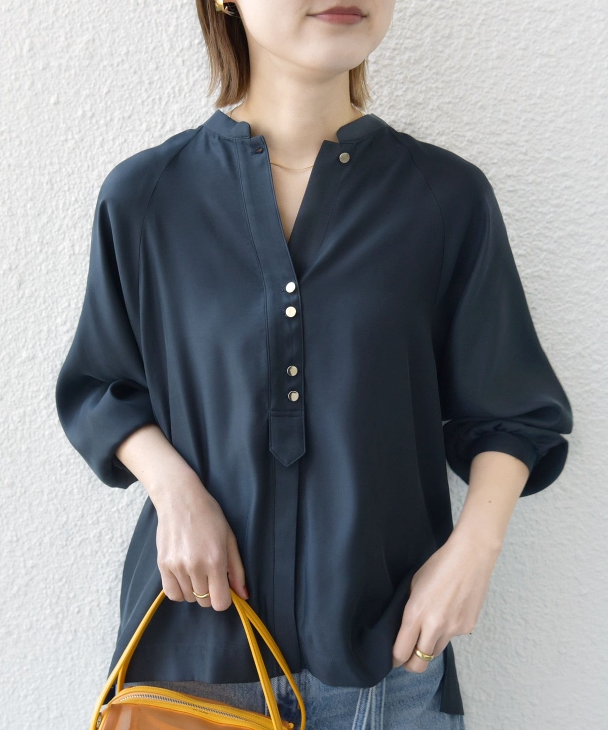 清涼感のあるキュプラ素材を使用したブラウスです。