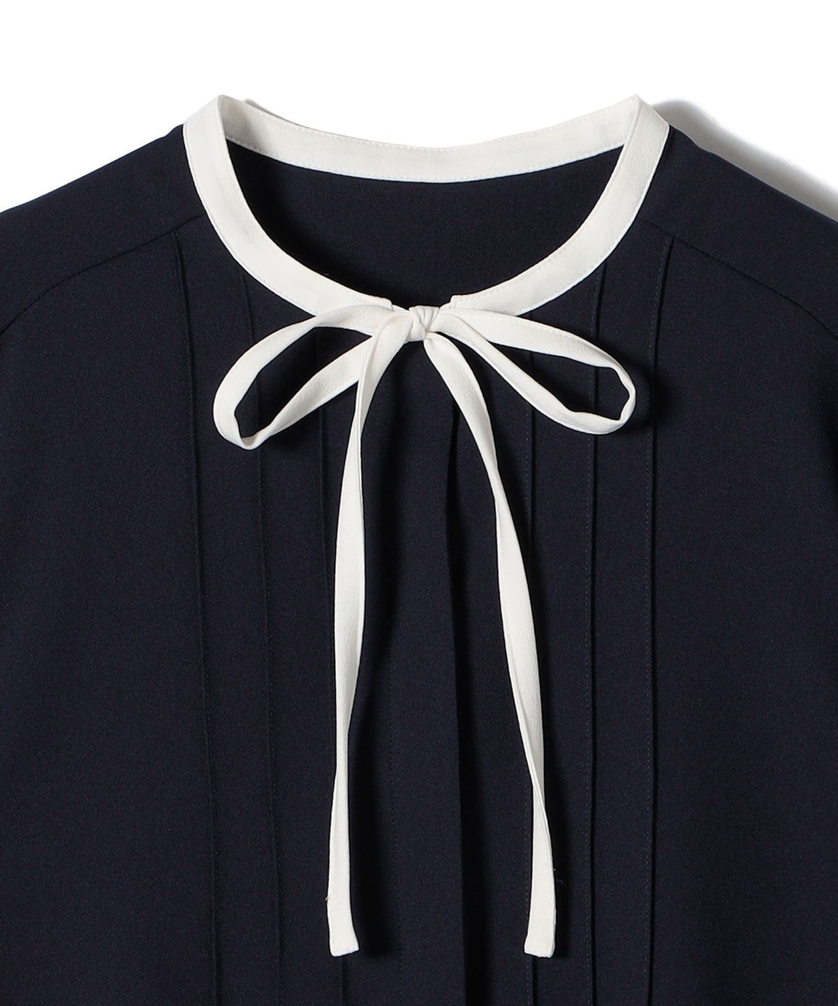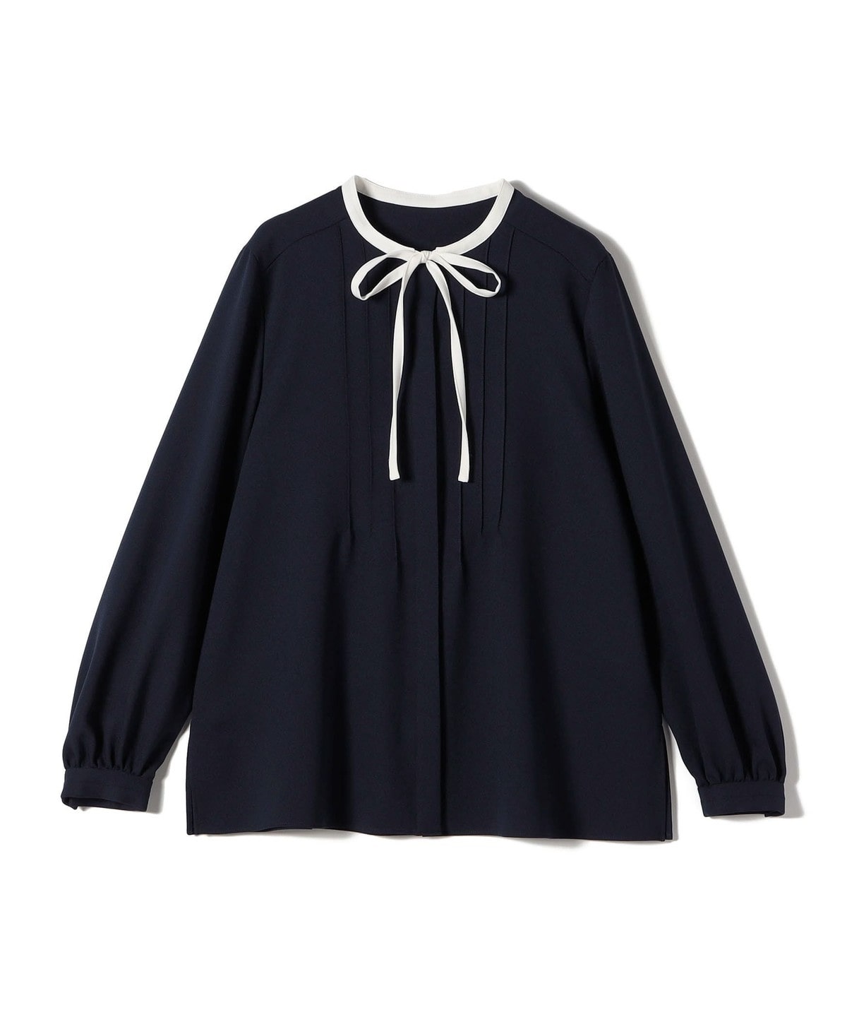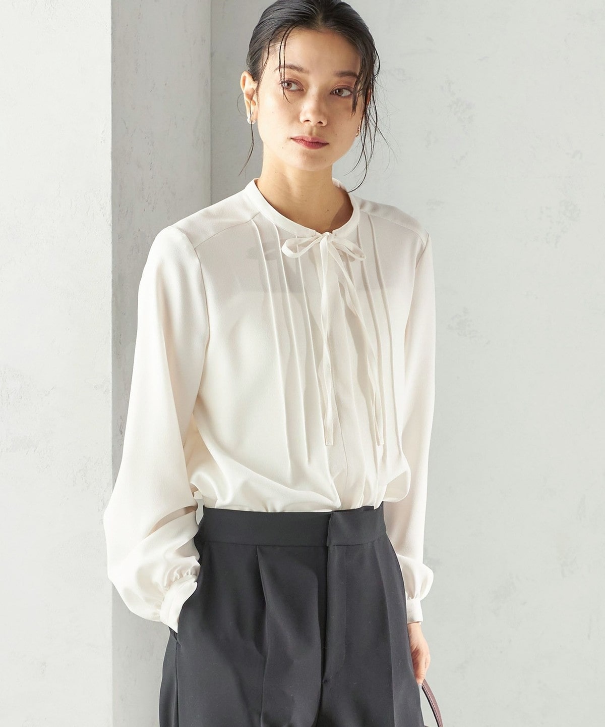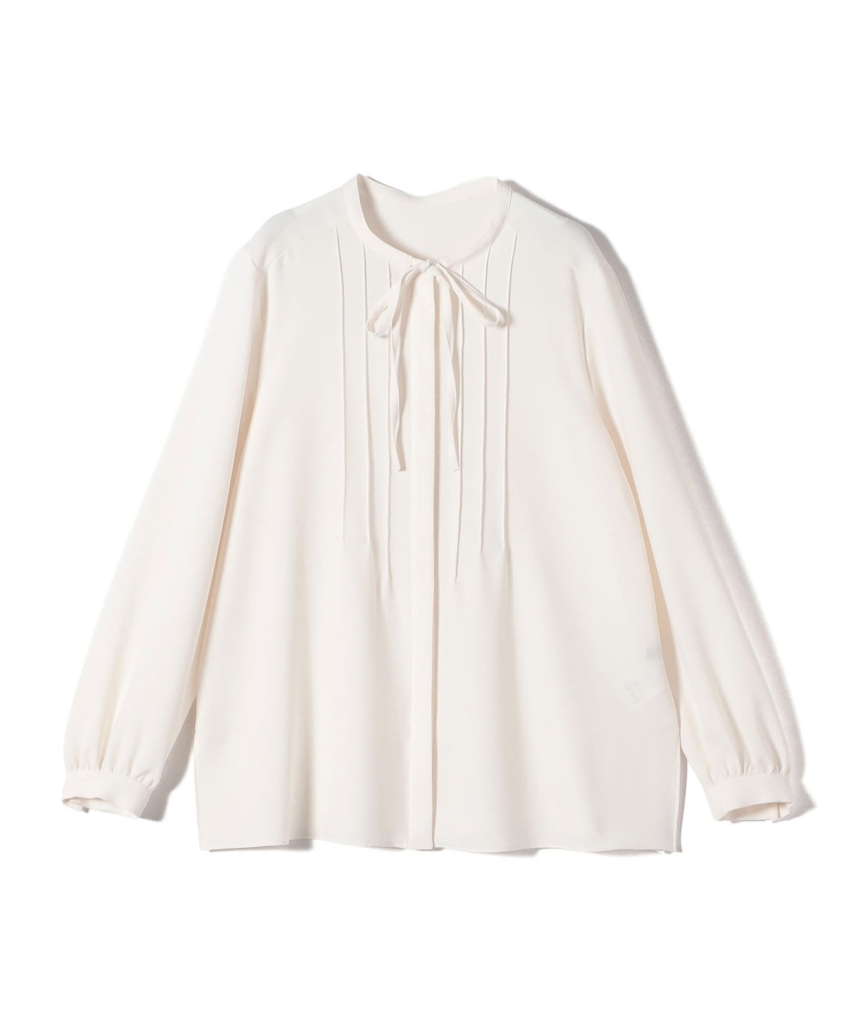 フロントに繊細なピンタックと細めのリボンタイをあしらったブラウスです。