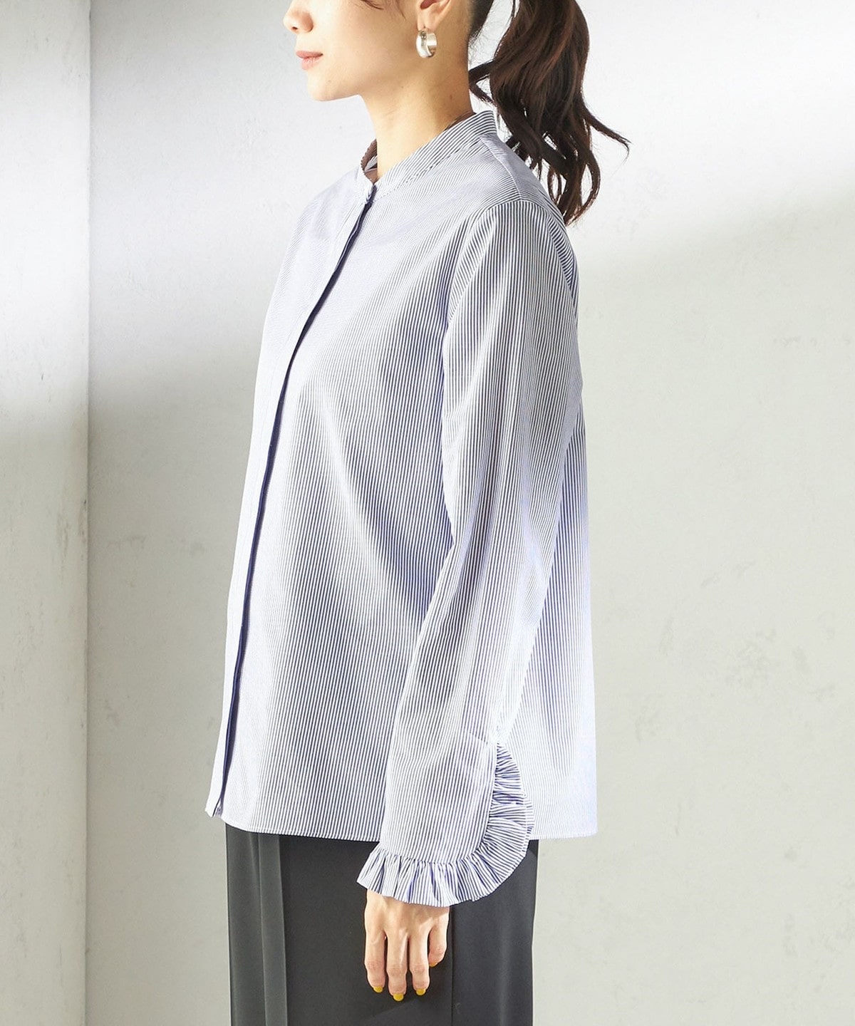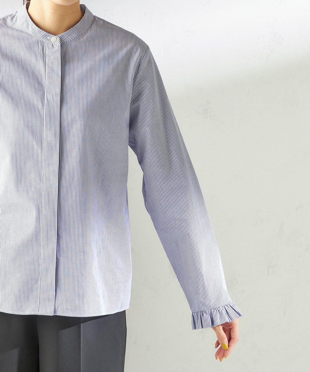 > >  > 《予約》〈洗濯機可能〉フリル カフス バンド カラー シャツ