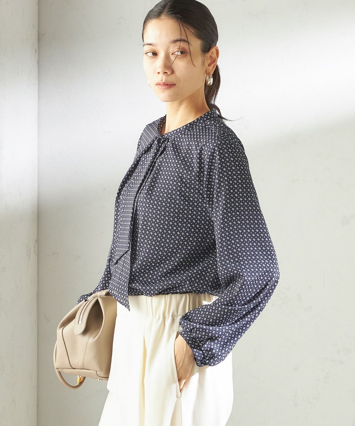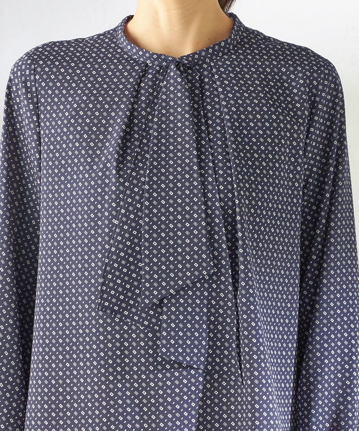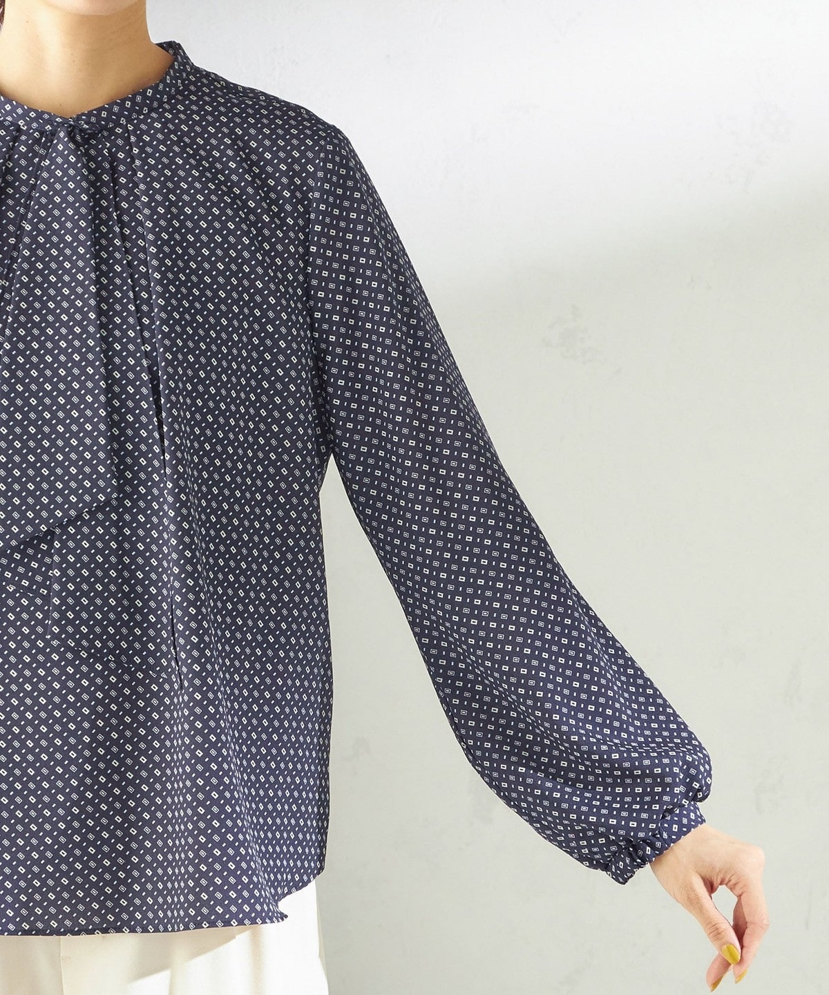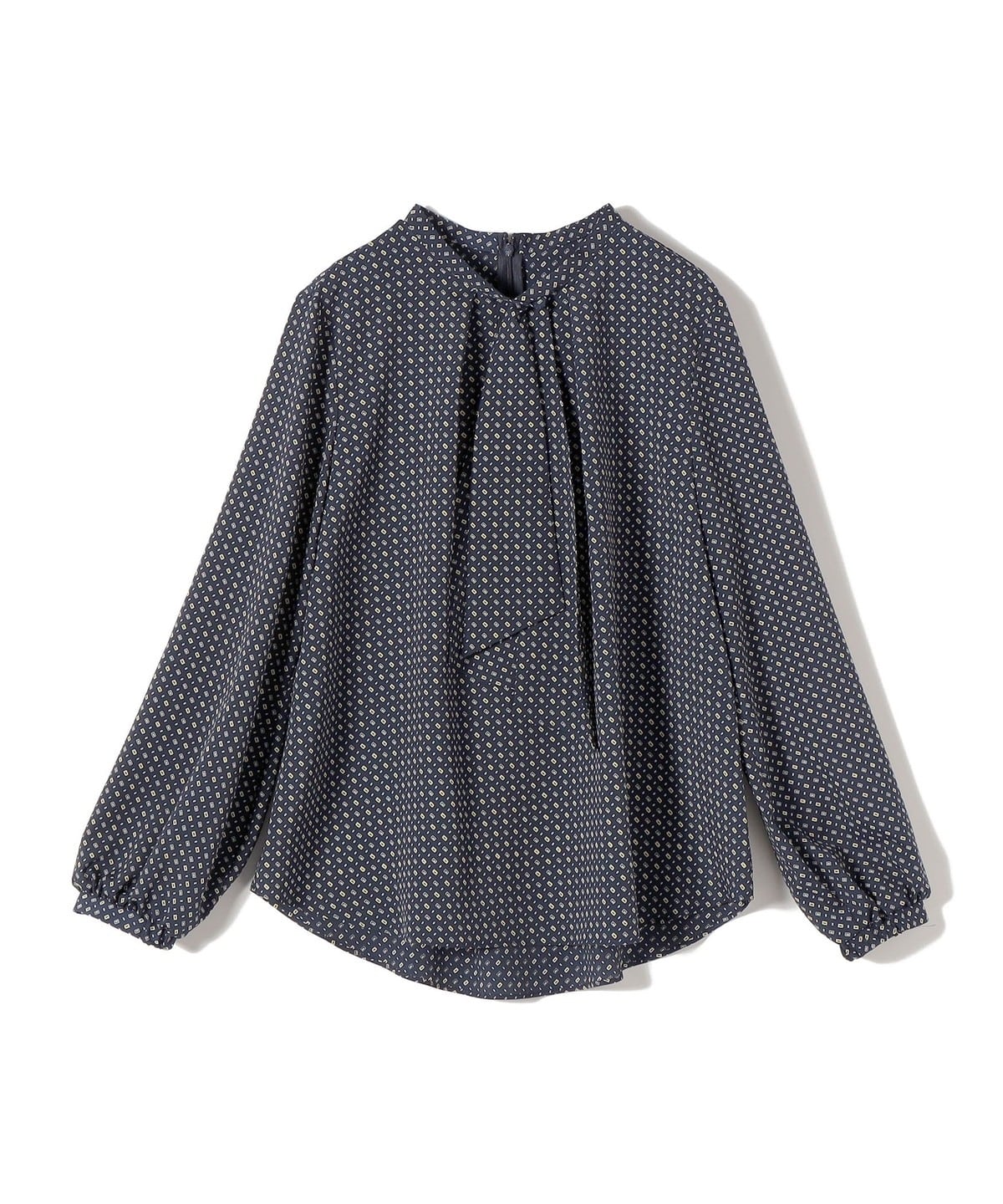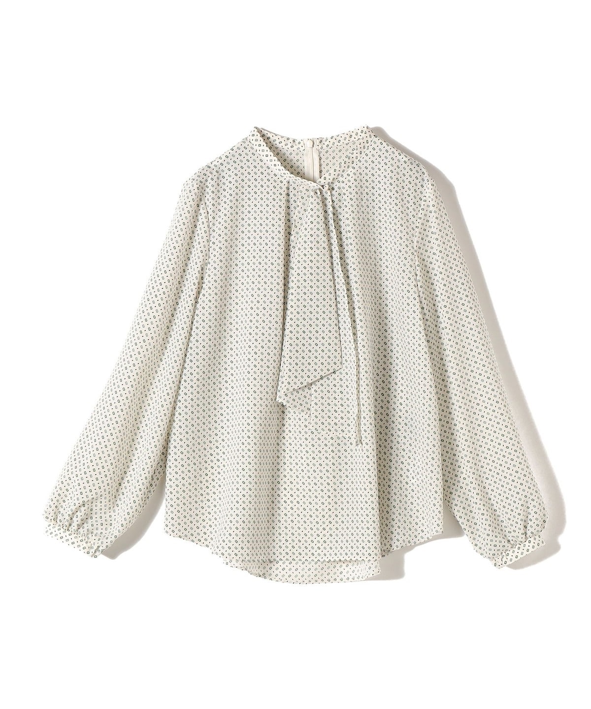 〈手洗い可能〉プリント タイ 長袖 ブラウス
