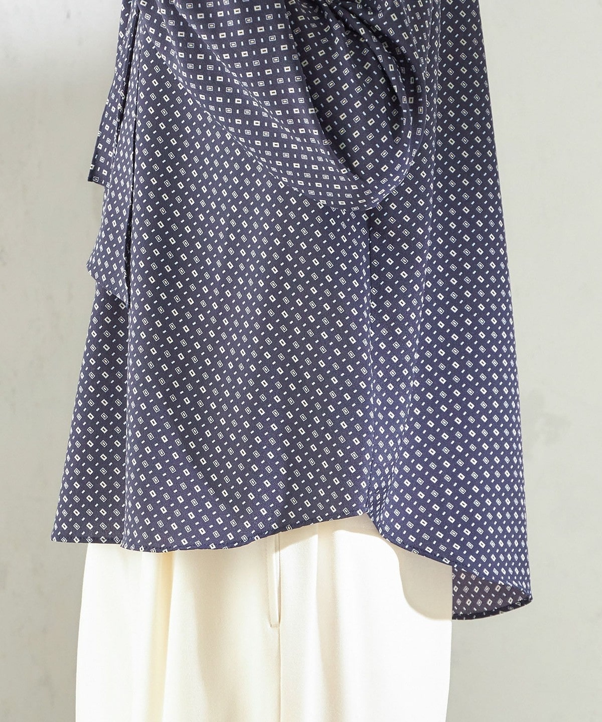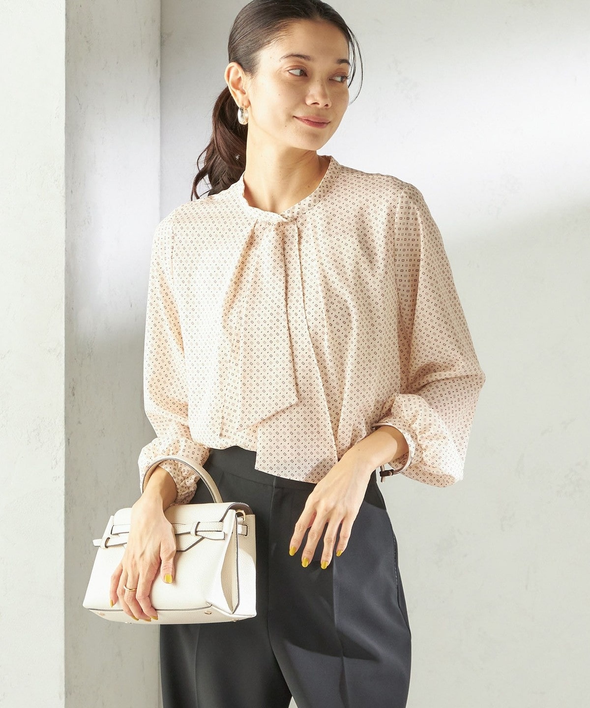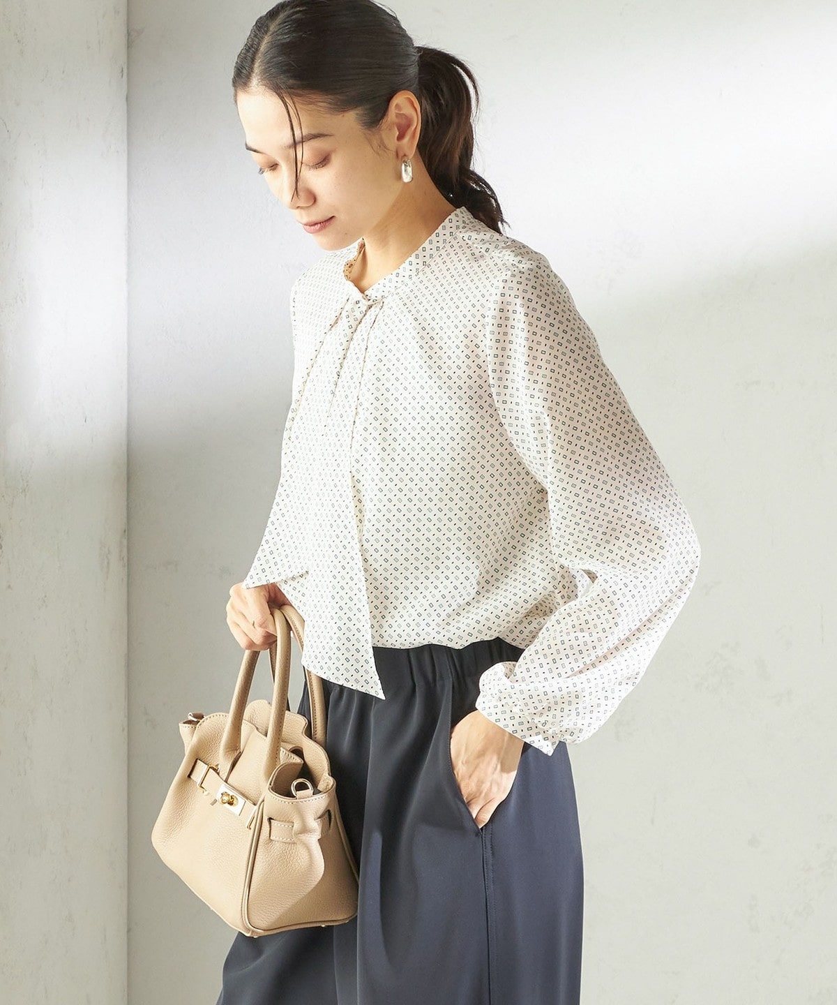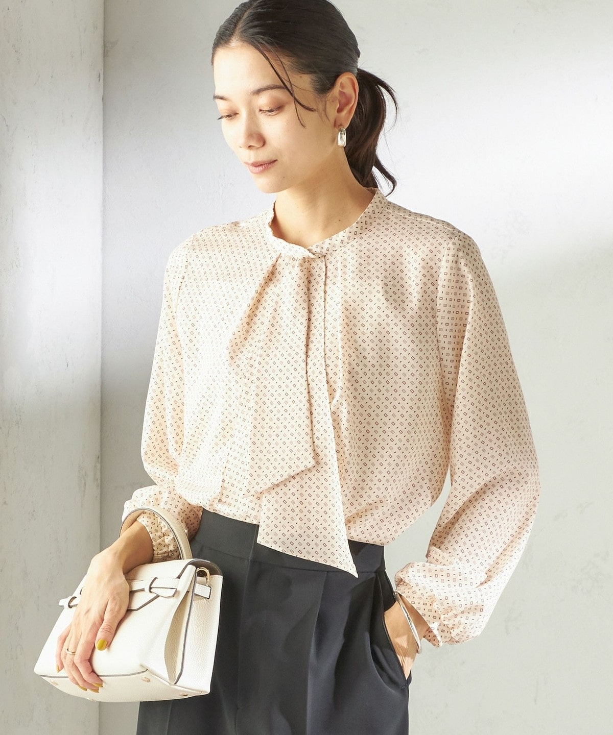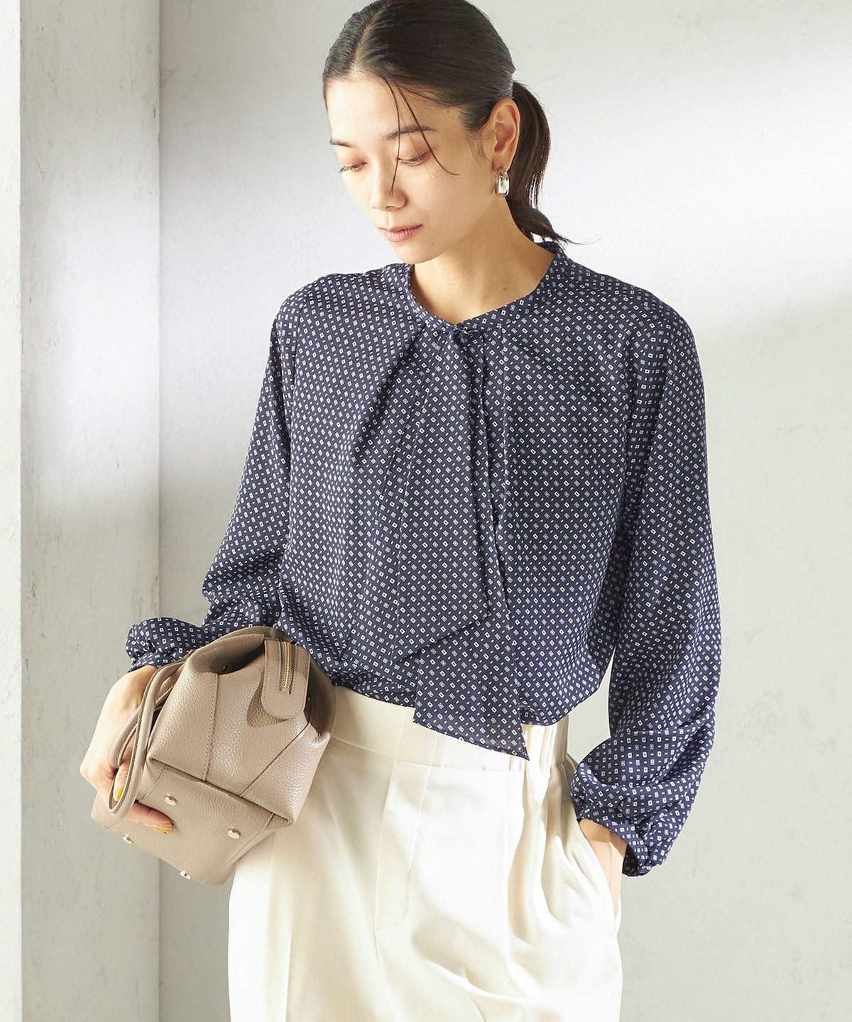 〈手洗い可能〉プリント タイ 長袖 ブラウス