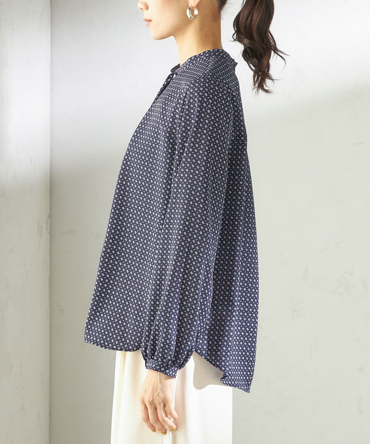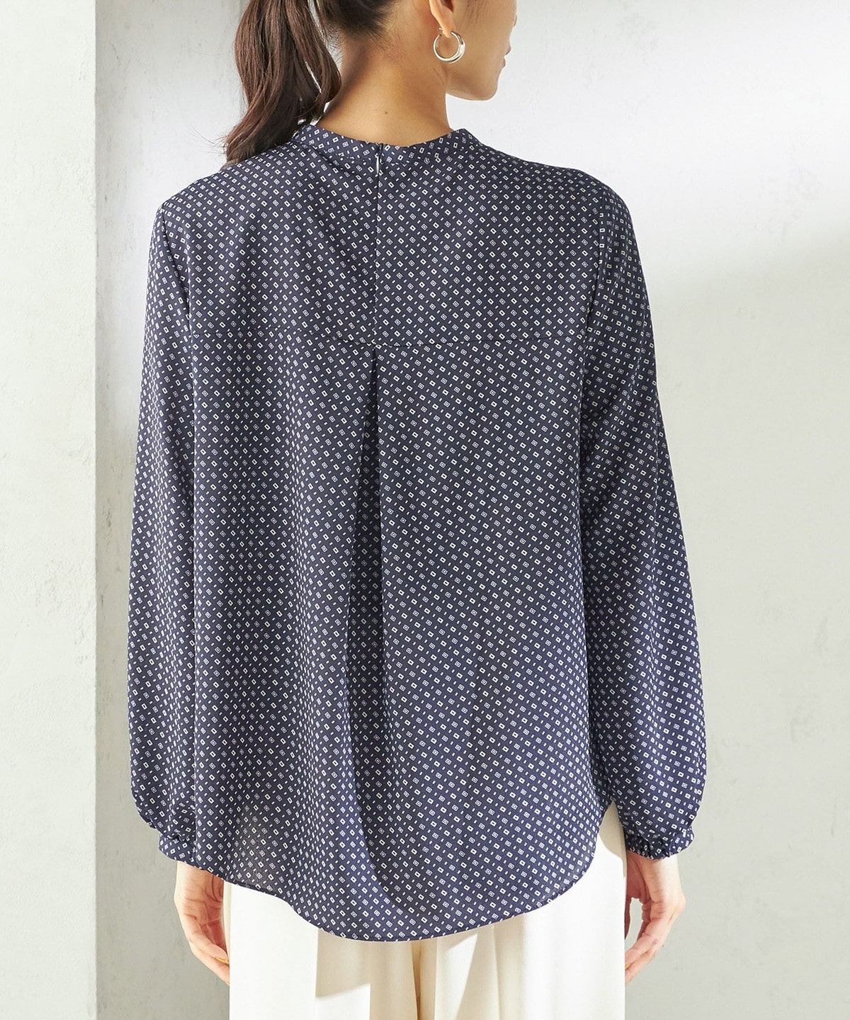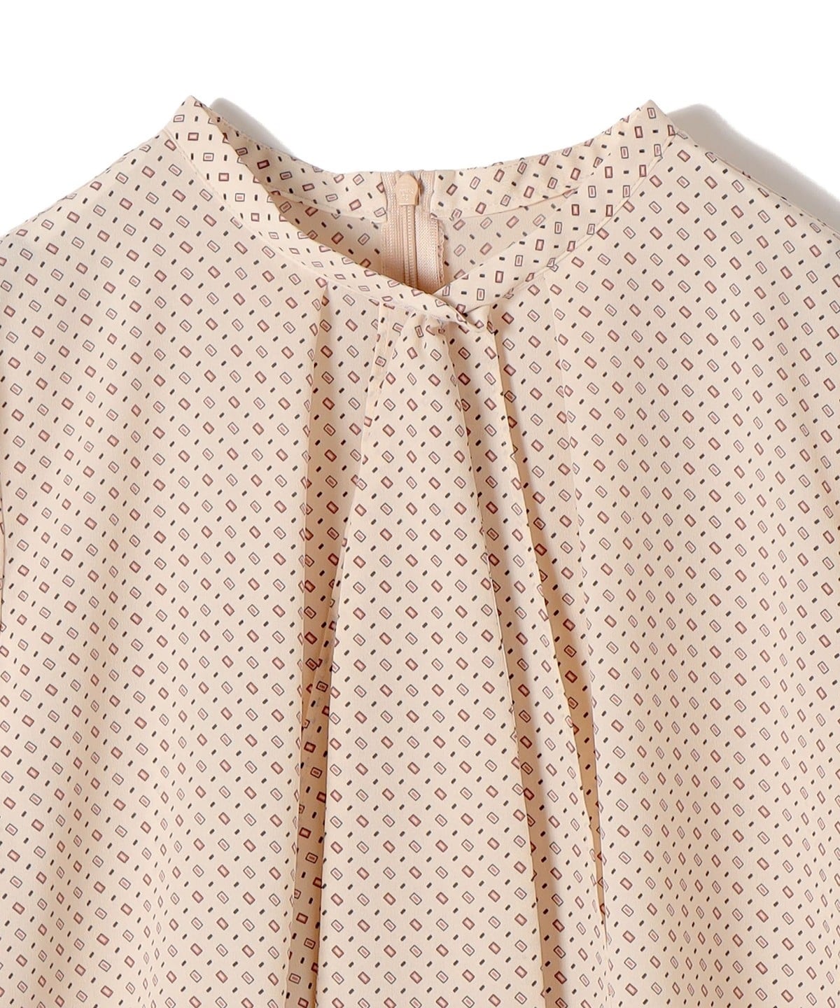 クラシカルで華やかさのある幾何柄プリントを使用したブラウス。