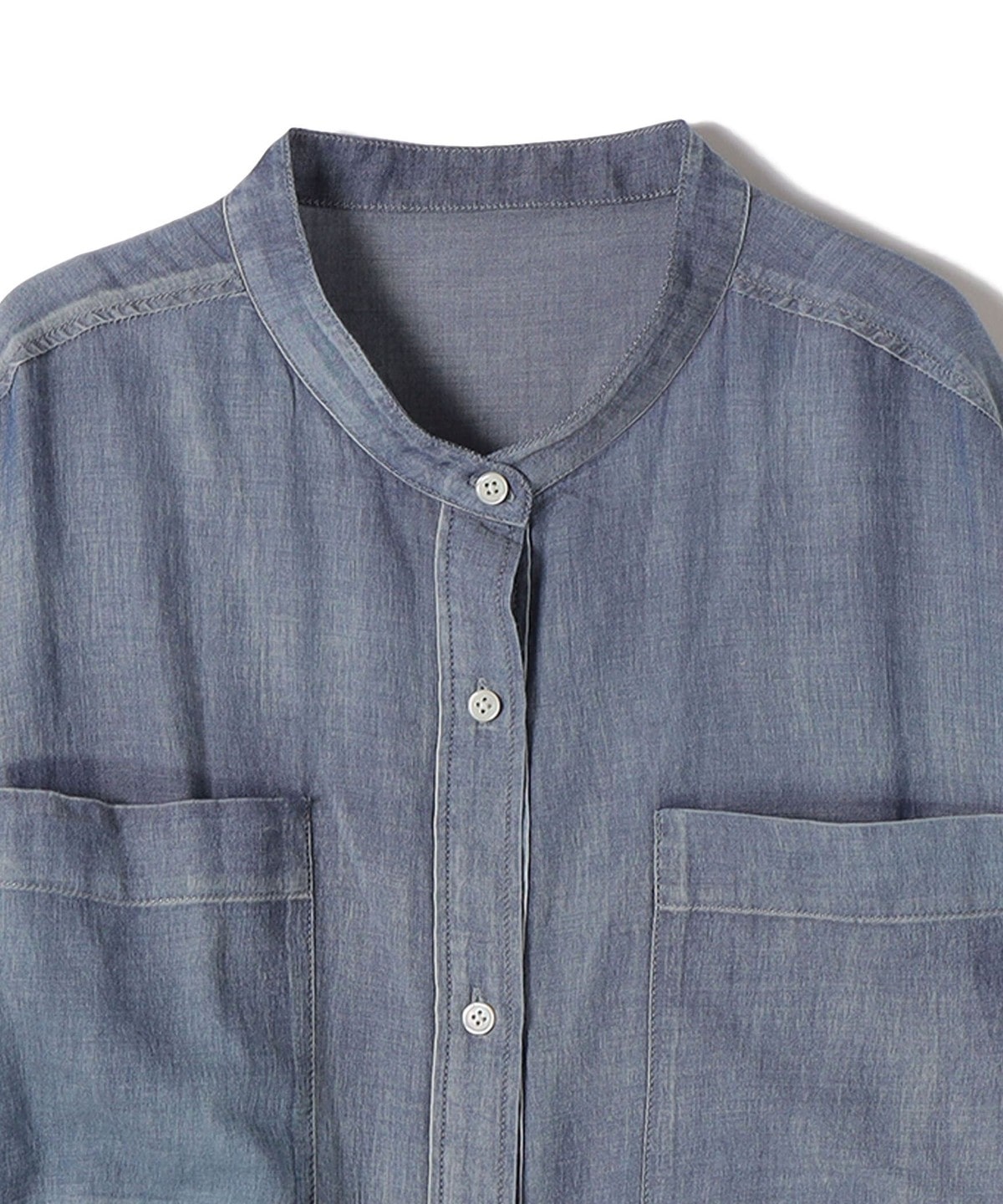 今季トレンドのシアーデニム素材で仕上げたバンドカラーシャツ。